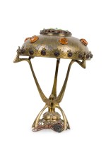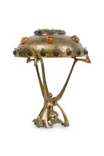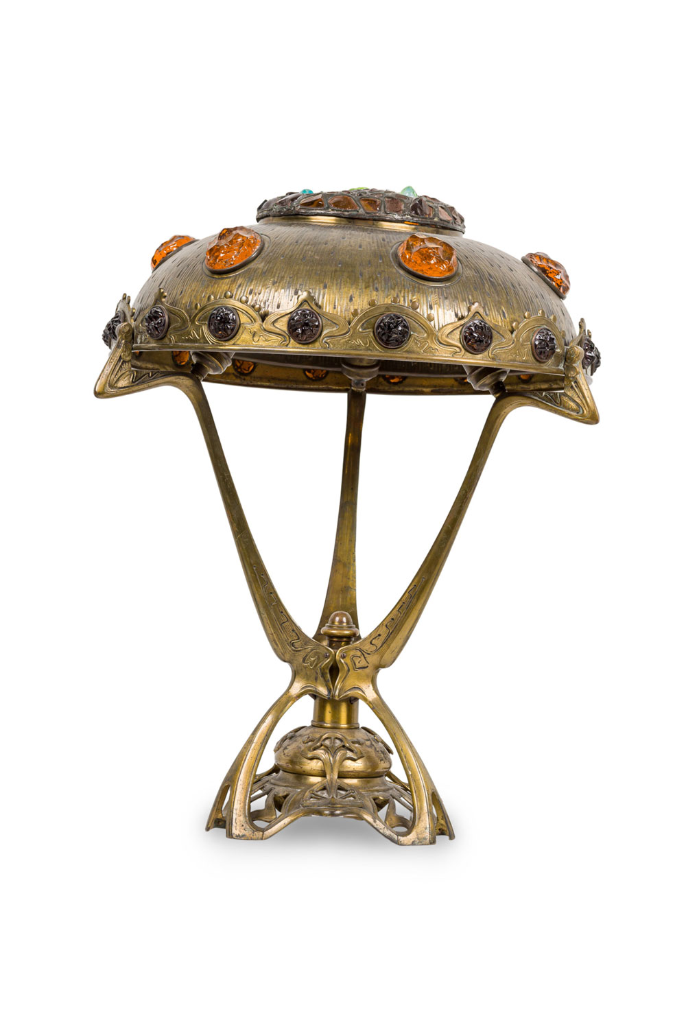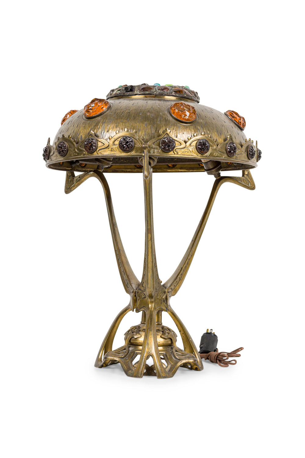 Art Nouveau Hungarian Jeweled Brass Table Lamp