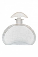 Style: Art Nouveau Materials & Techniques: Glass, embossed Category: Bedroom, Accessories/Décor/Bric-a-Brac Condition: Missing the stopper.