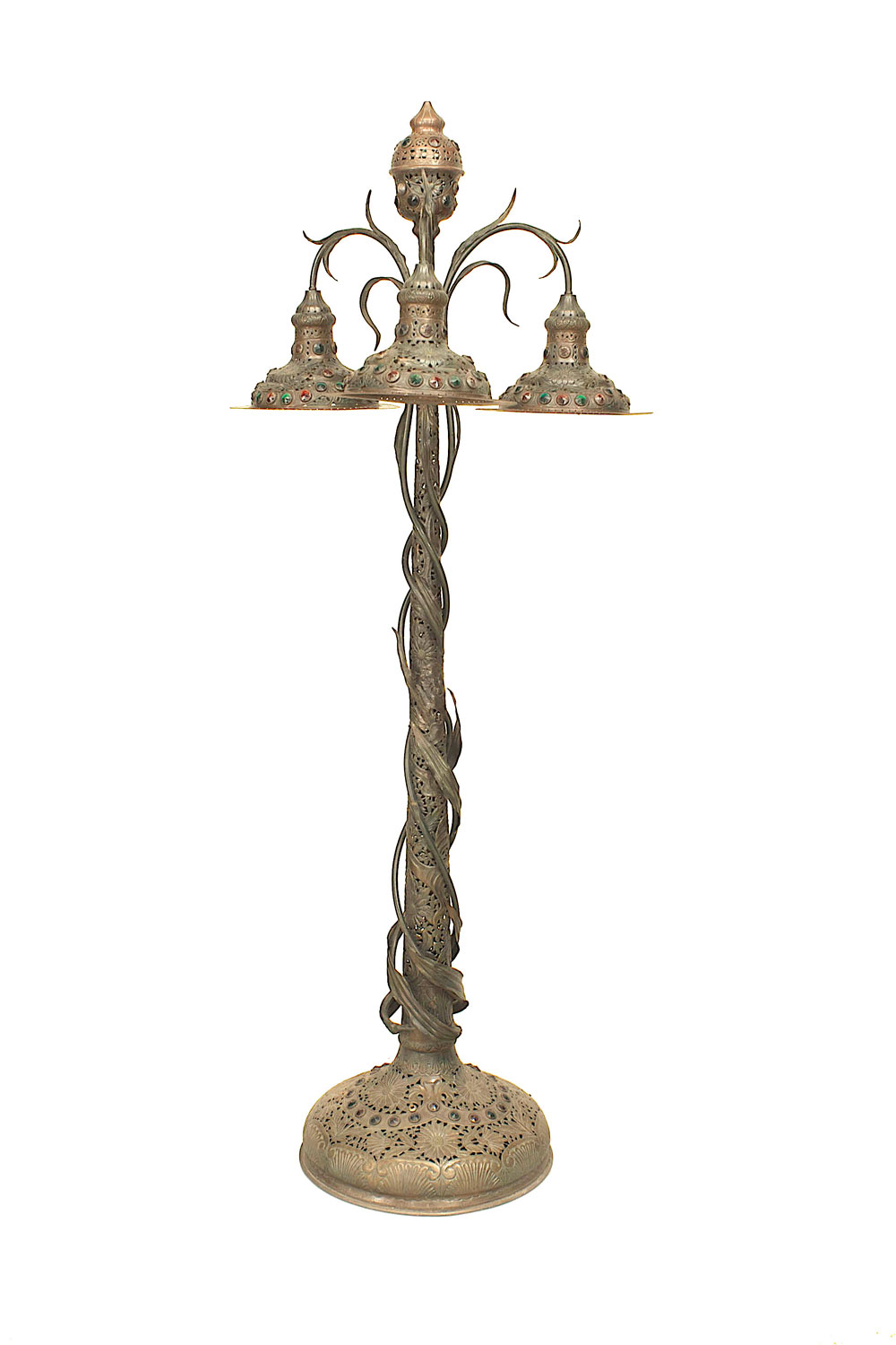 Art Nouveau Patinated Metal Jeweled Floor Lamp
