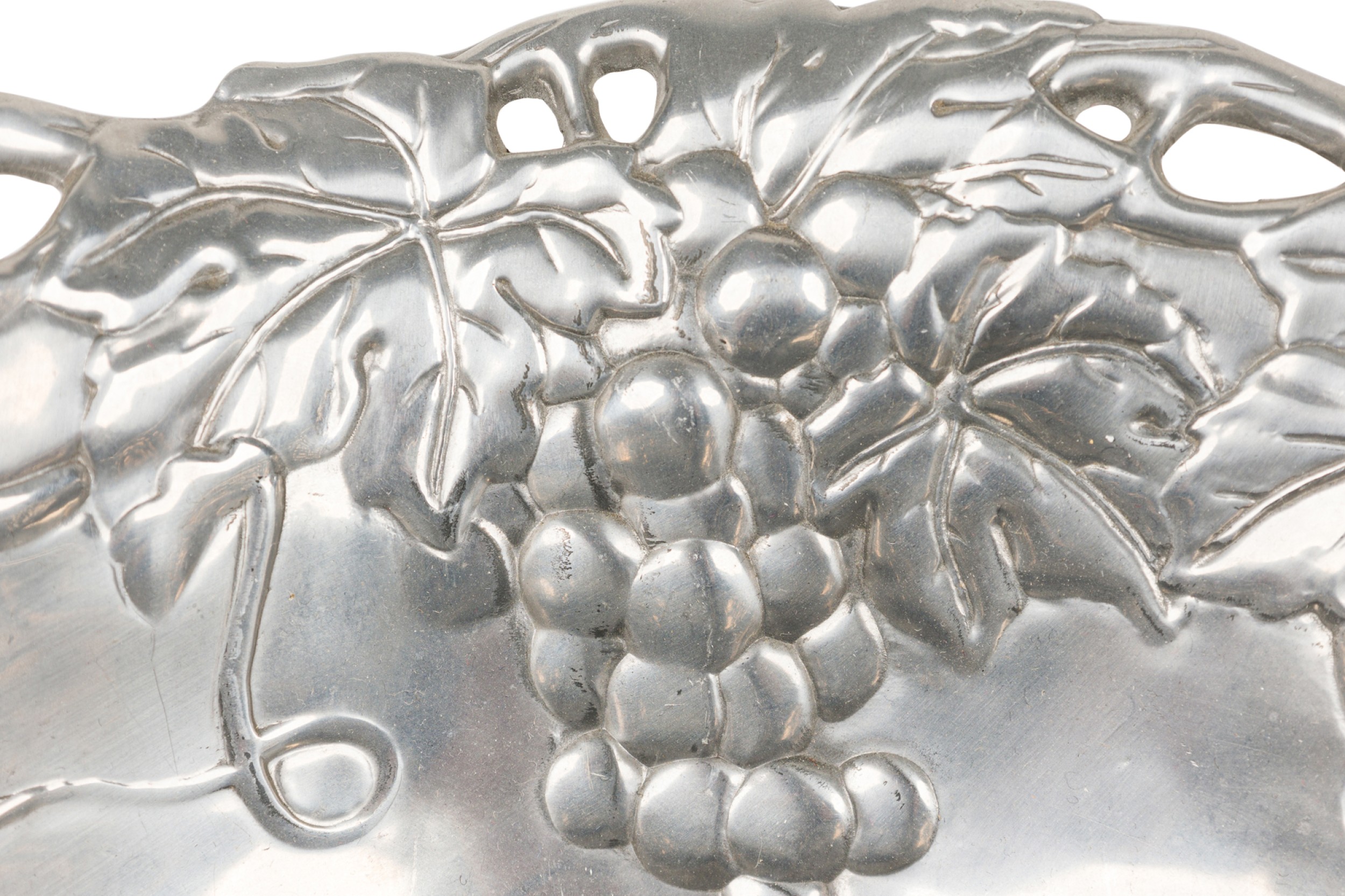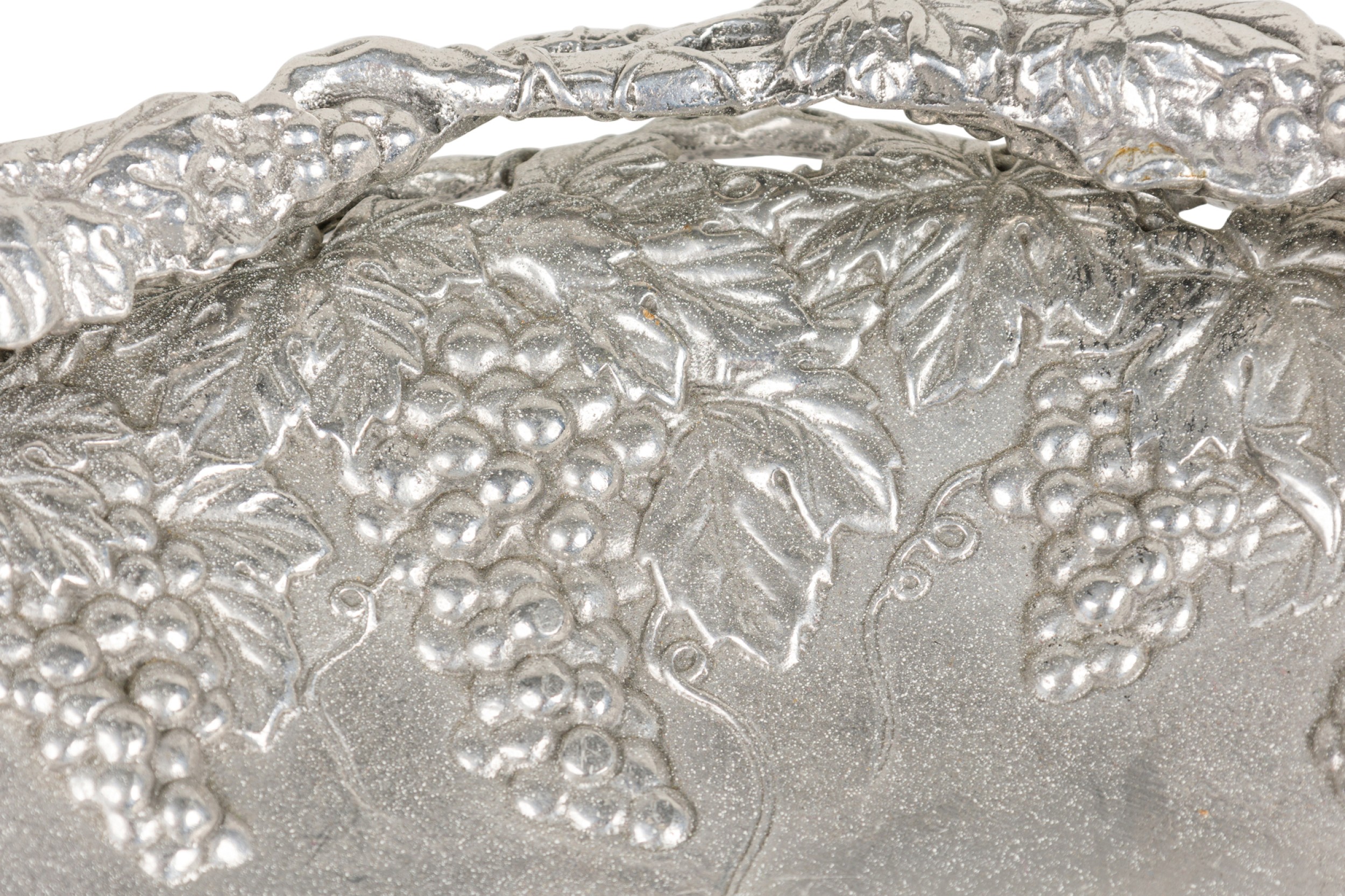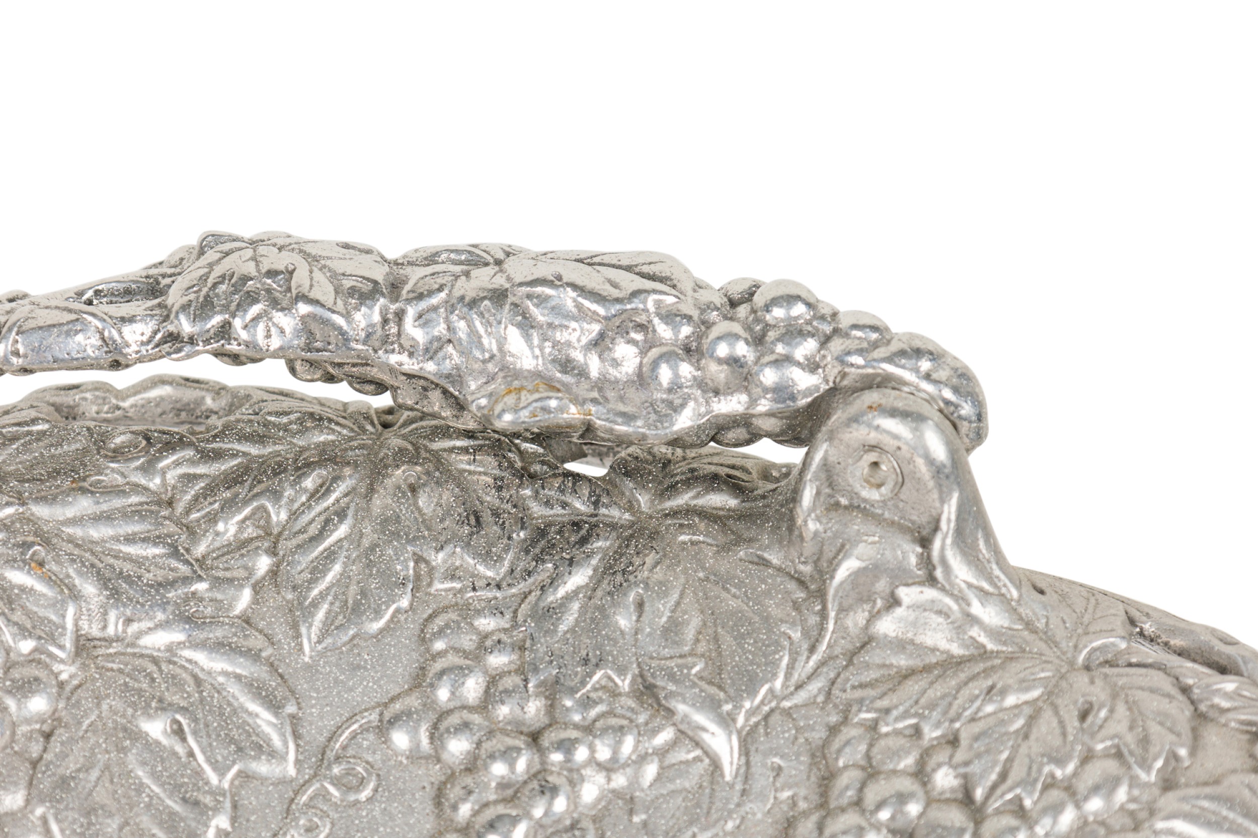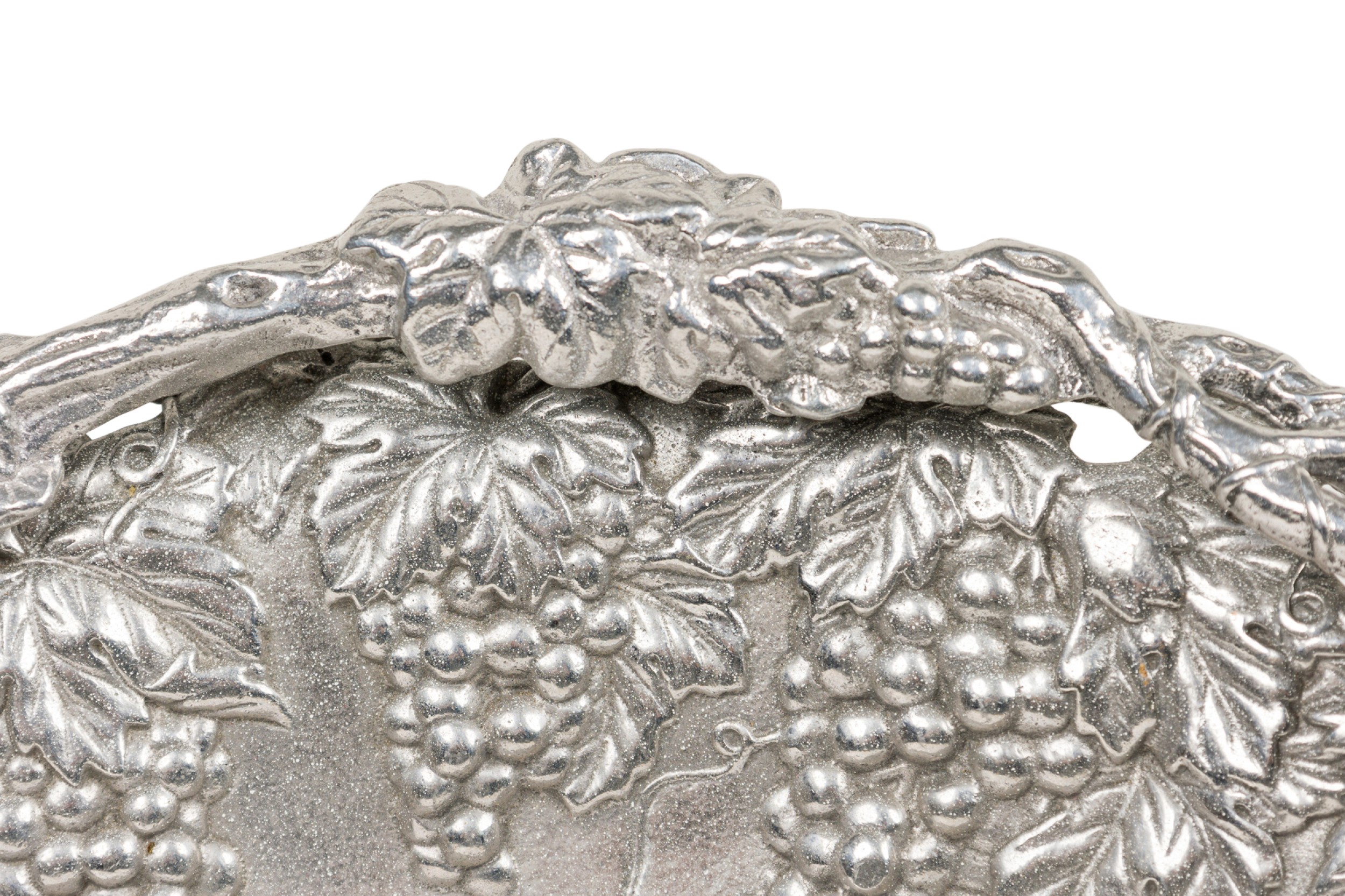 2-Piece Vintage American Victorian style aluminum bowl / compote and pedestal bases cake stand set featuring a grape and vine design all around the rim of each with the cake stand base having a handle (ARTHUR COURT)