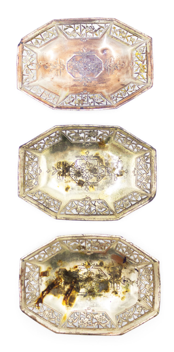 3 English Arts and Crafts style silver 8 sided ashtrays with floral filigree edge (PRICED EACH).