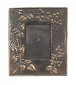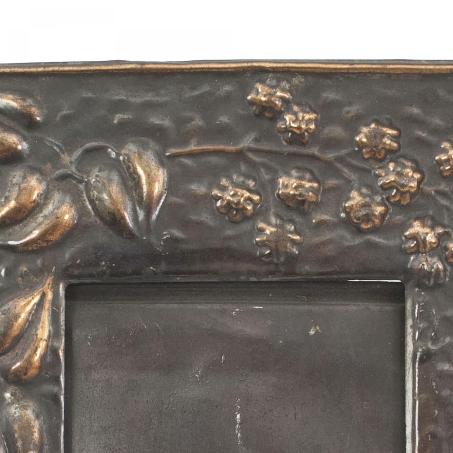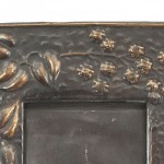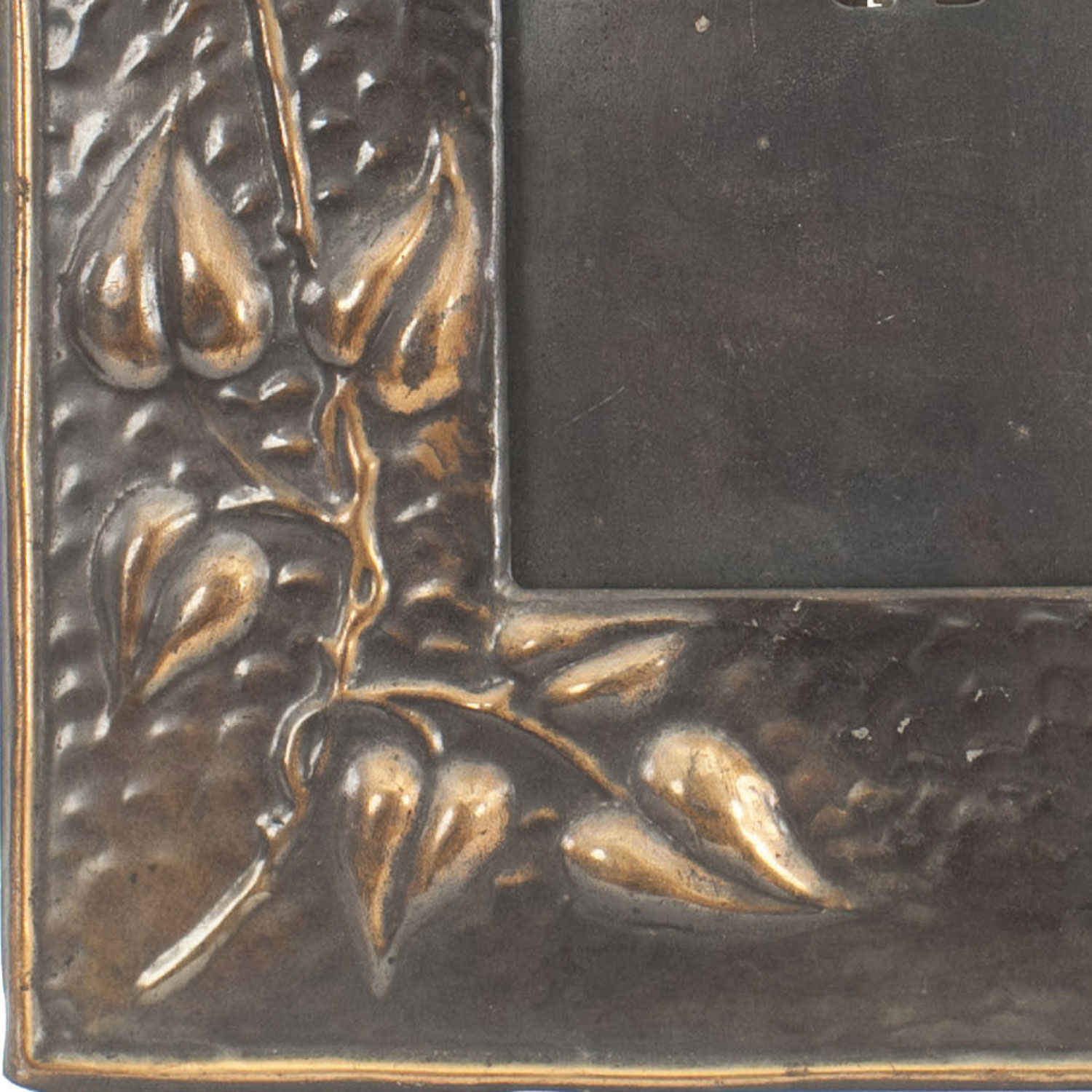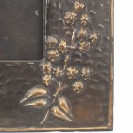 Arts & Crafts hammered metal rectangular easel picture frame with a floral design in gold and brown