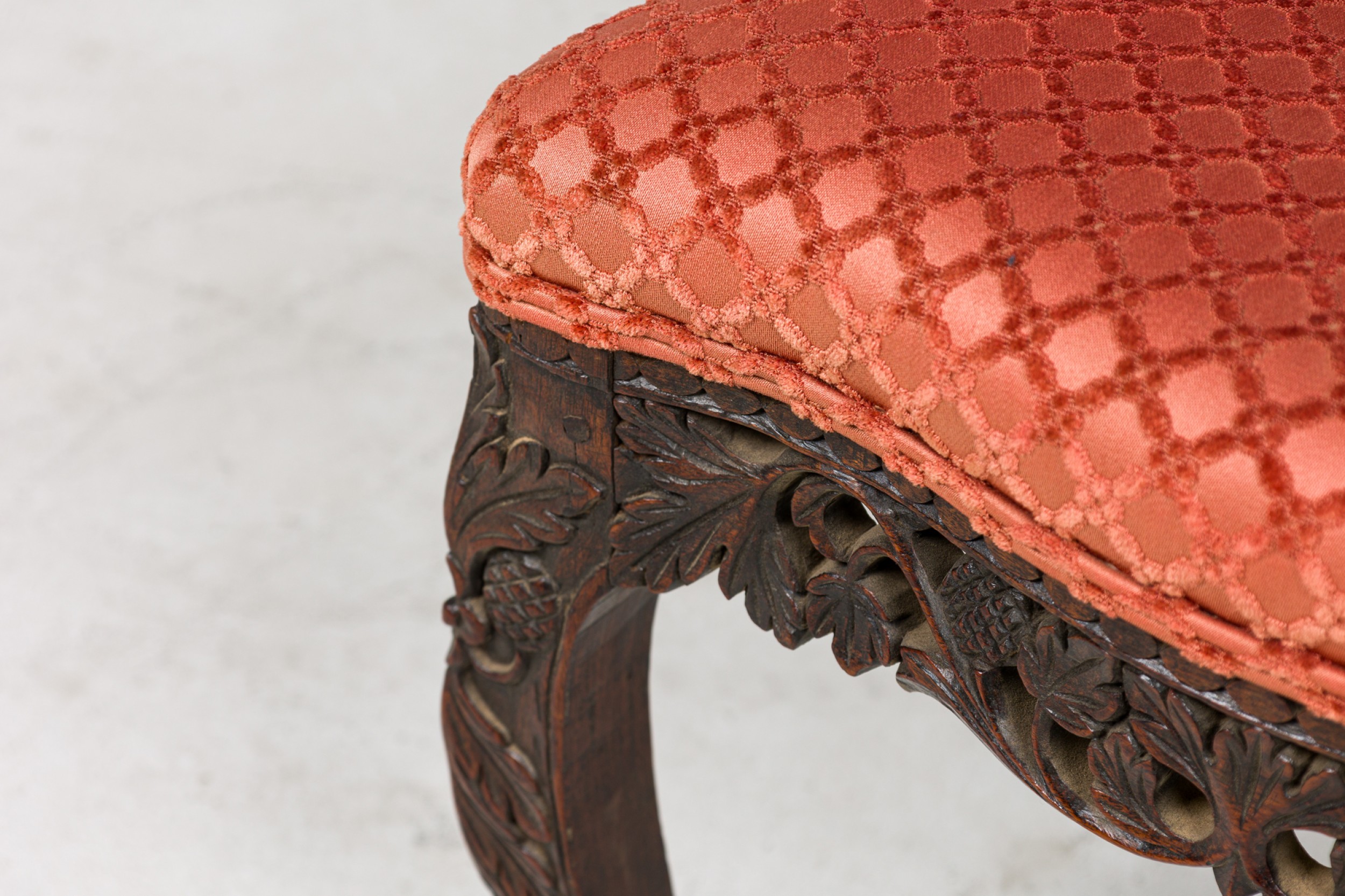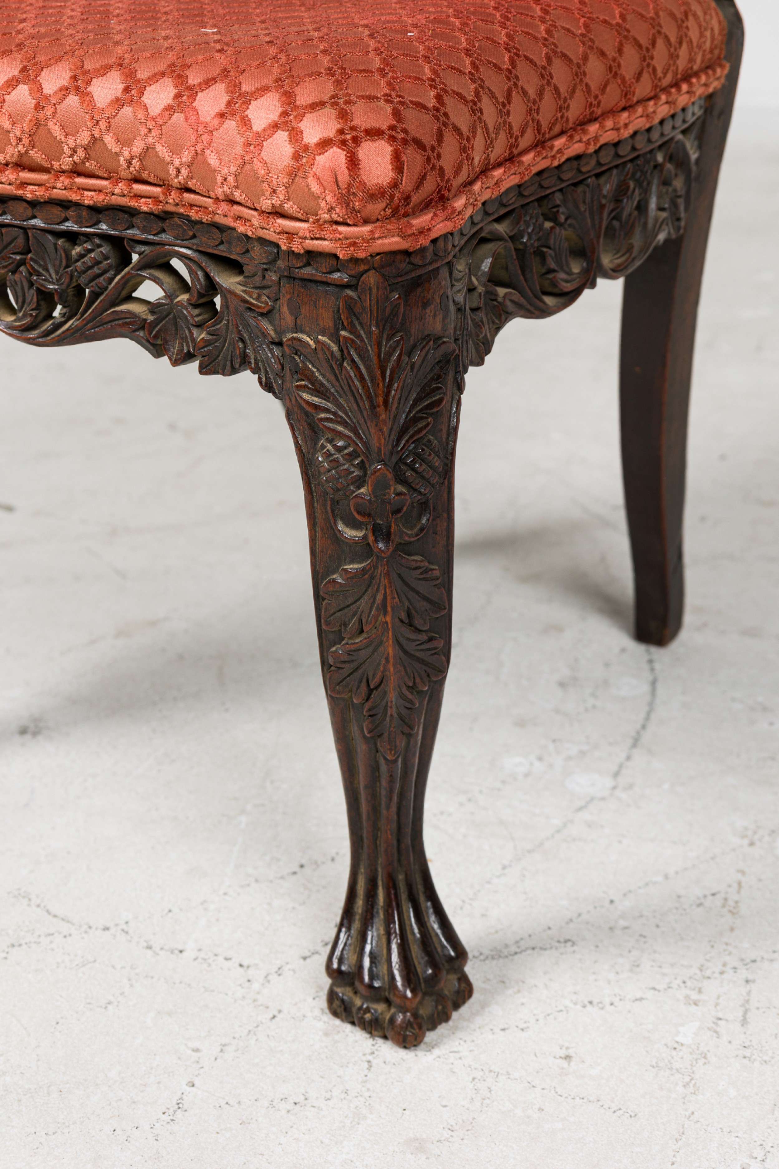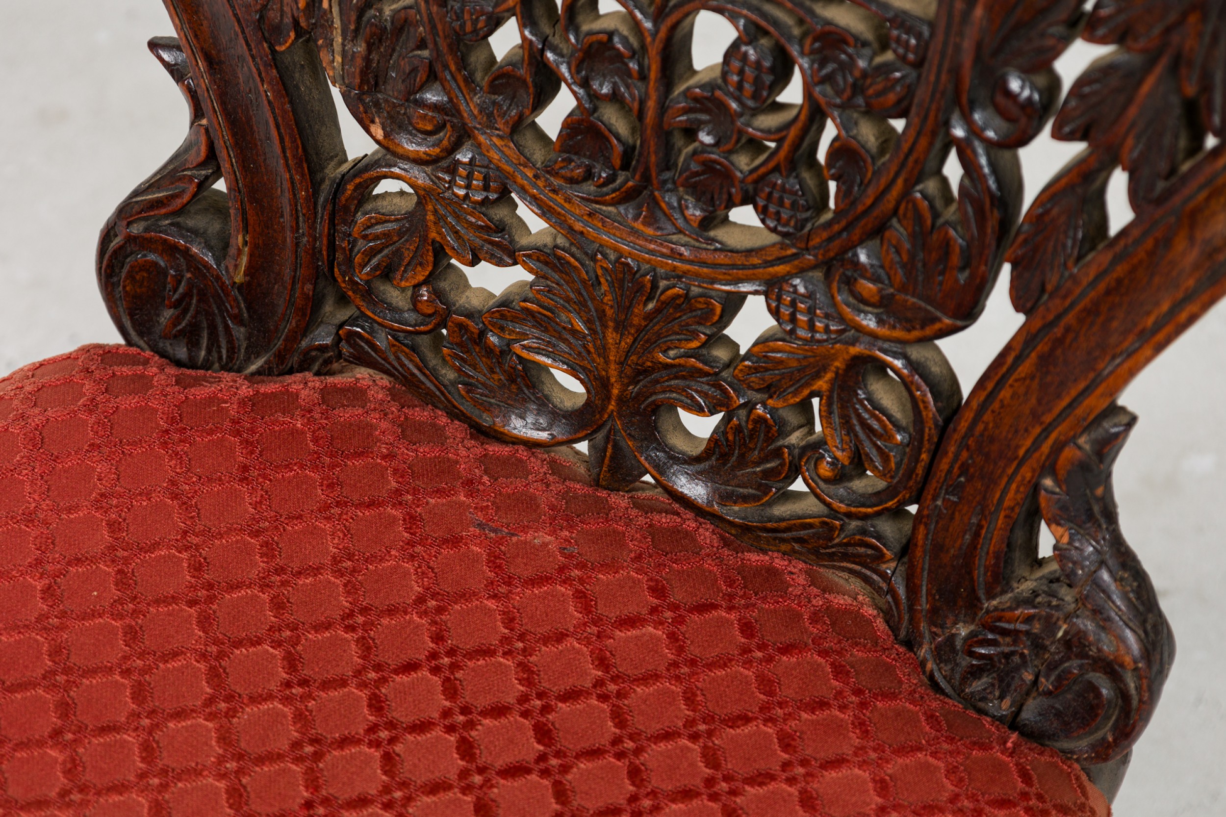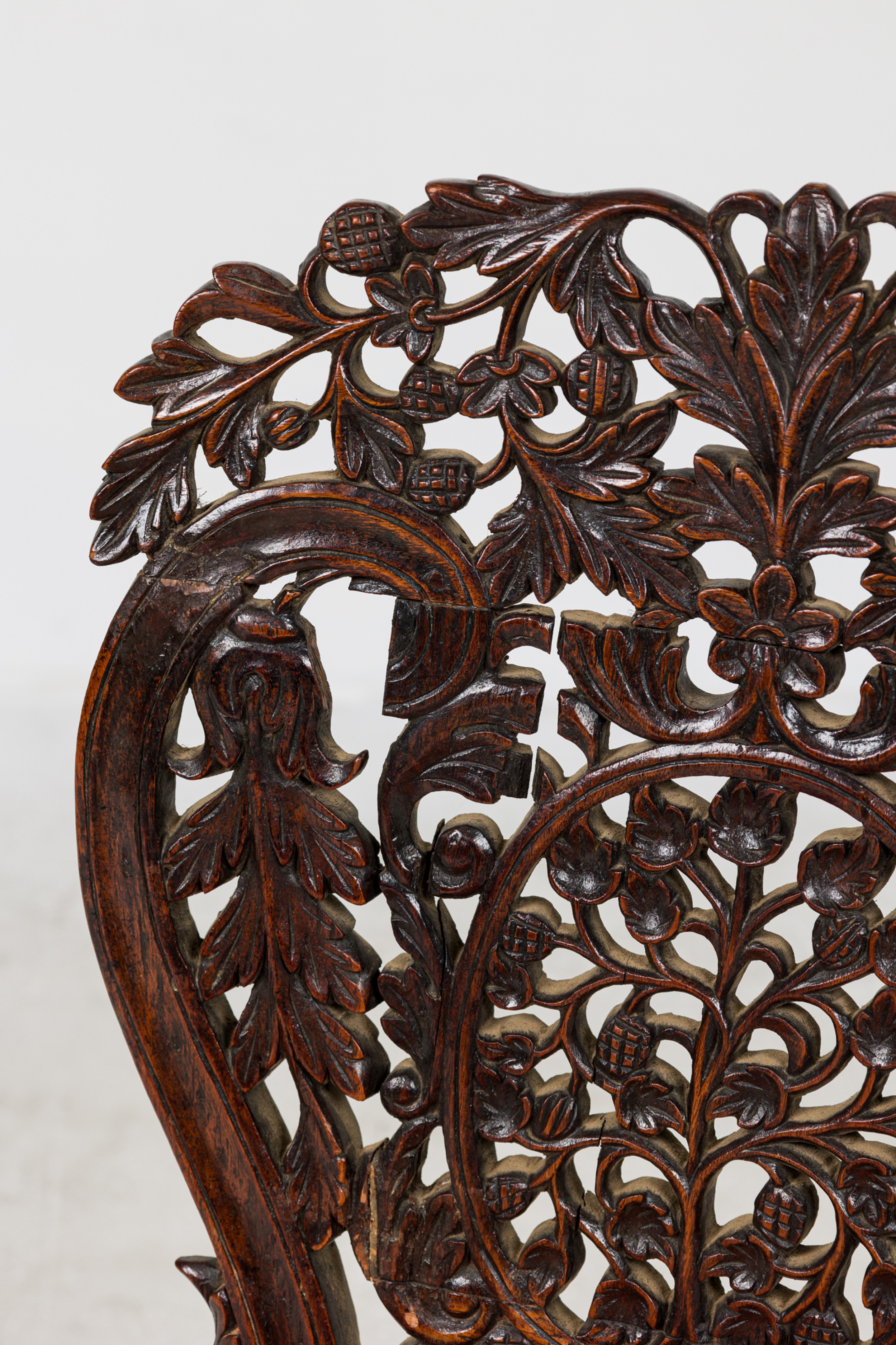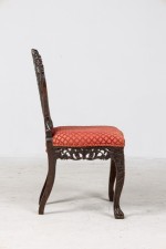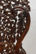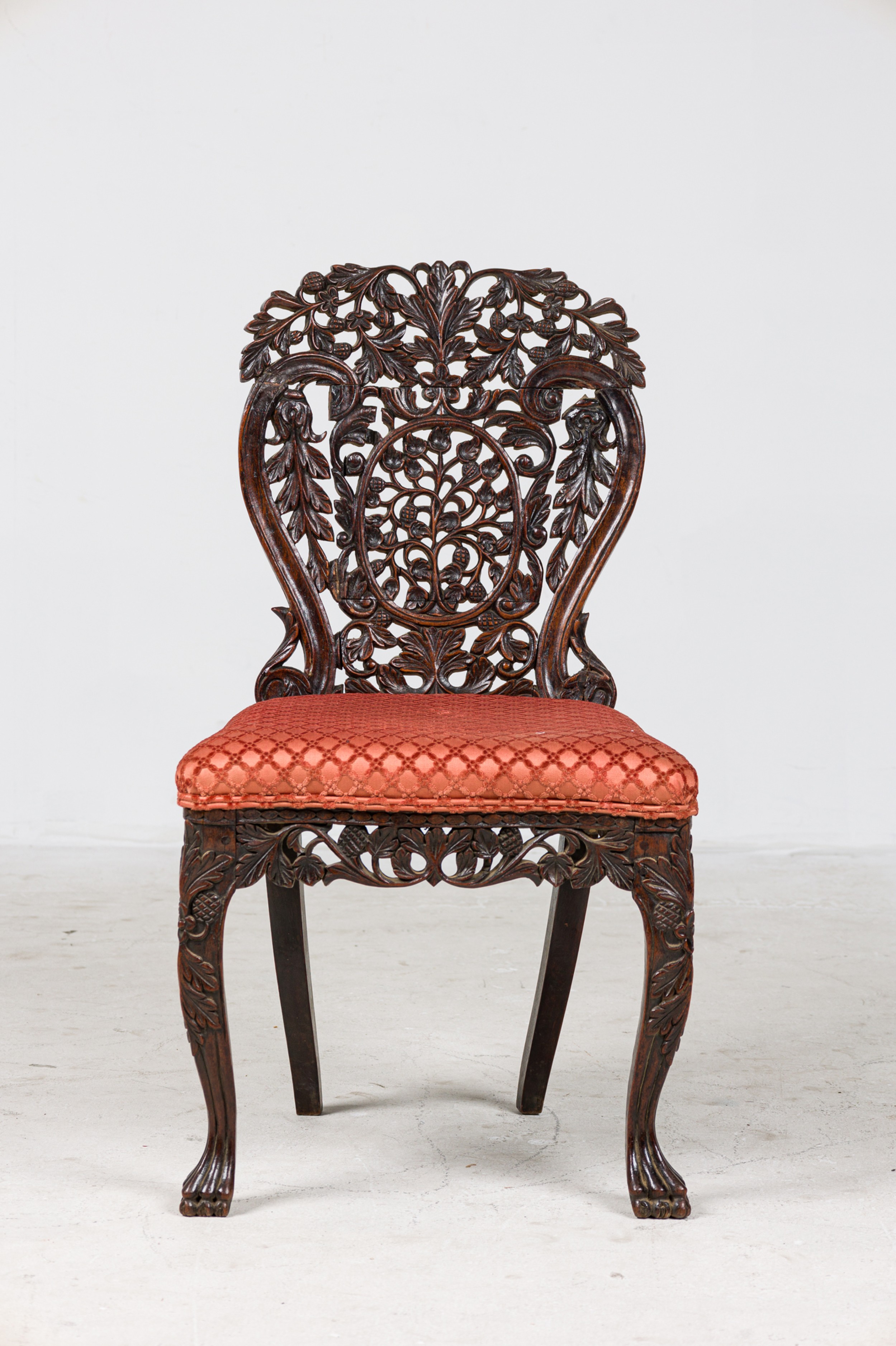 SET of 4 Asian Burmese (19th Cent) carved walnut shaped filigree side chairs with upholstered seat (PRICED AS SET)