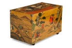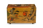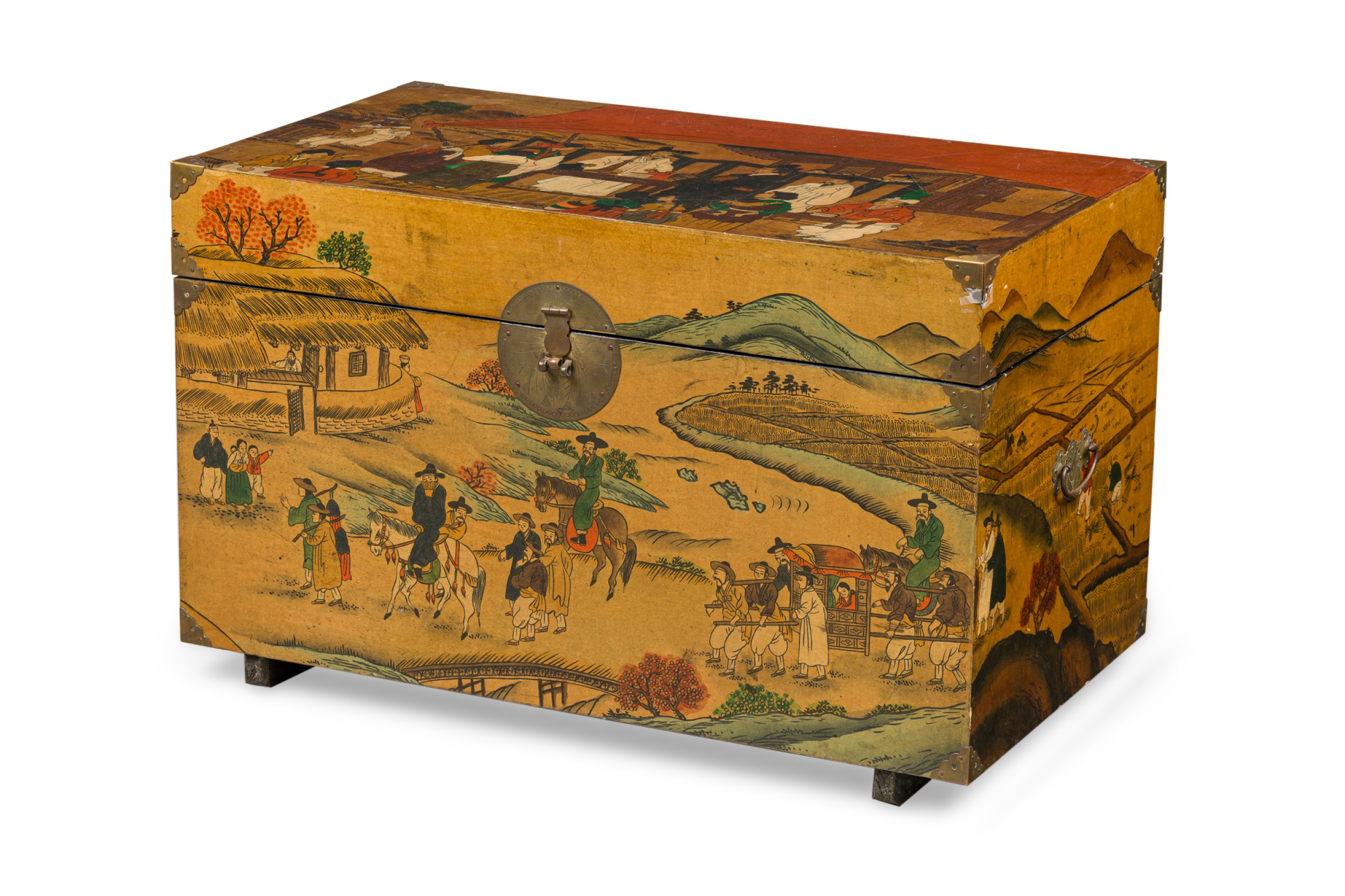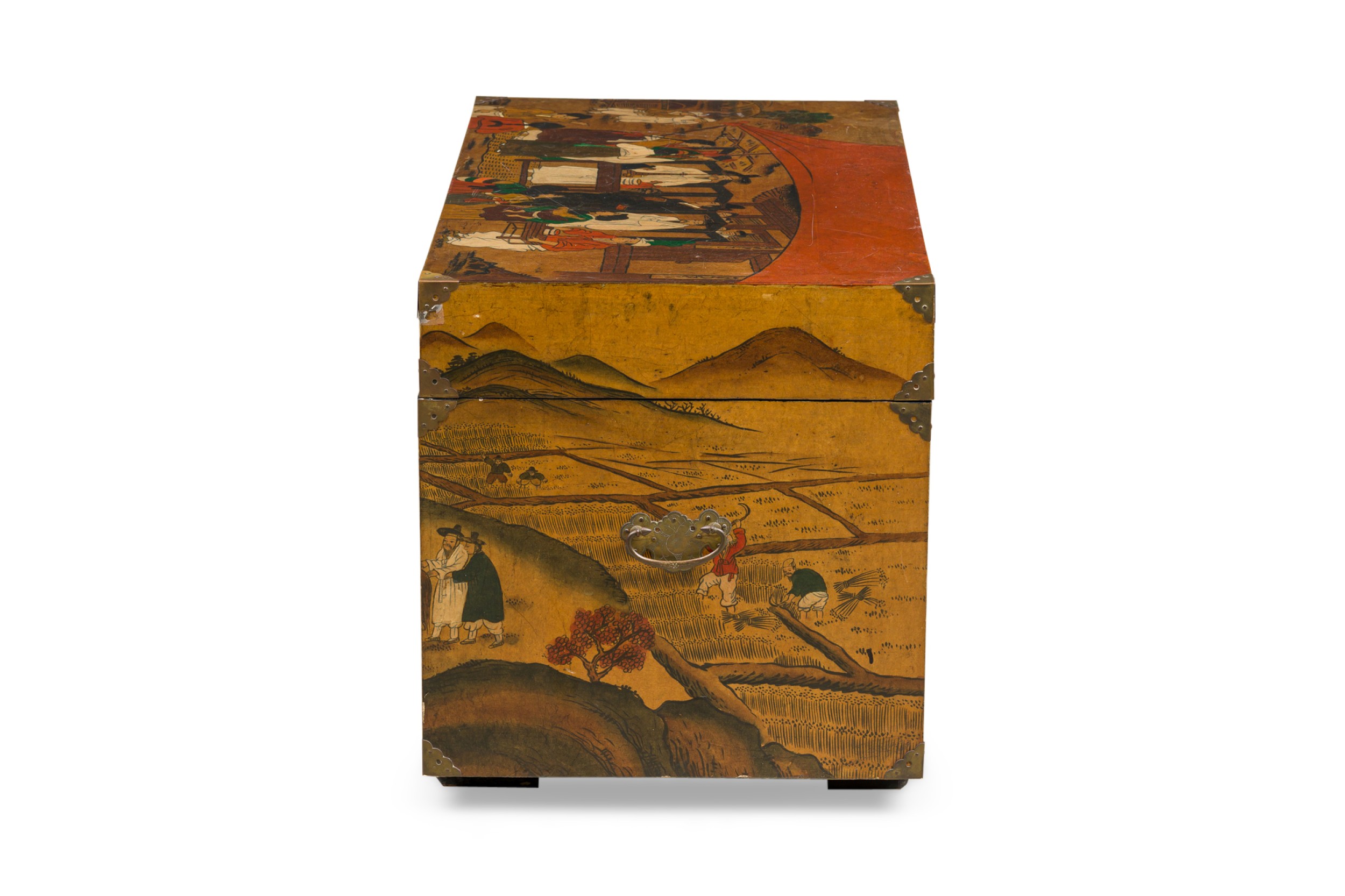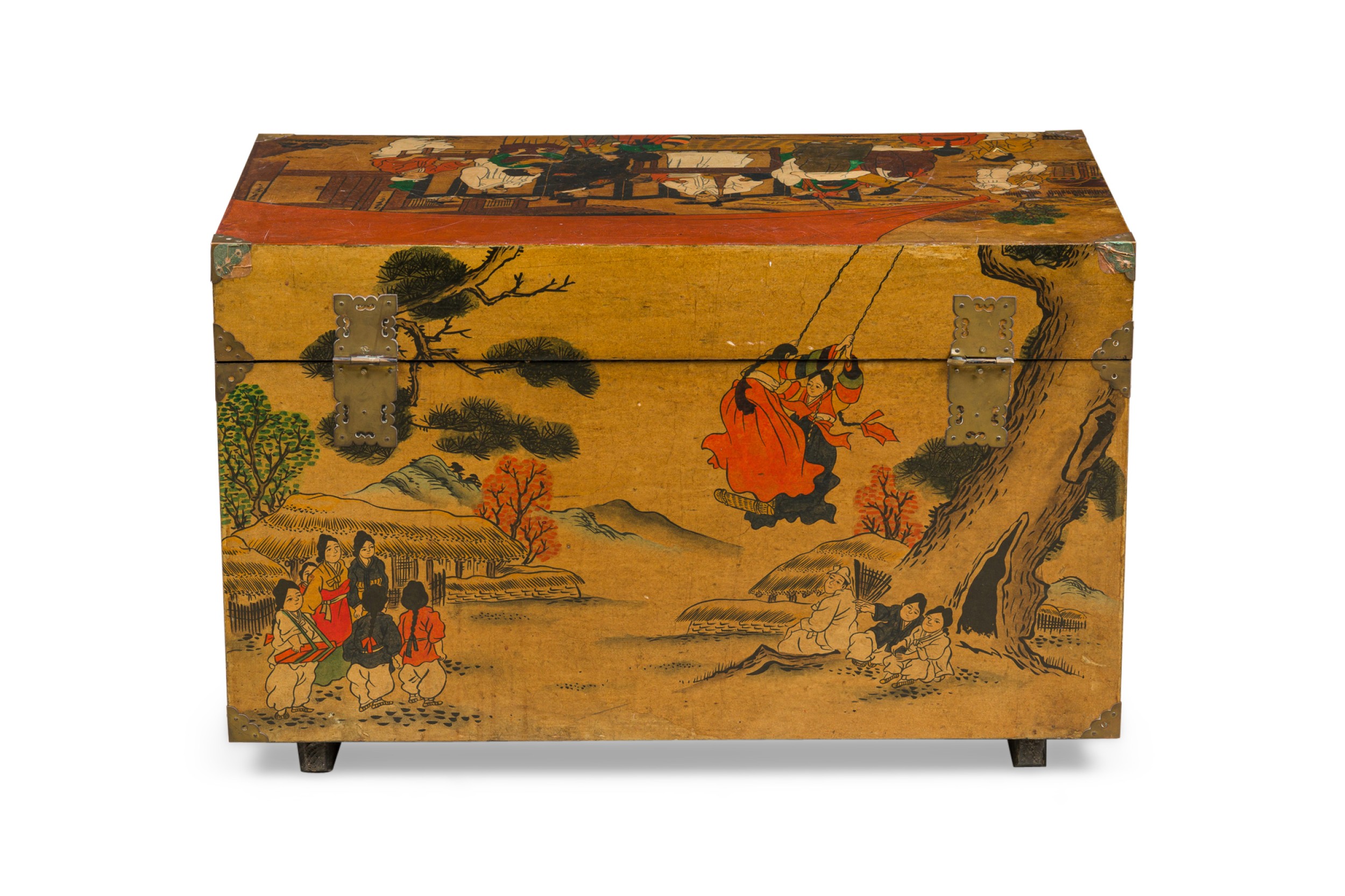 Asian Chinese hand painted large box decorated with of a small village gathering