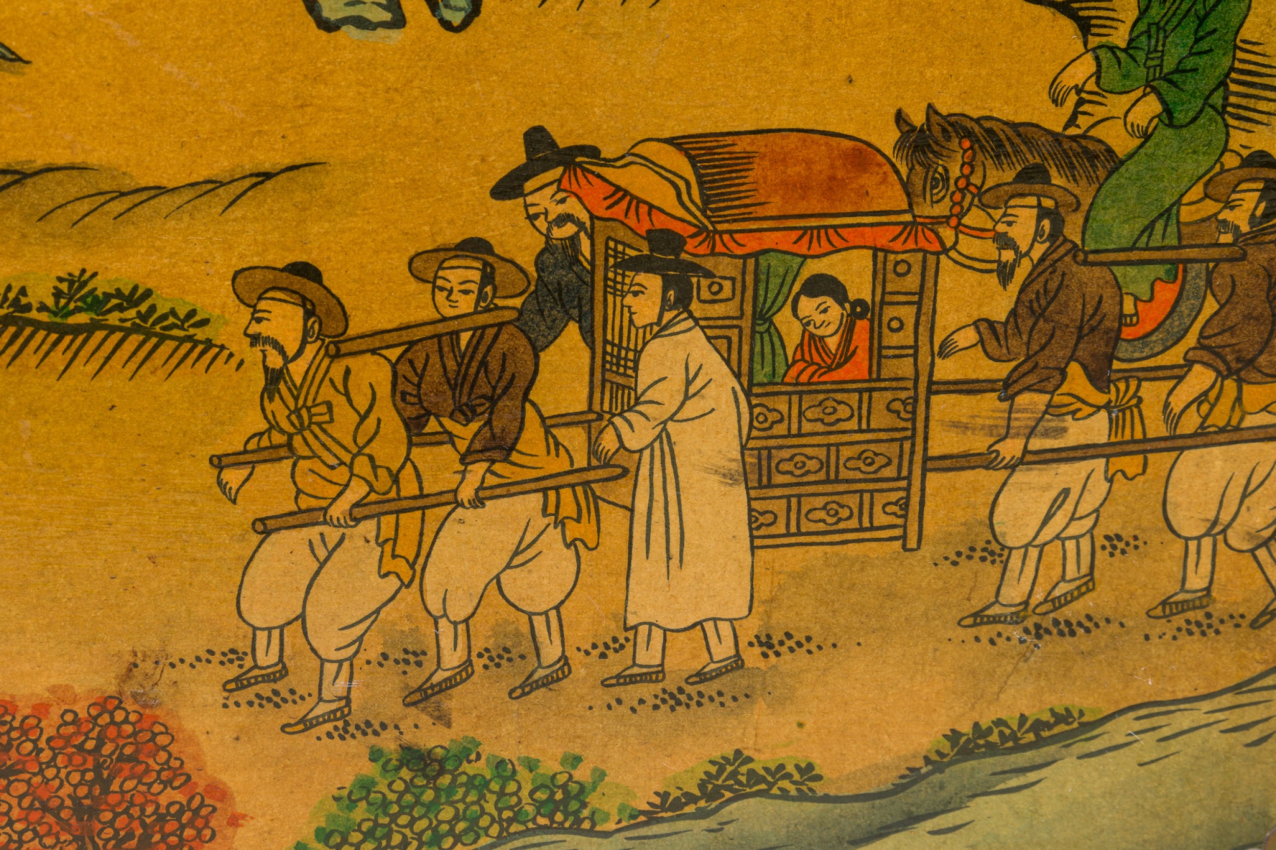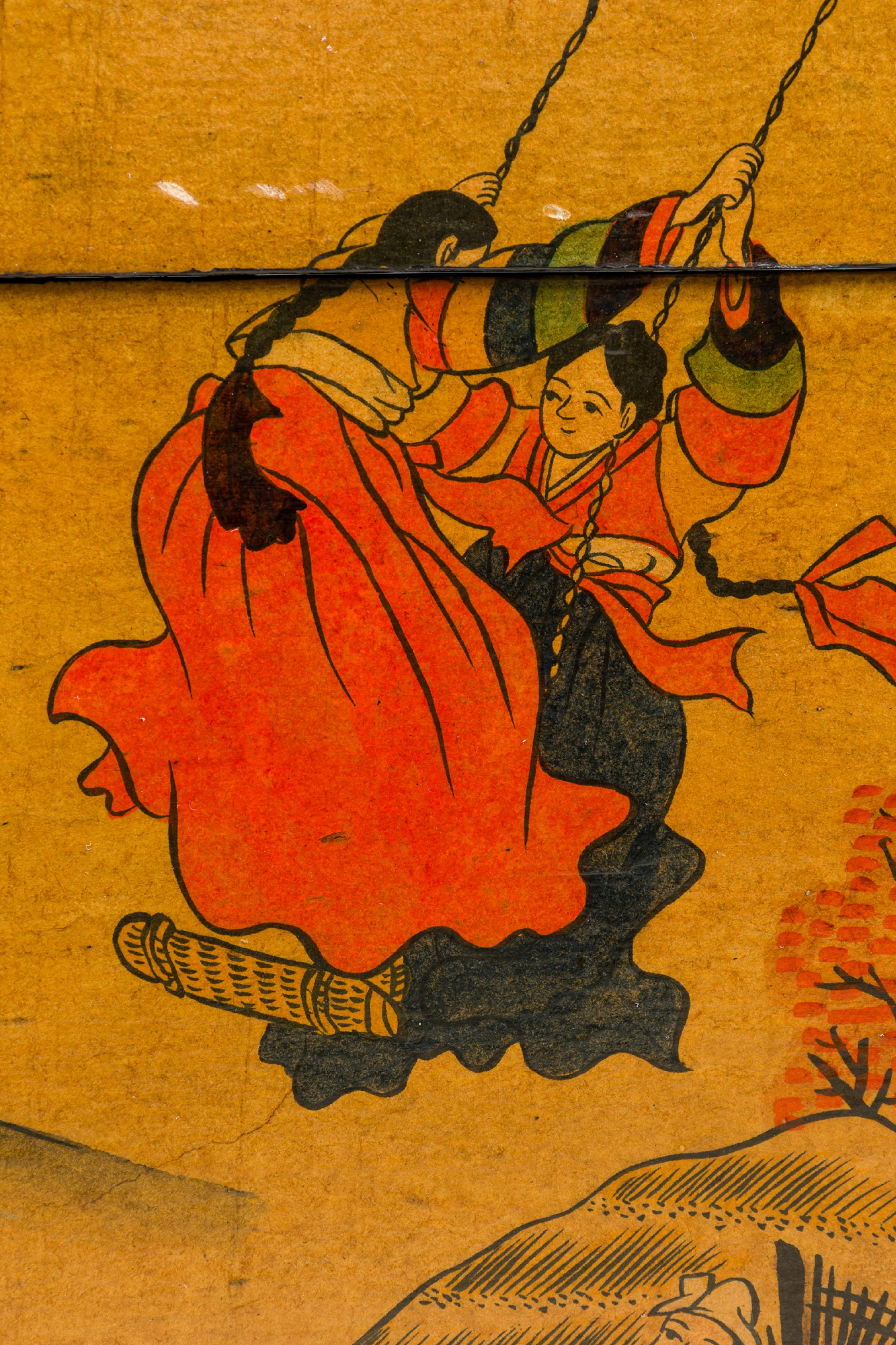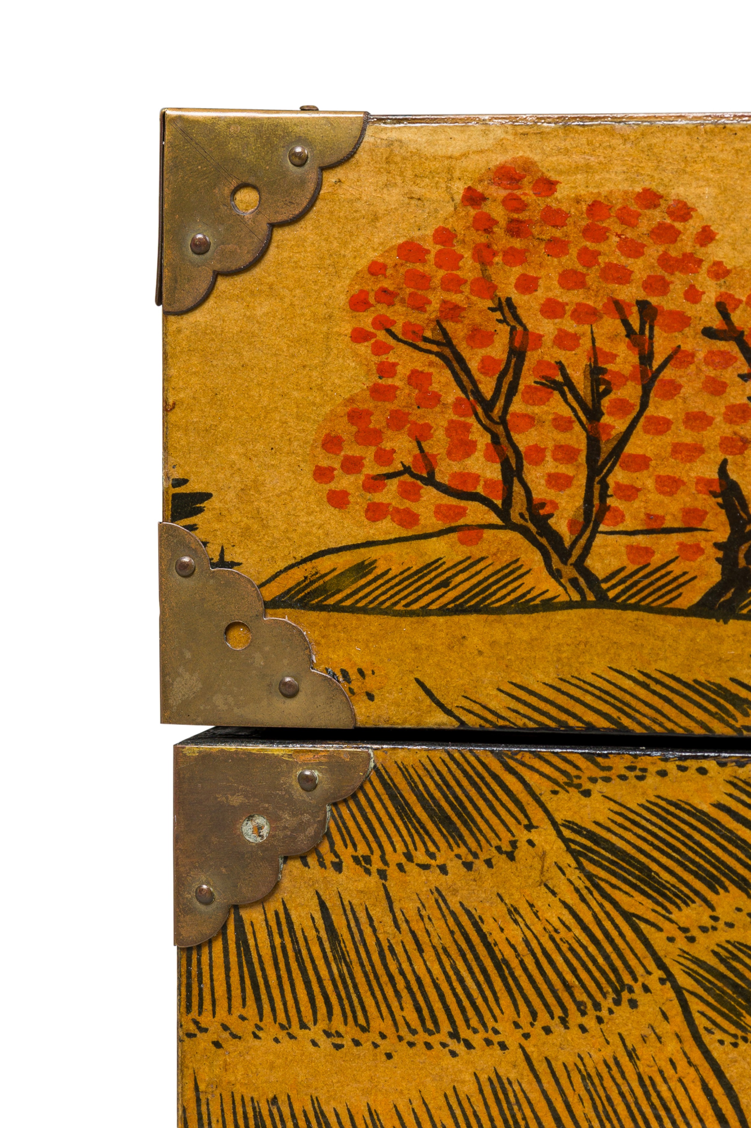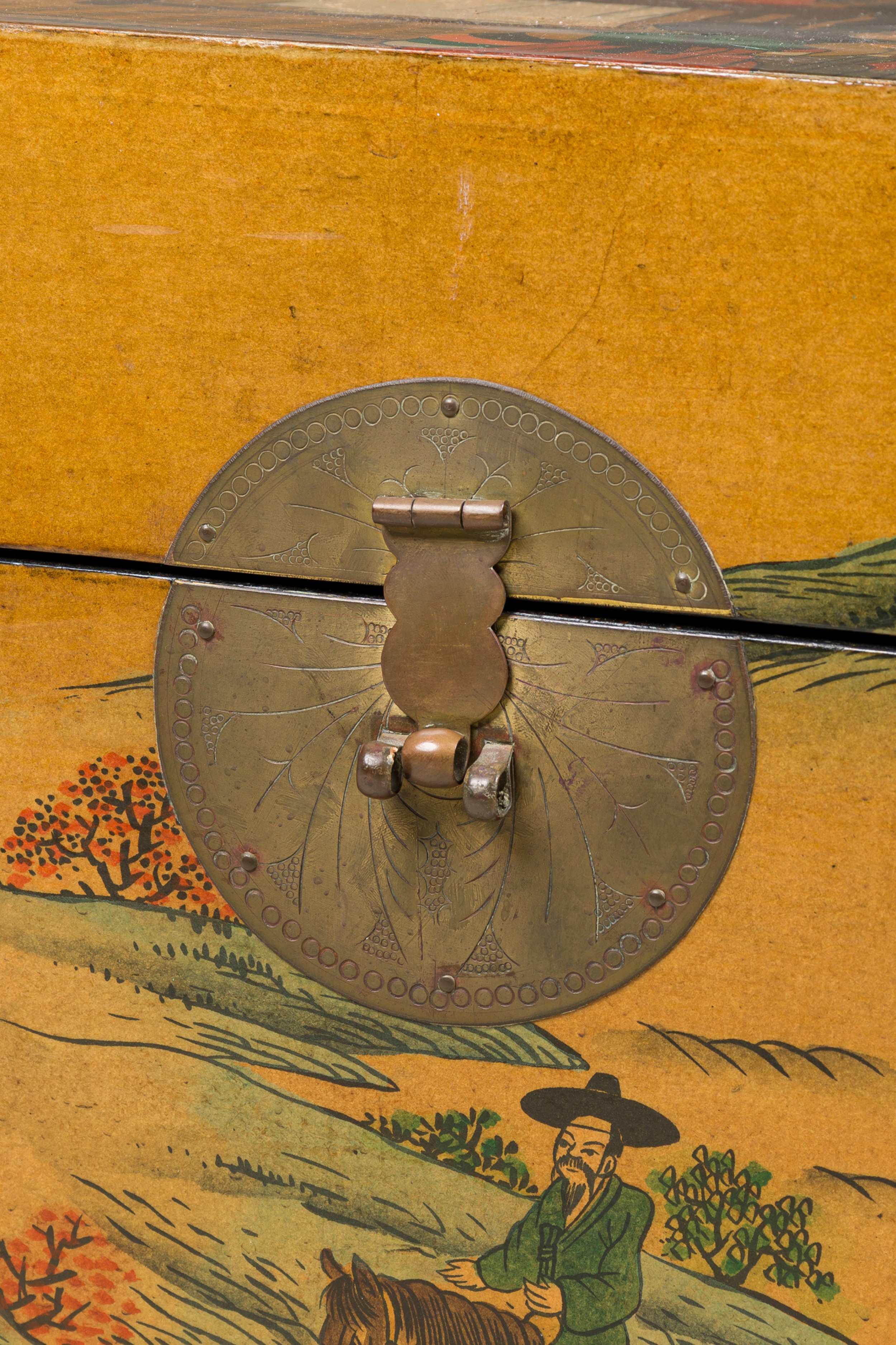 Asian Chinese hand painted large box decorated with of a small village gathering