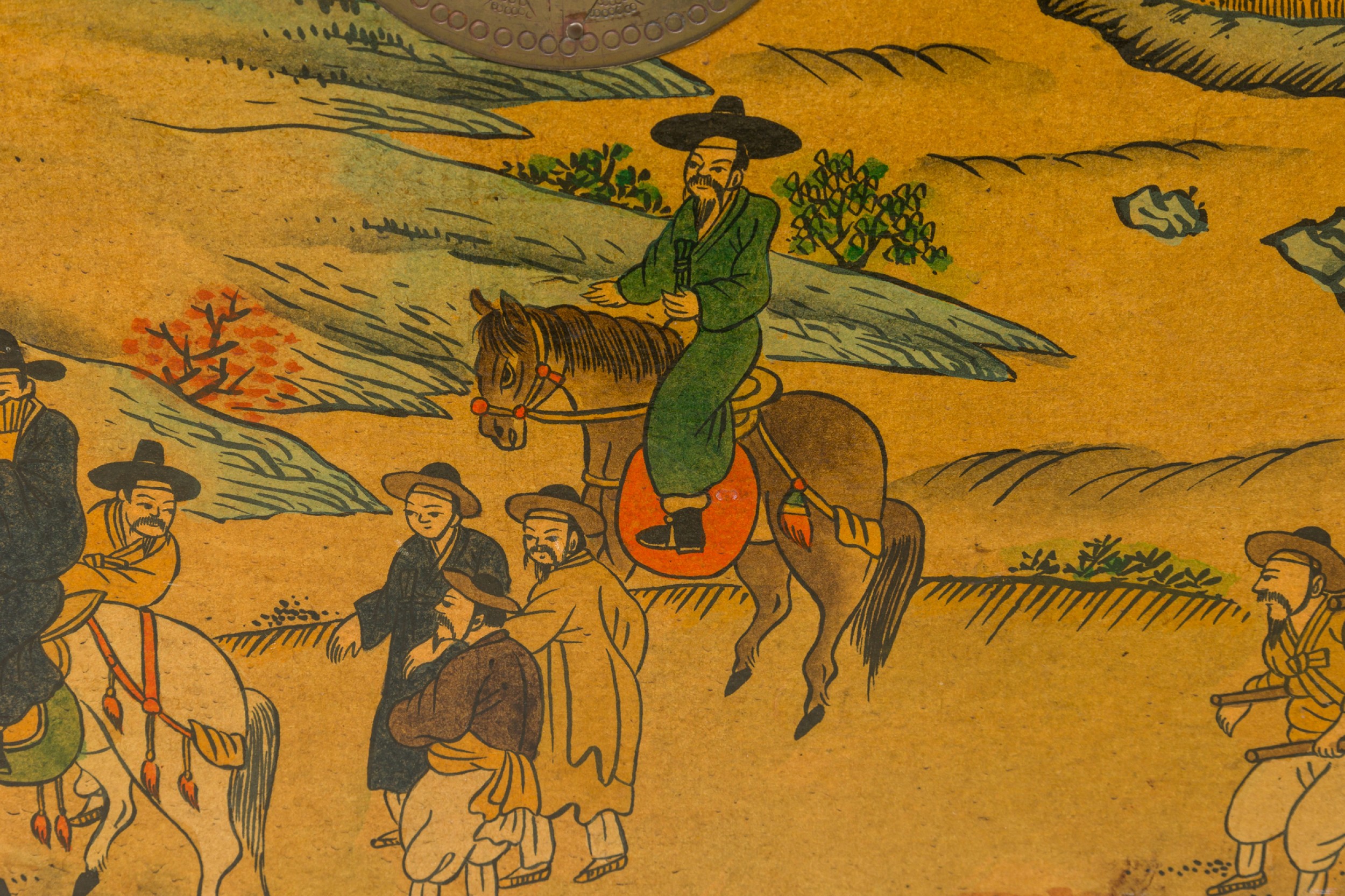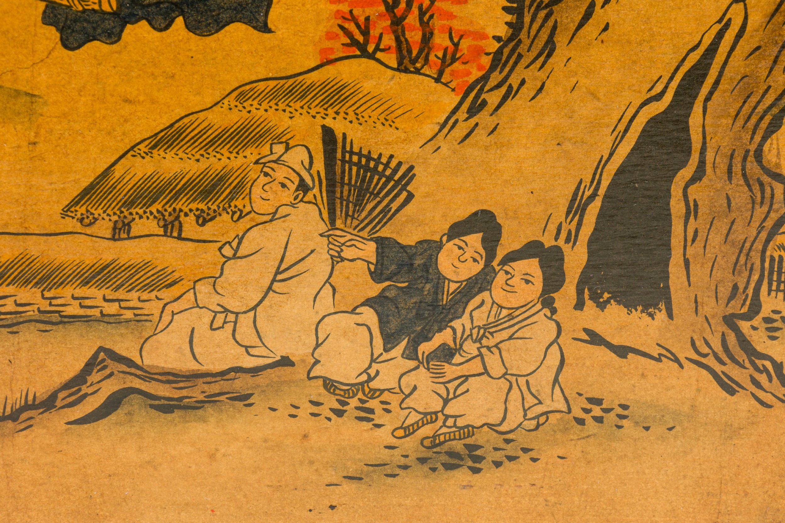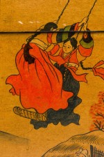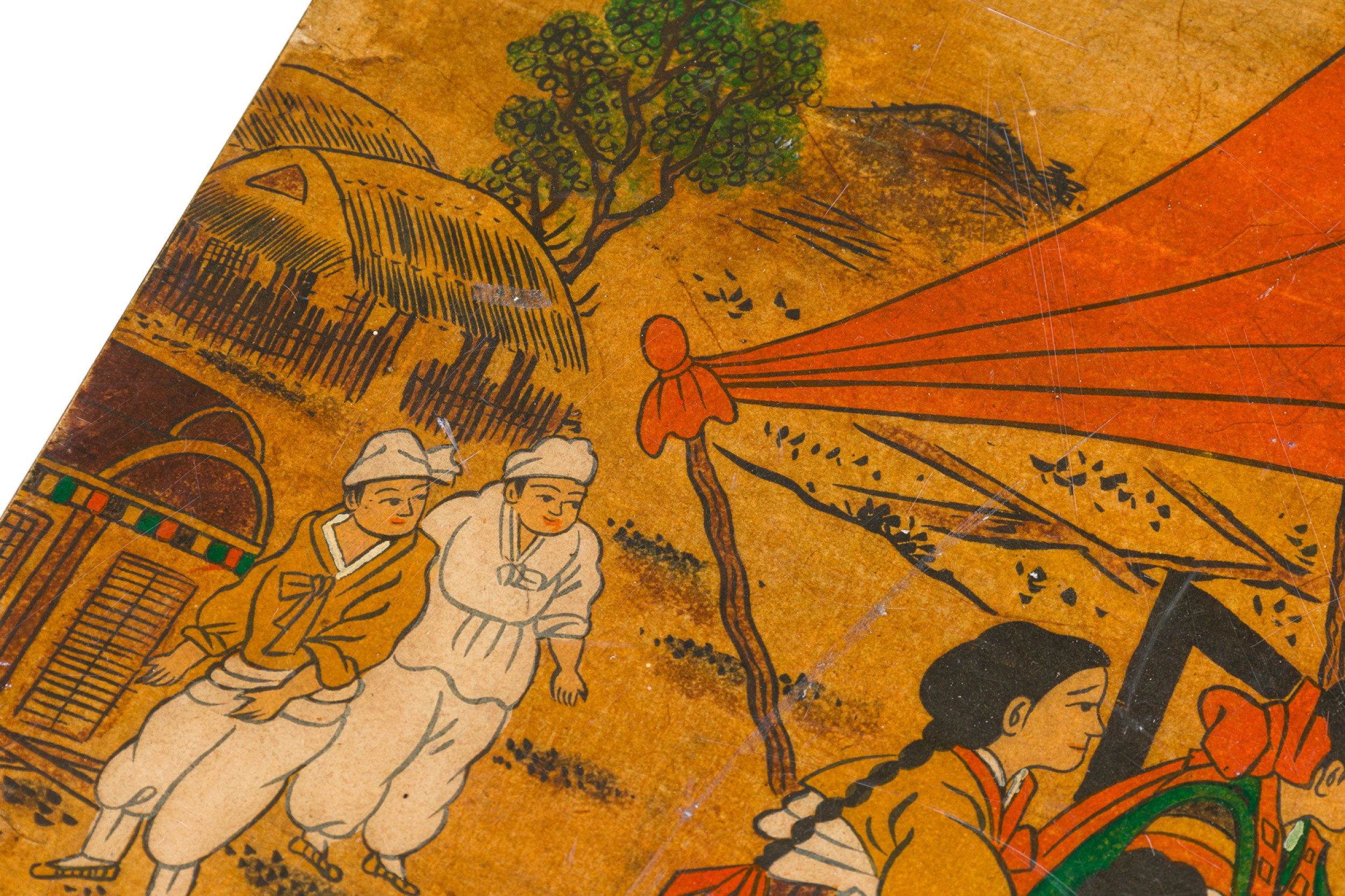 Asian Chinese Box Hand Painted with Depiction of a Village Gathering