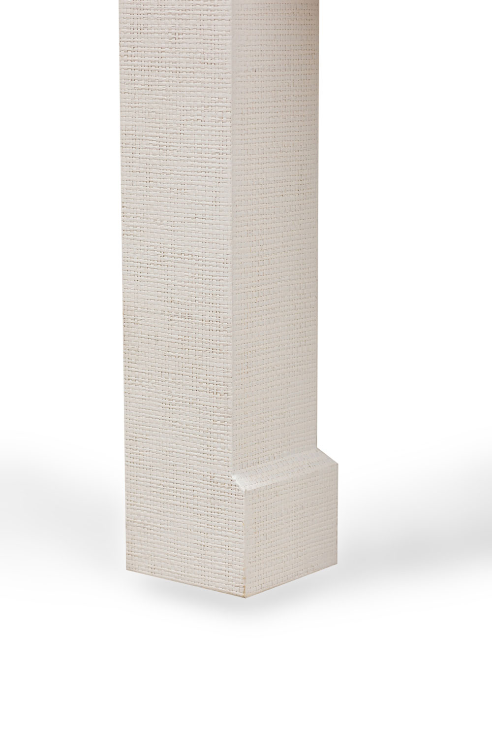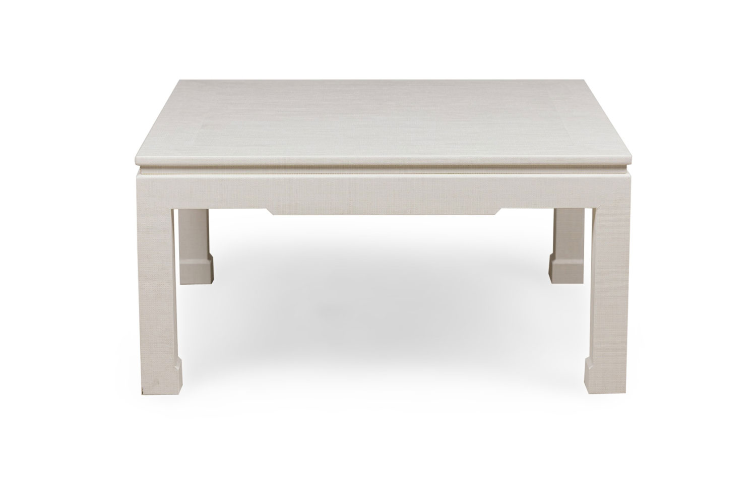 Asian Contemporary Ming dynasty style white raffia wrapped square coffee table with a shaped apron and indented form below the top.