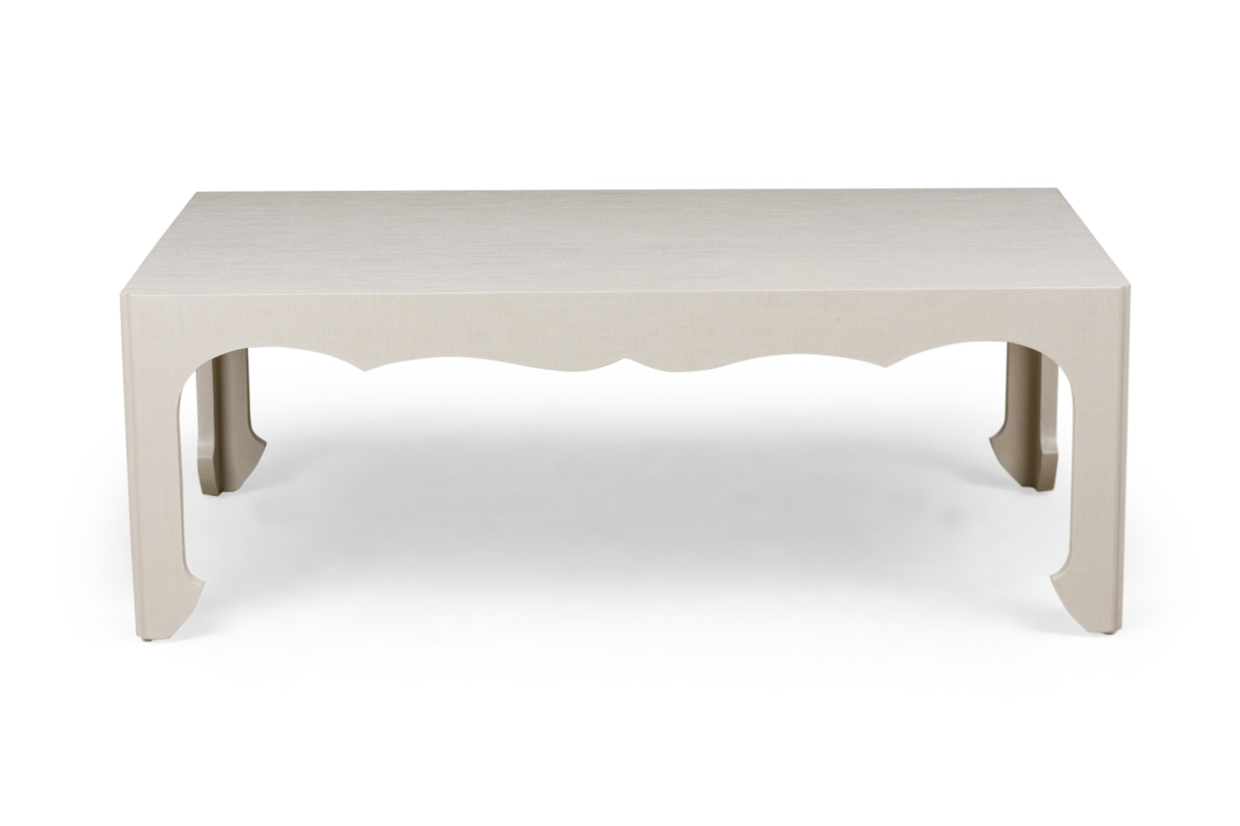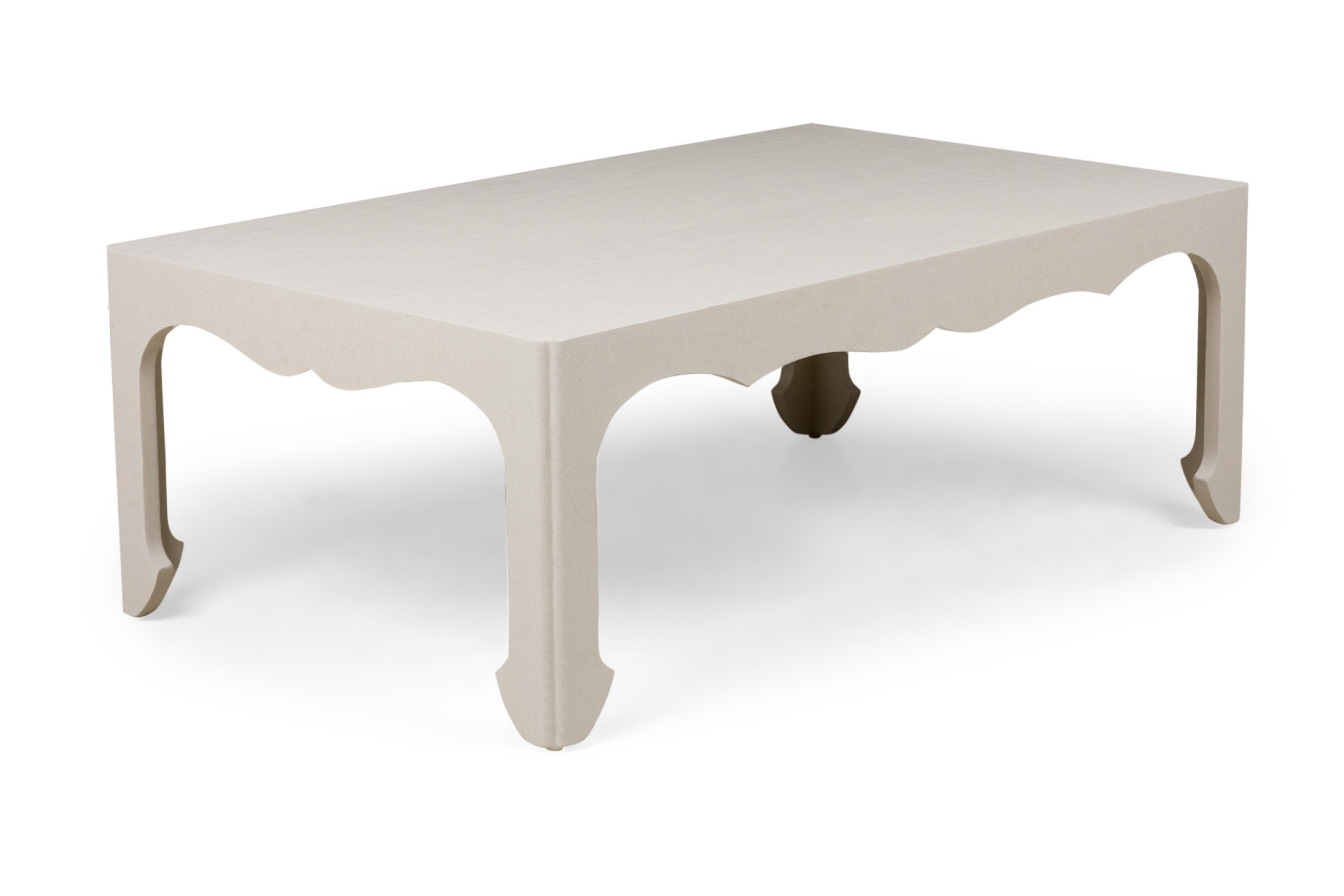 Asian Contemporary Style Light Gray Colored Raffia Wrapped Coffee Table (Made to Order)