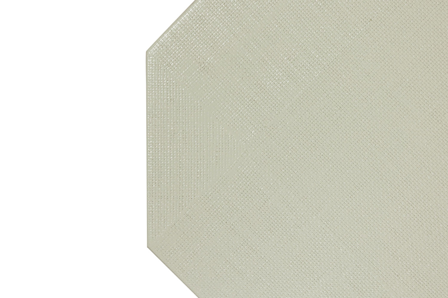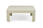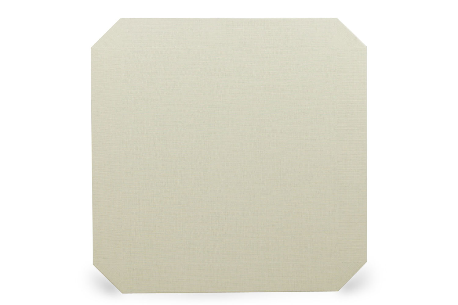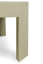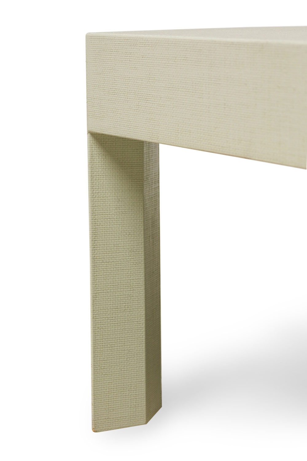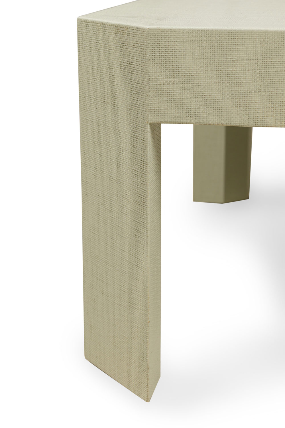 Asian contemporary style light sage colored raffia wrapped square coffee table having diagonal cut corners.