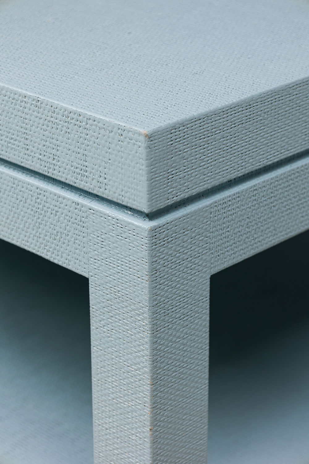 Asian Contemporary Style Sky Blue Colored Raffia Wrapped Coffee Table With Reveal