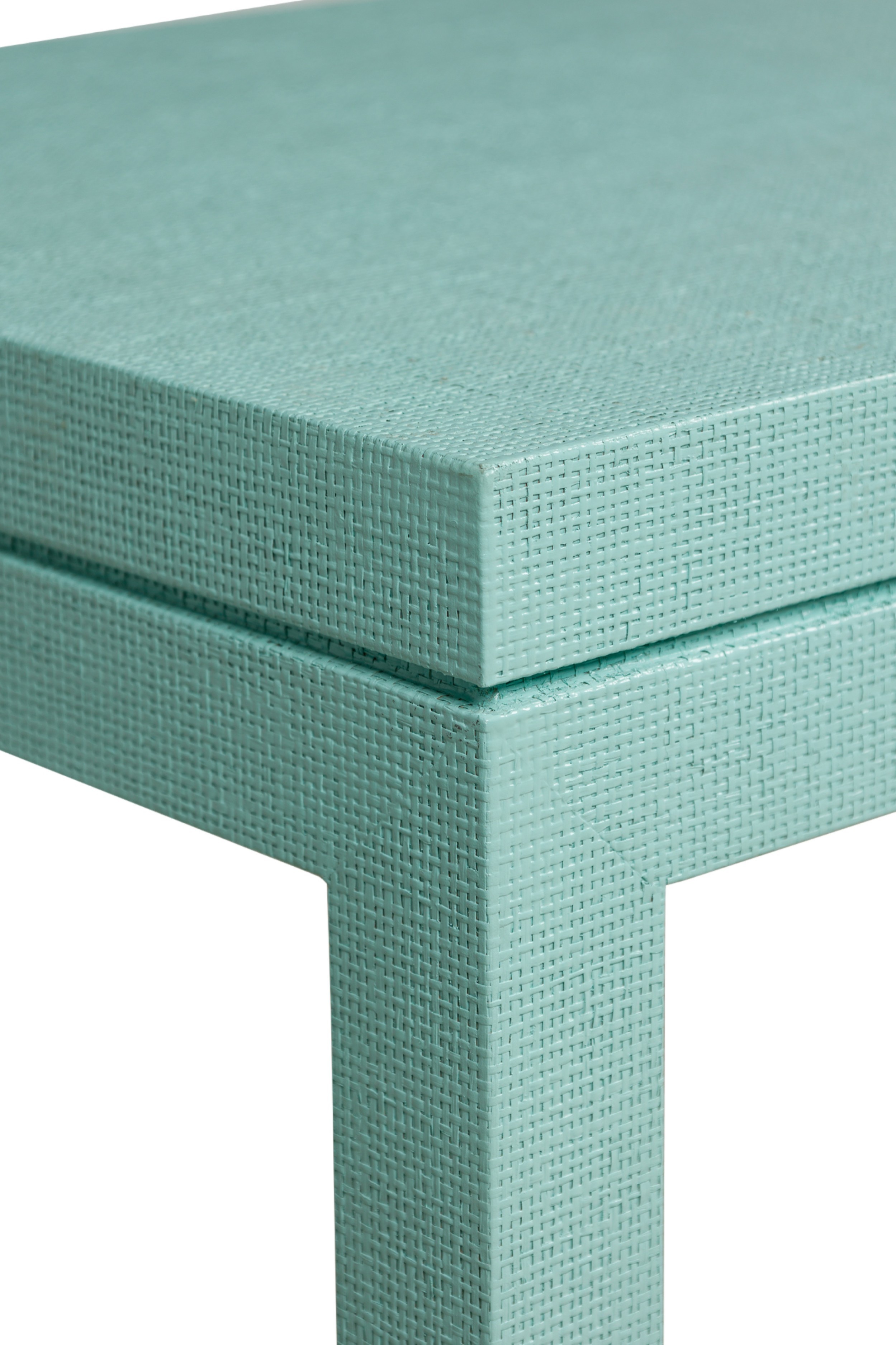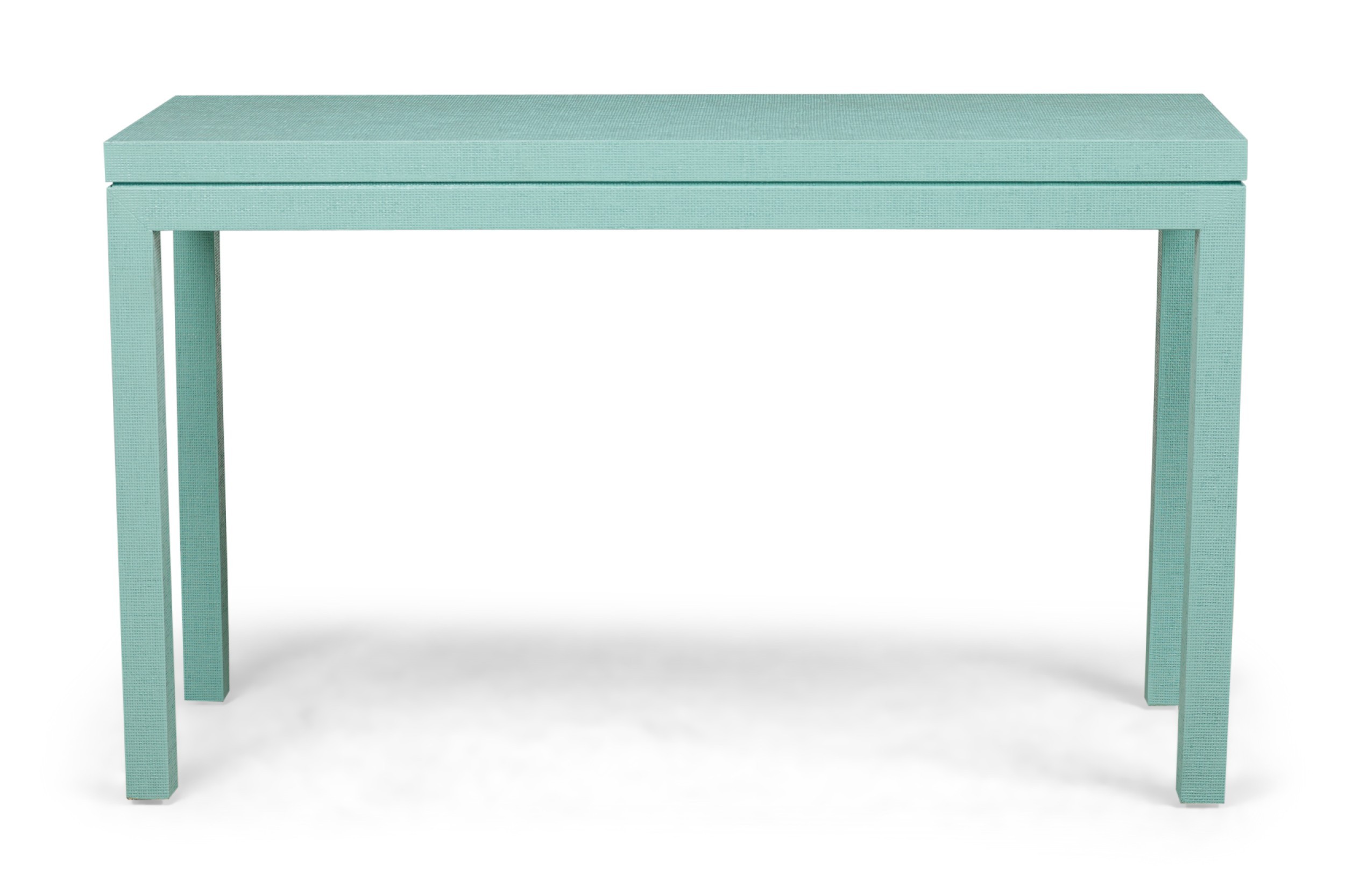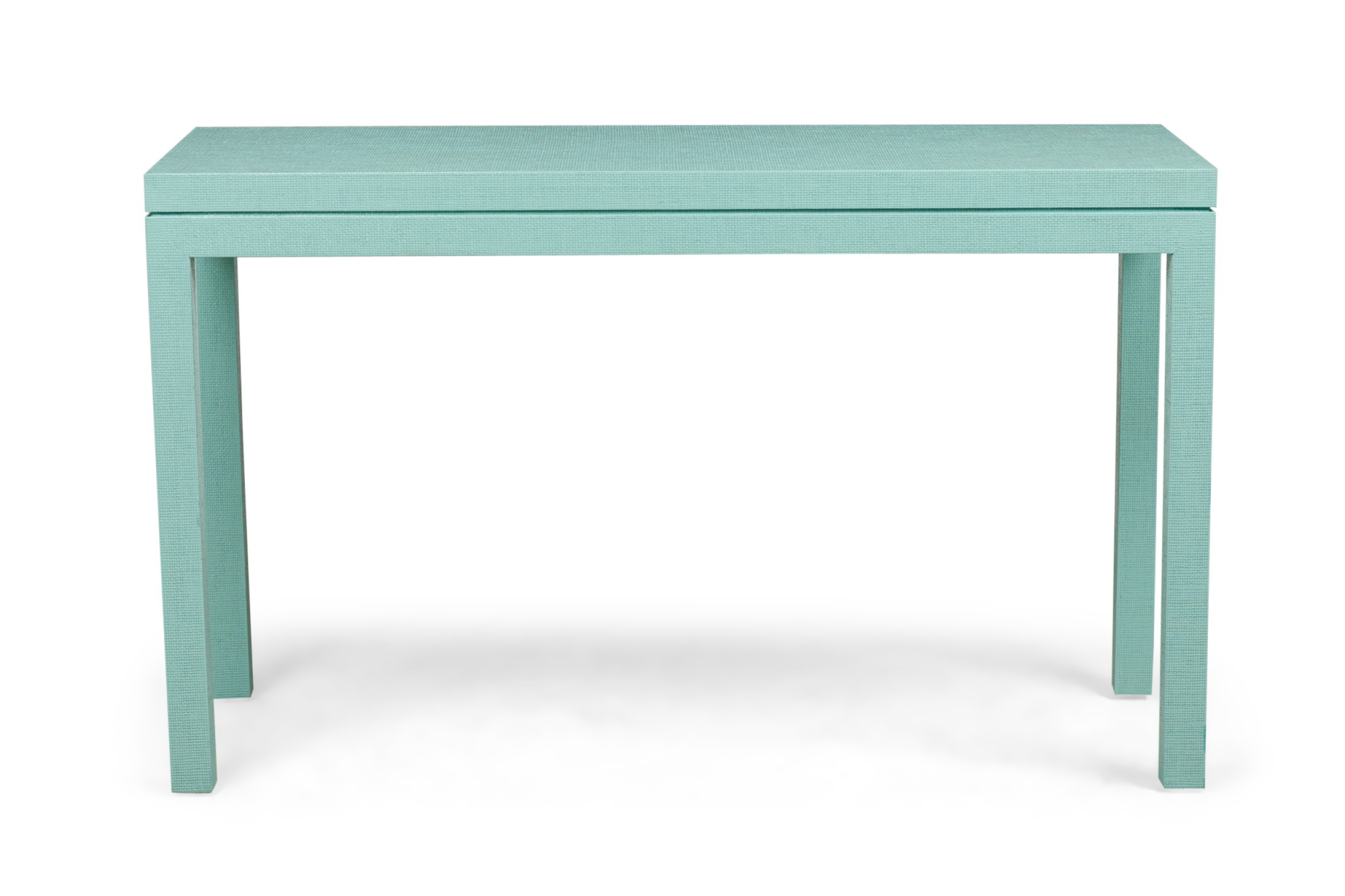 Asian Contemporary Style Turquoise Colored Raffia Wrapped Console Table (Made to Order)