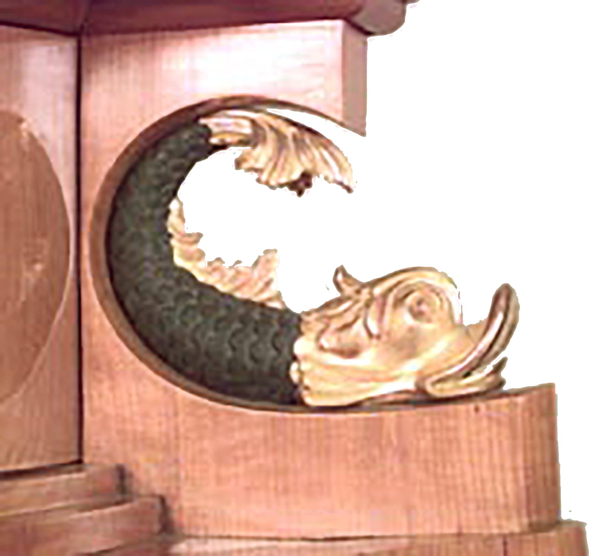 Austrian Biedermeier (Circa 1835) cherry veneer drop front secretary with 2 ebonized and gilt dolphins and birch root interior drawers with inlaid trim..