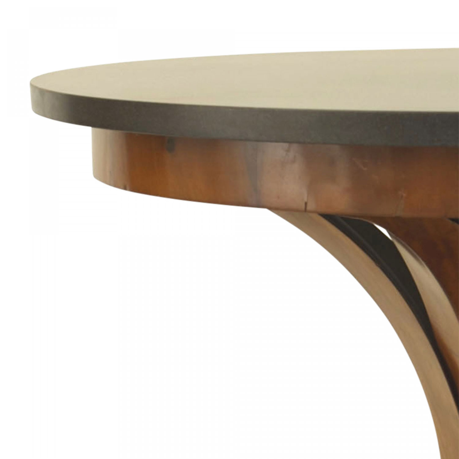 Austrian Biedermeier (circa 1830) black round marble topped mahogany center table having a palm leaf support over a tripartite base on padded feet..