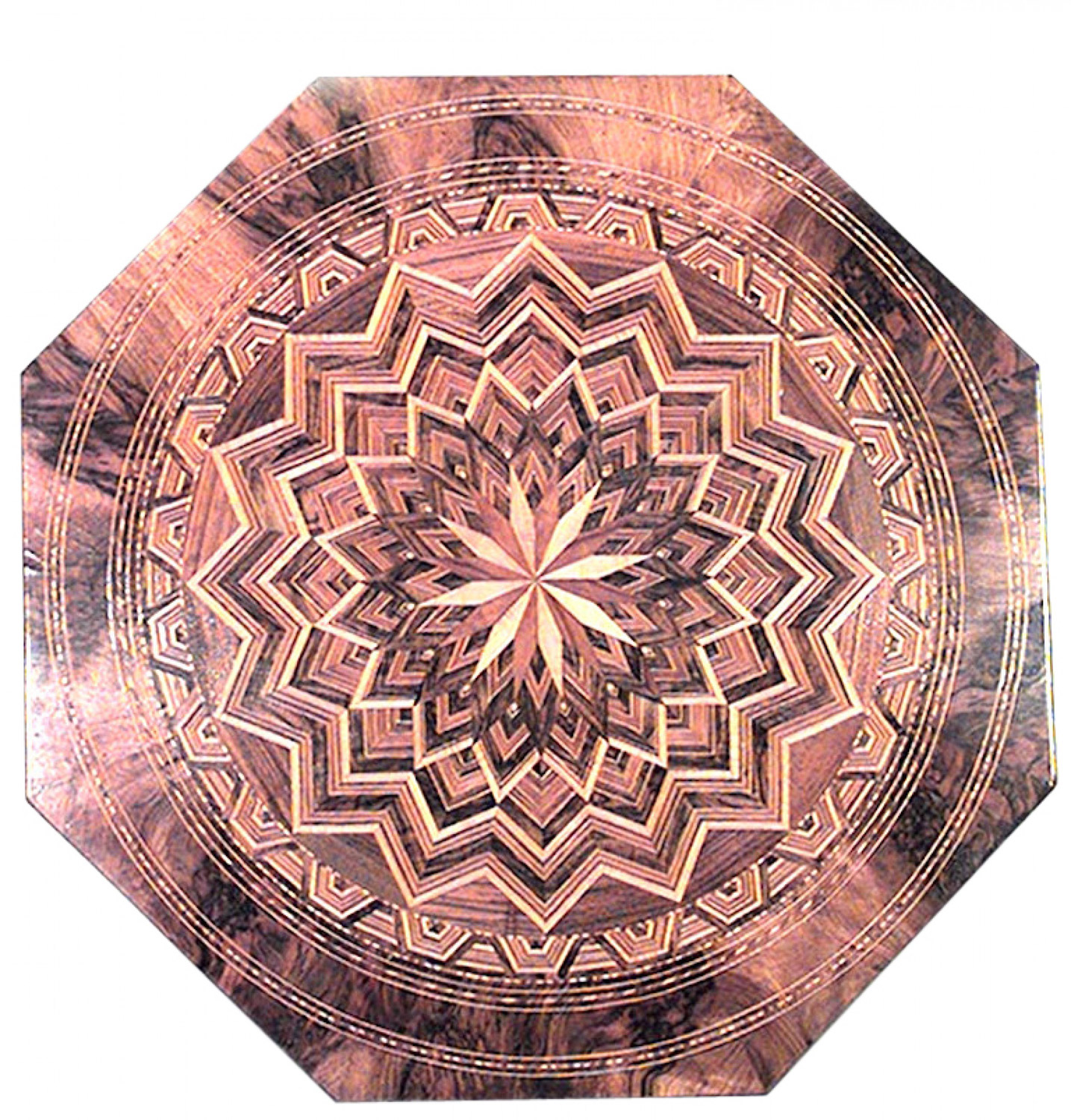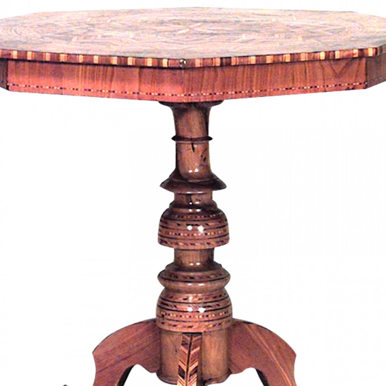 Austrian Biedermeier-style (19th Century) maple inlaid pedestal base end table with octagonal top..