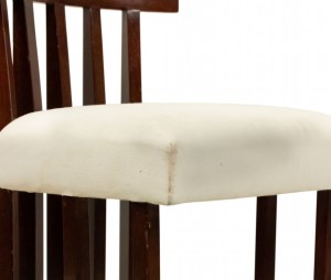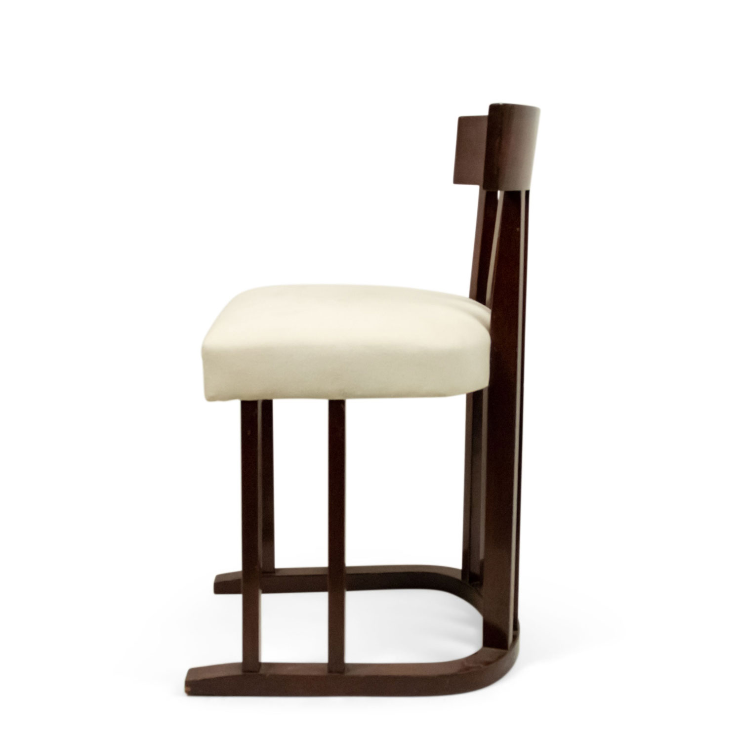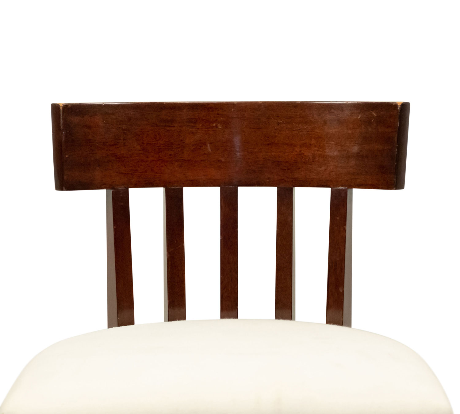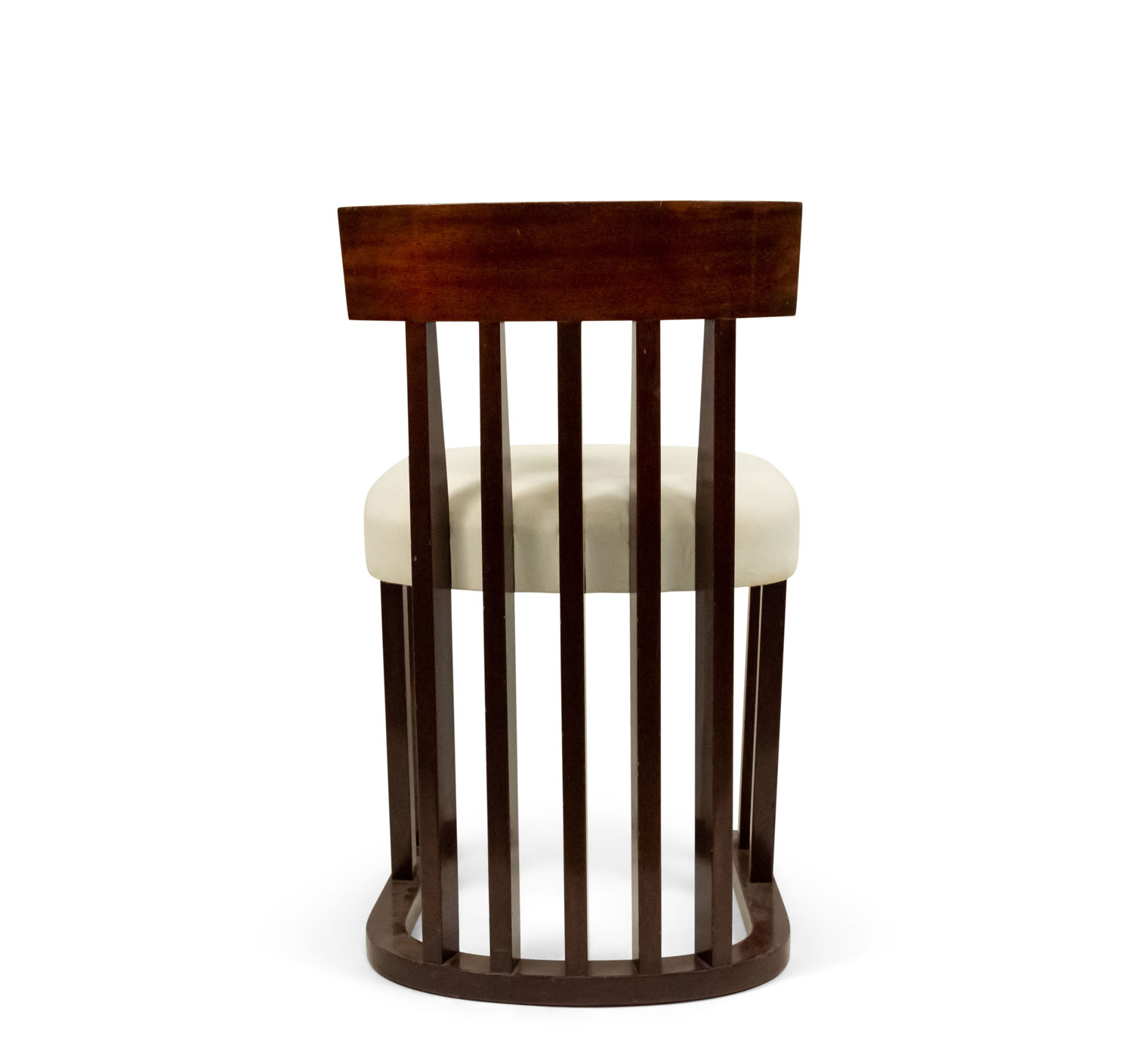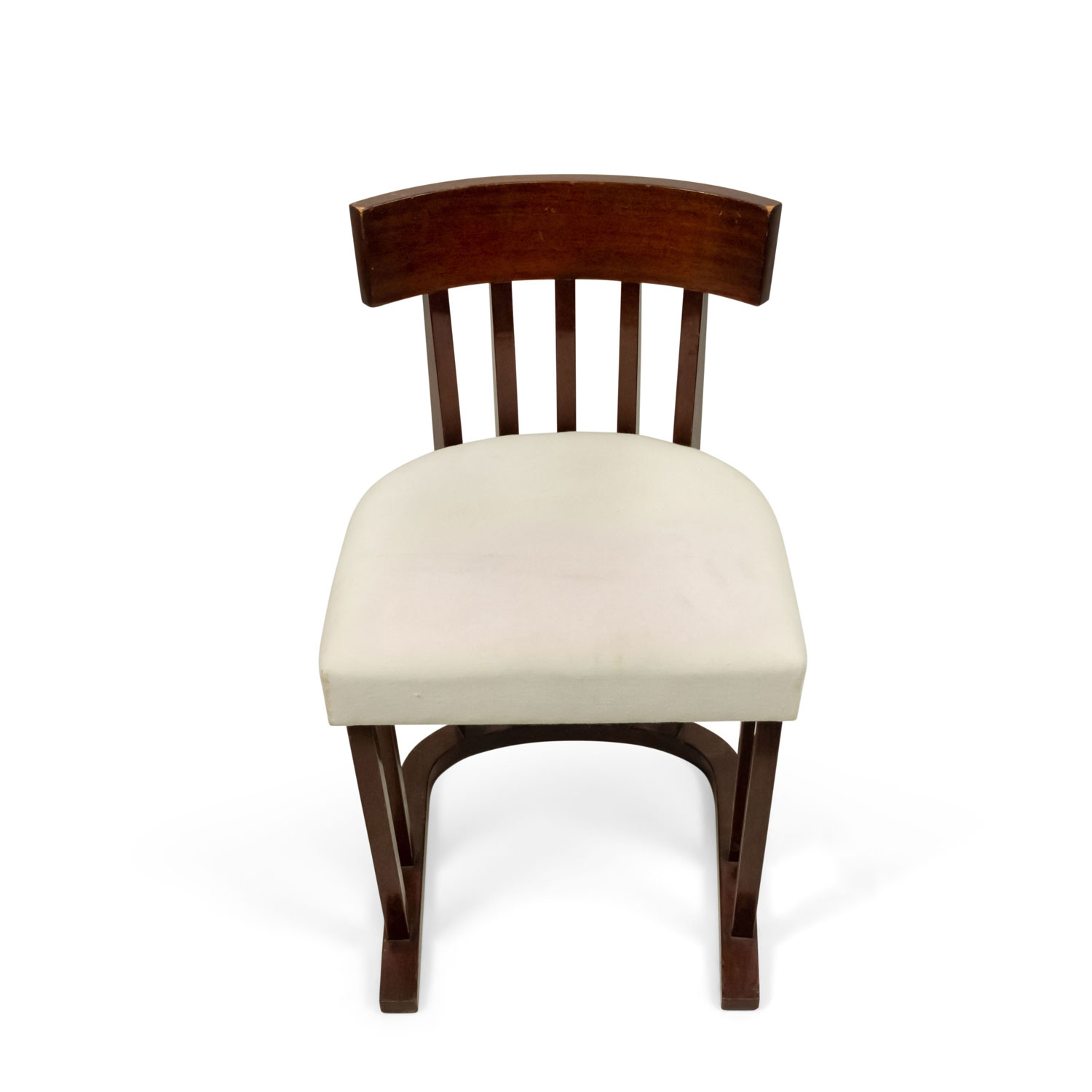 SET of 6 Austrian Secessionist style side chairs with low back and slat design with an upholstered seat..