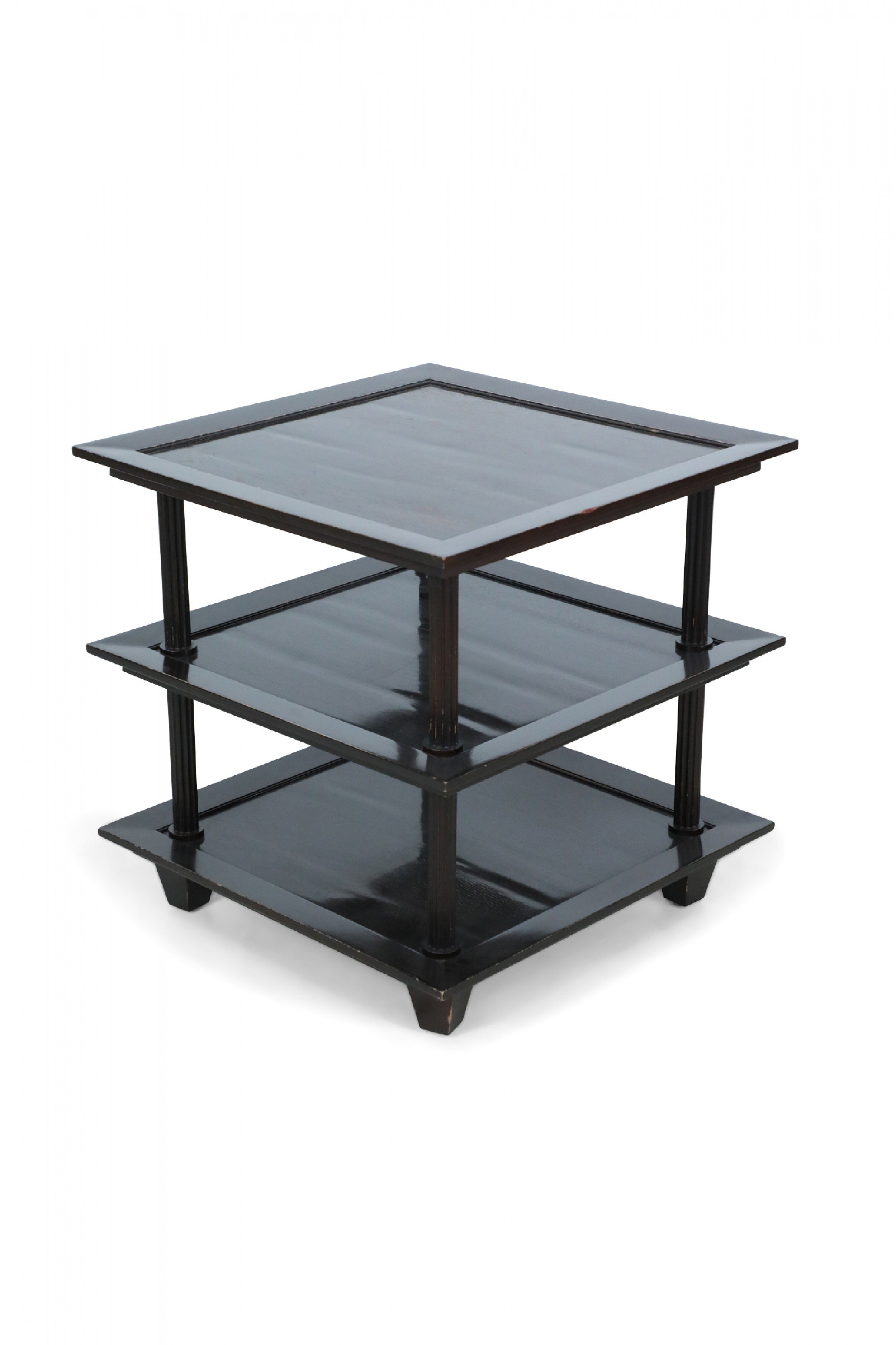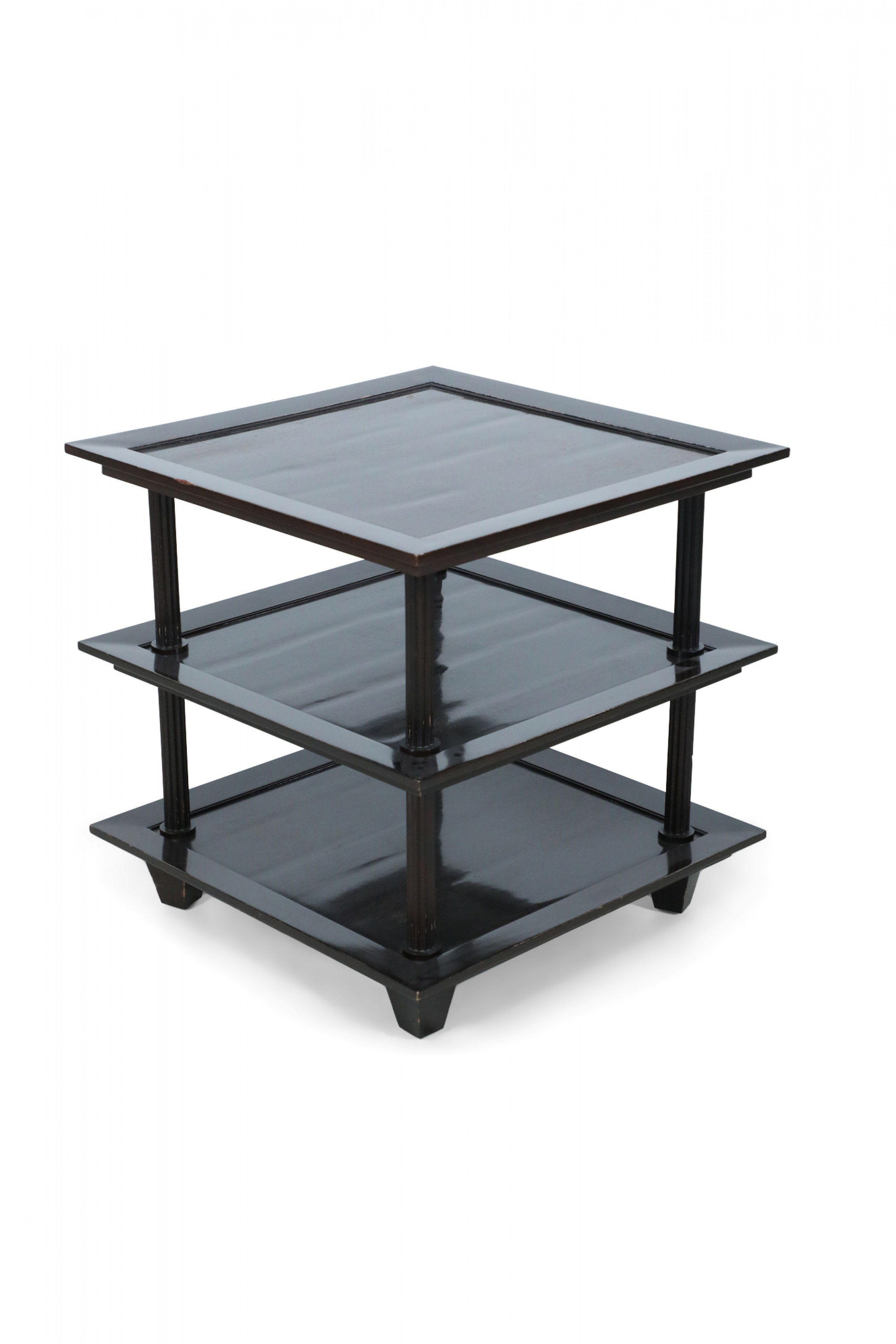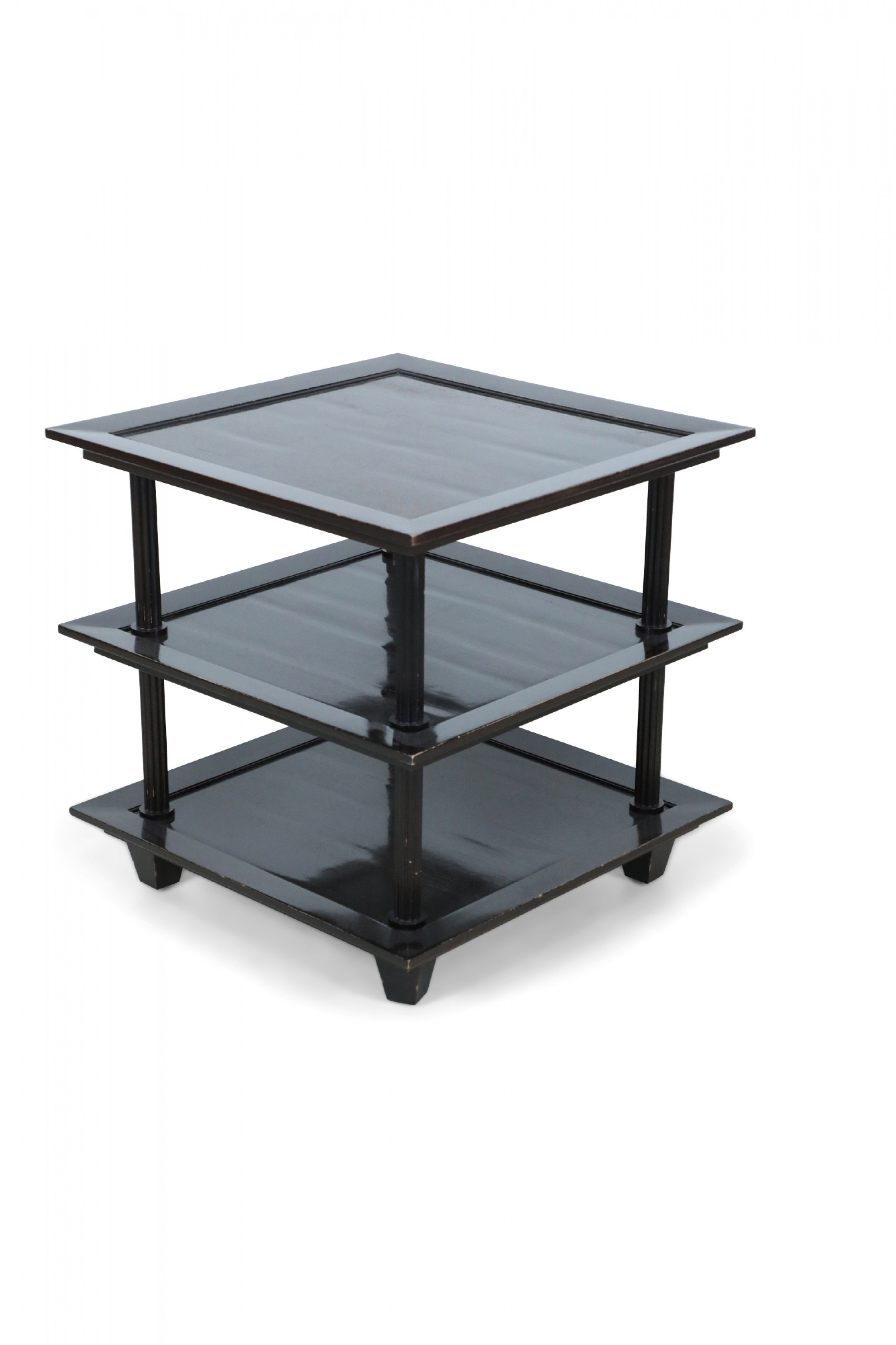 Contemporary American three tiered square mahogany accent /end table produced by Baker Furniture. (BARBARA BARRY)