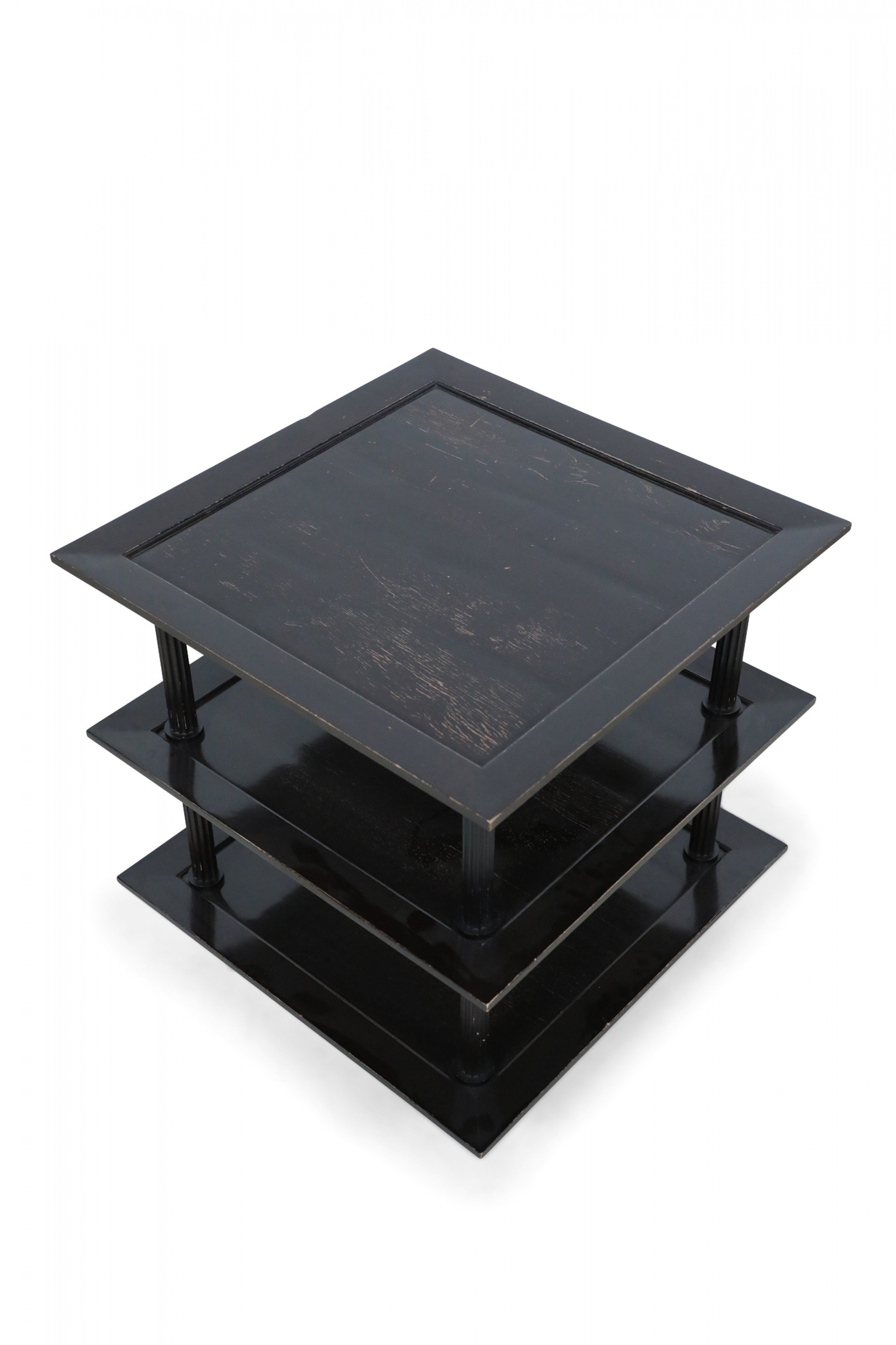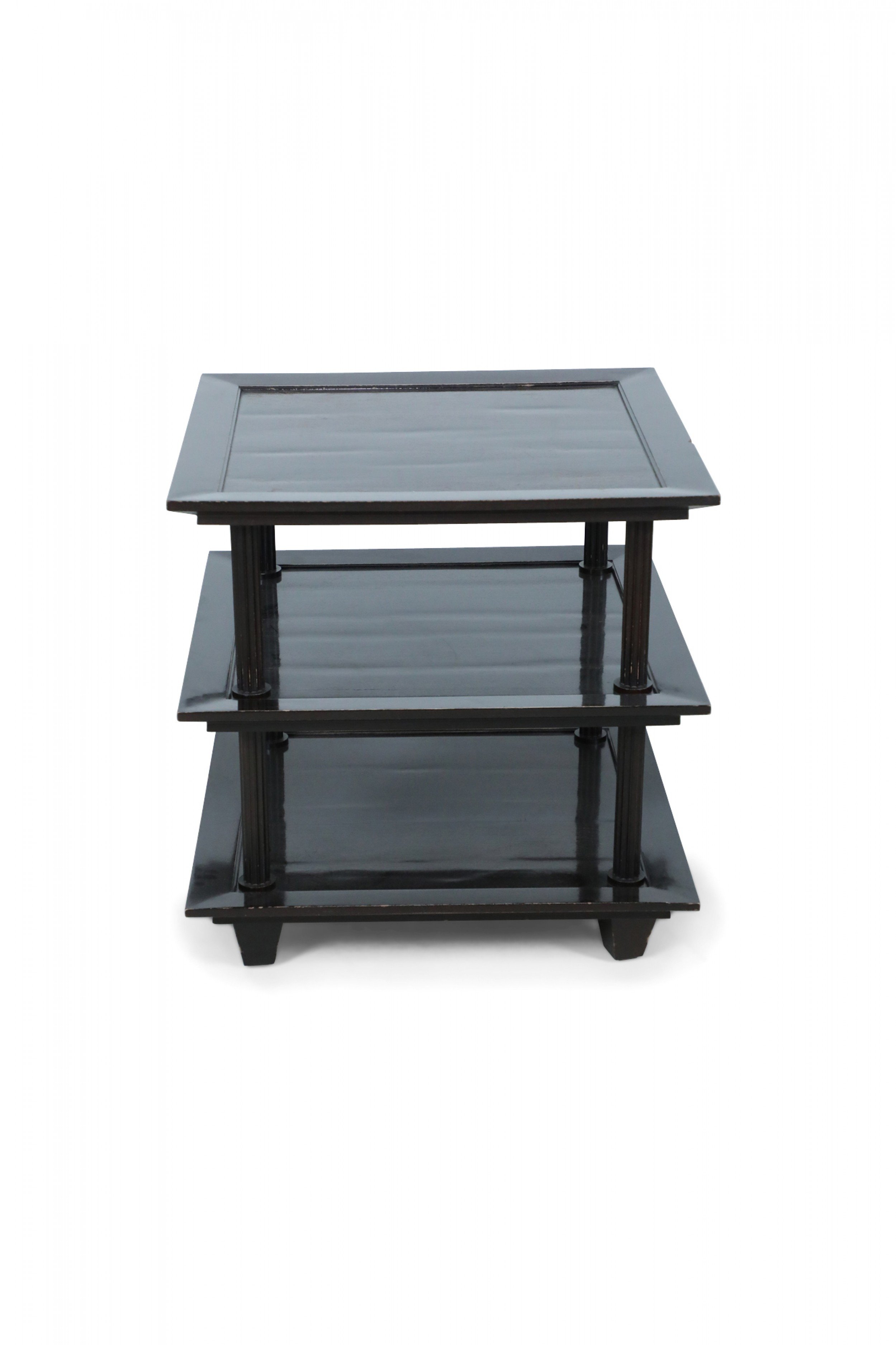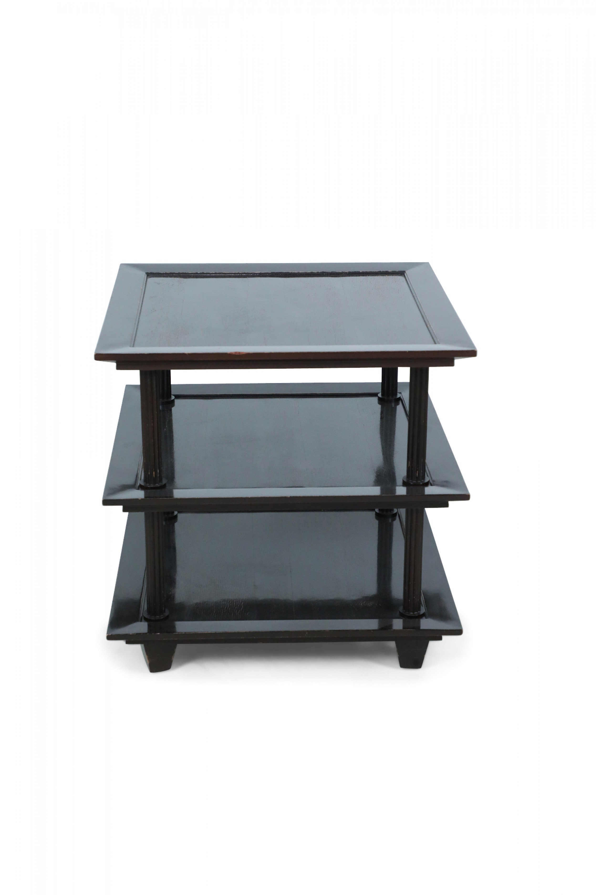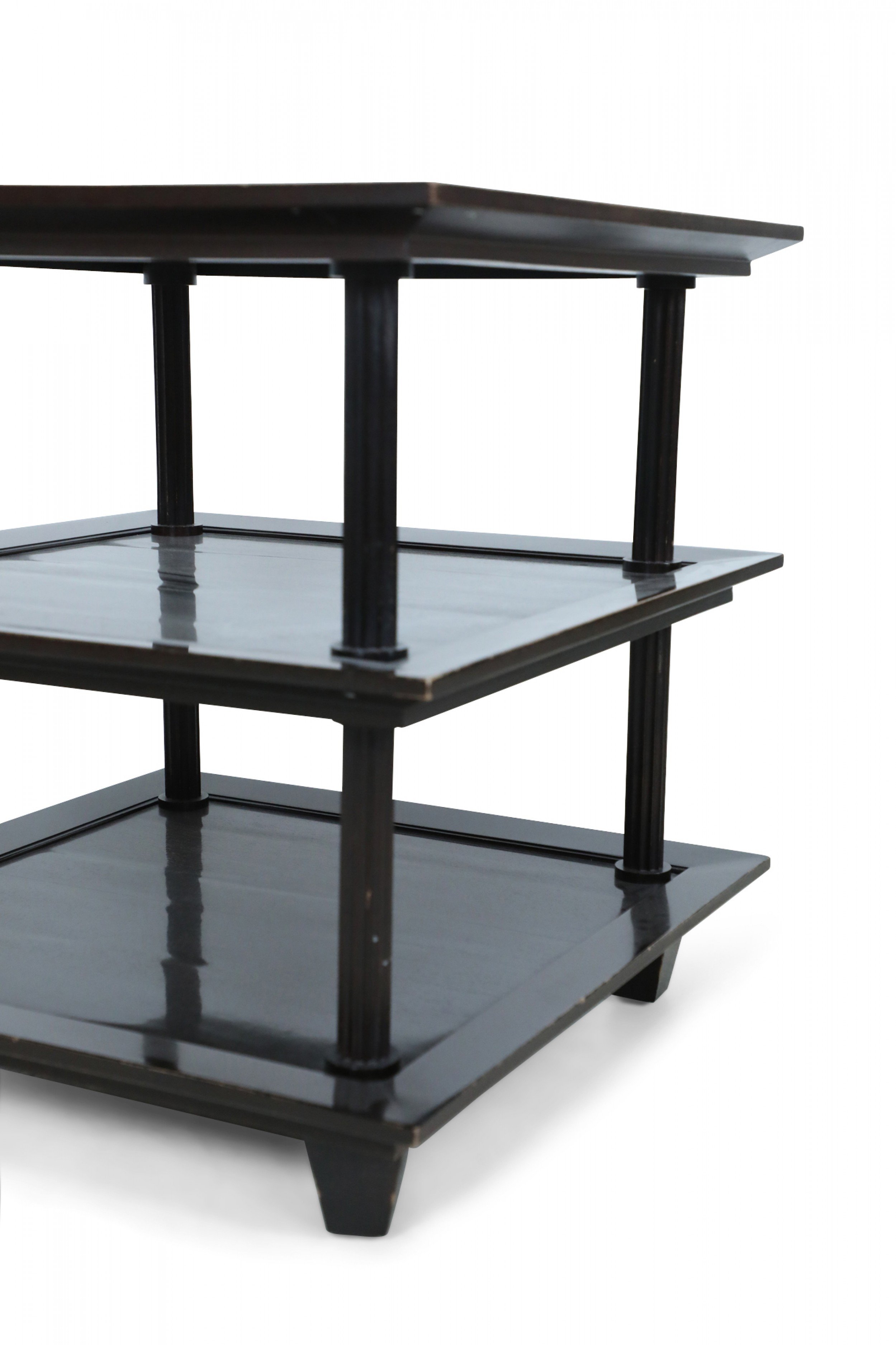 Contemporary American three tiered square mahogany accent /end table produced by Baker Furniture. (BARBARA BARRY)