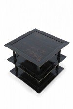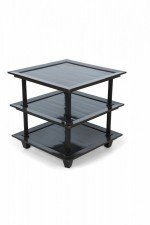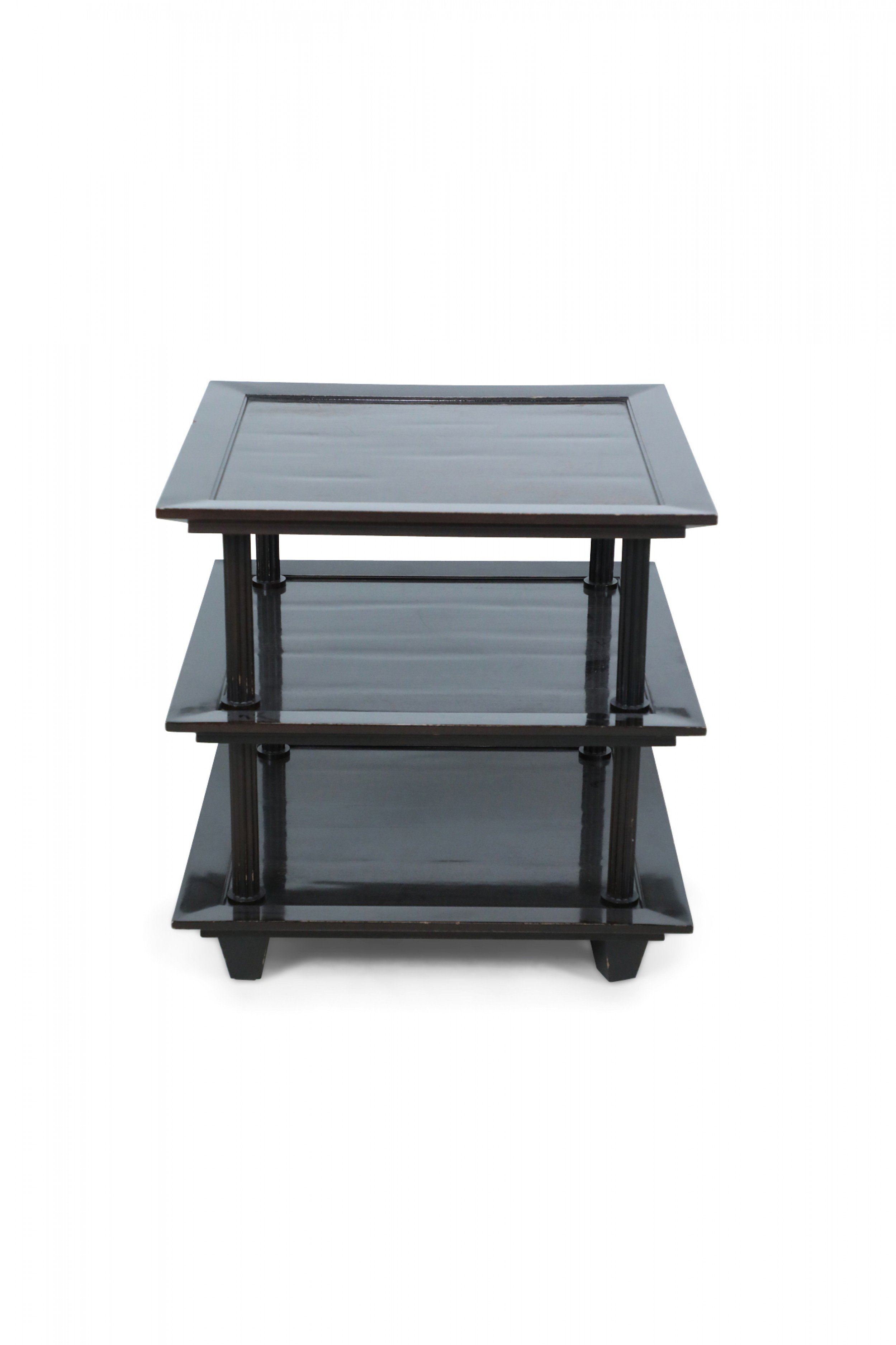 Contemporary American three tiered square mahogany accent /end table produced by Baker Furniture. (BARBARA BARRY).
