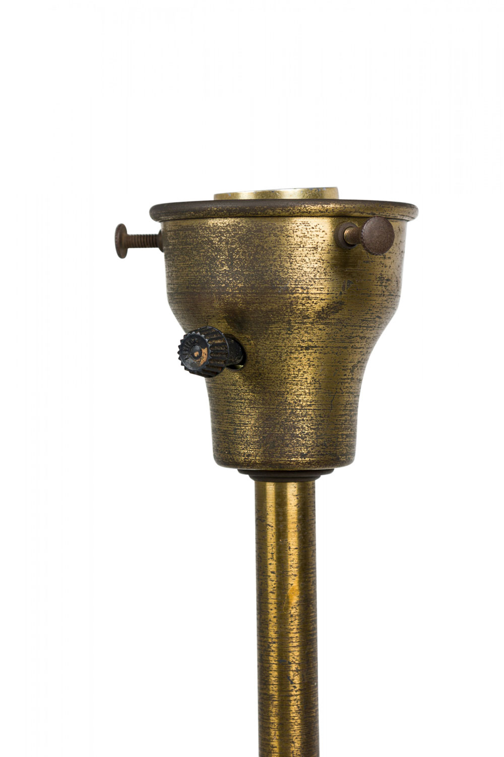 Style: Mid-Century Materials & Techniques: Brass, glass, metal Category: Lighting Condition: Some wear to finish on metal, loose stem & socket. Electrics working. Ships without shade. Good; Wear consistent with age and use