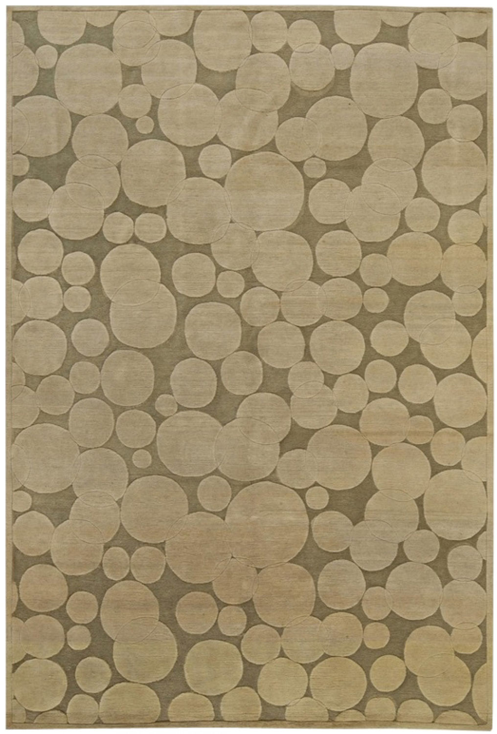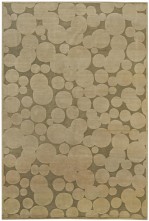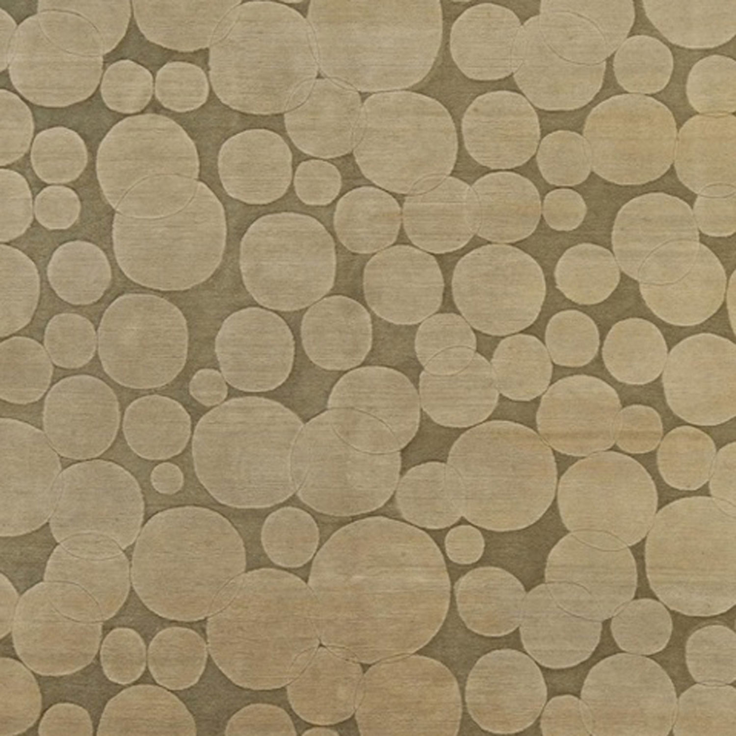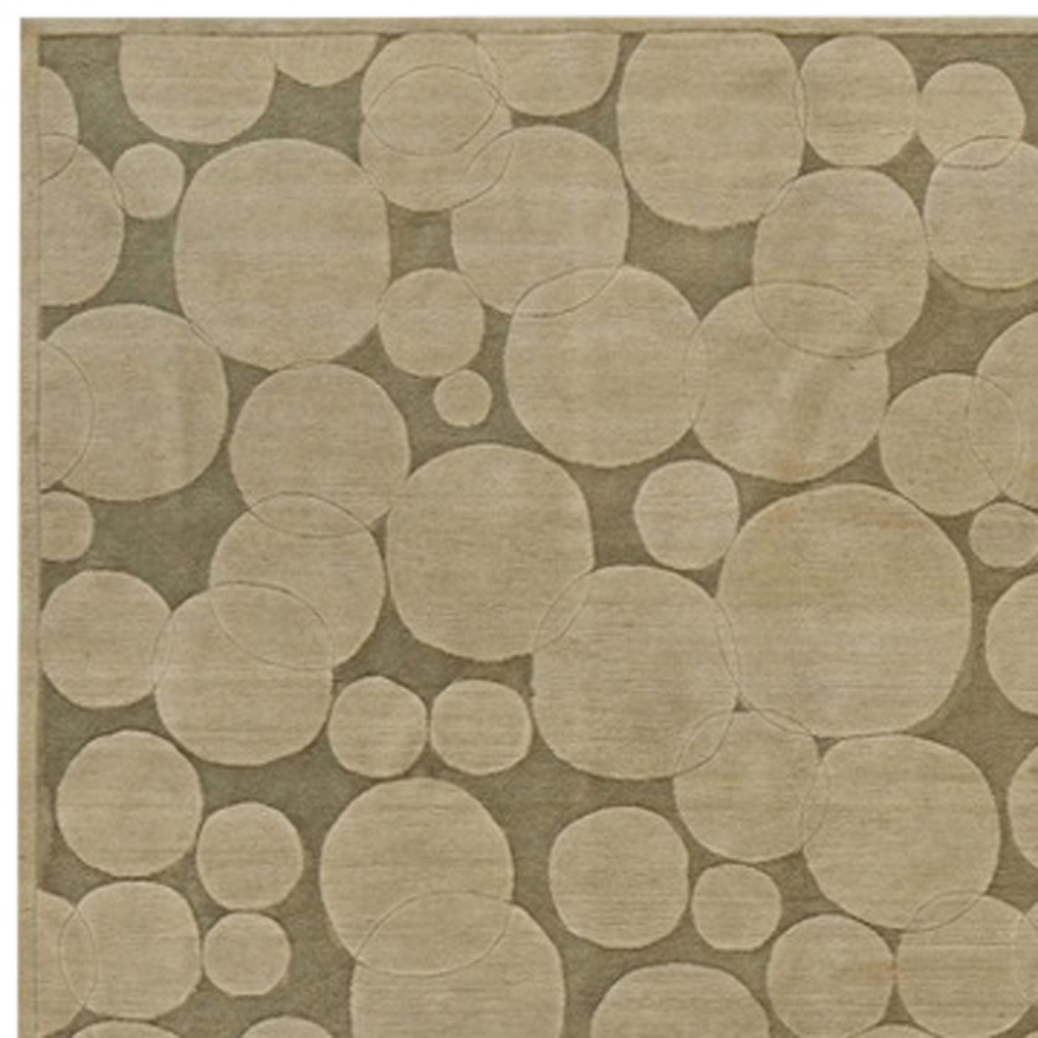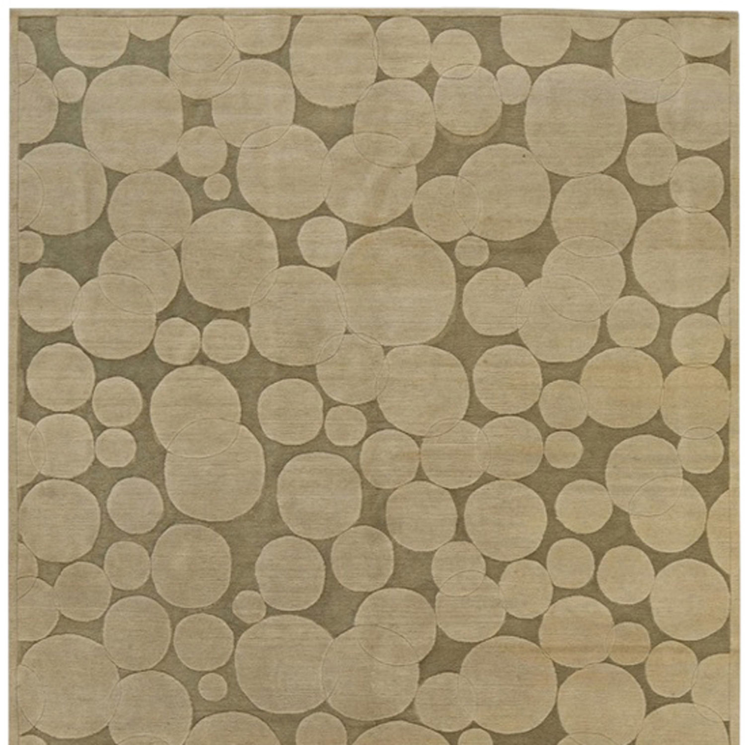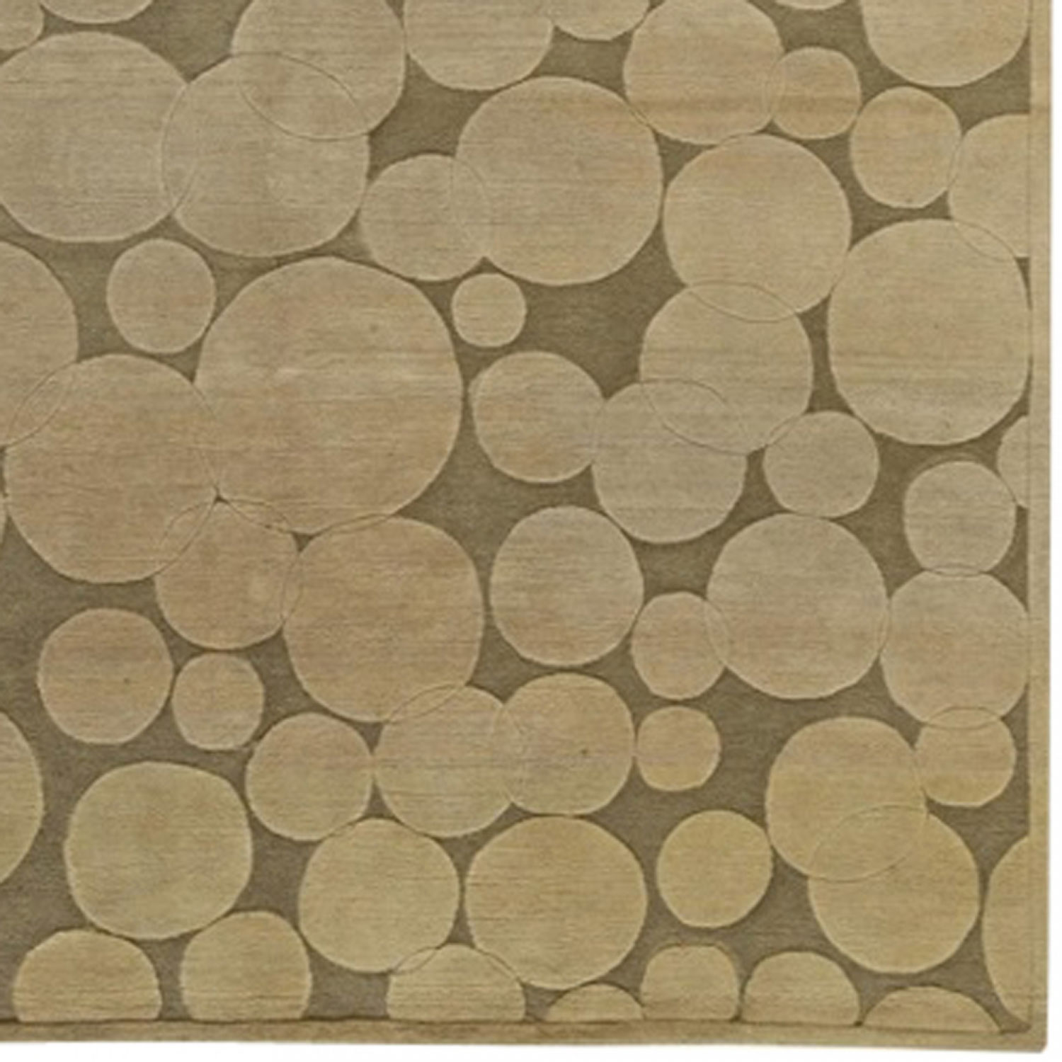 Contemporary hand-knotted wool area rug with a beige and taupe abstract circle pattern (9 x 6')