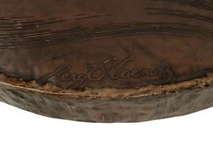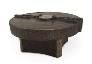 Belgian Modern design round sculptural cast copper coffee table with inset quartz stone on a copper and brass base (by MARC D'HAENS)