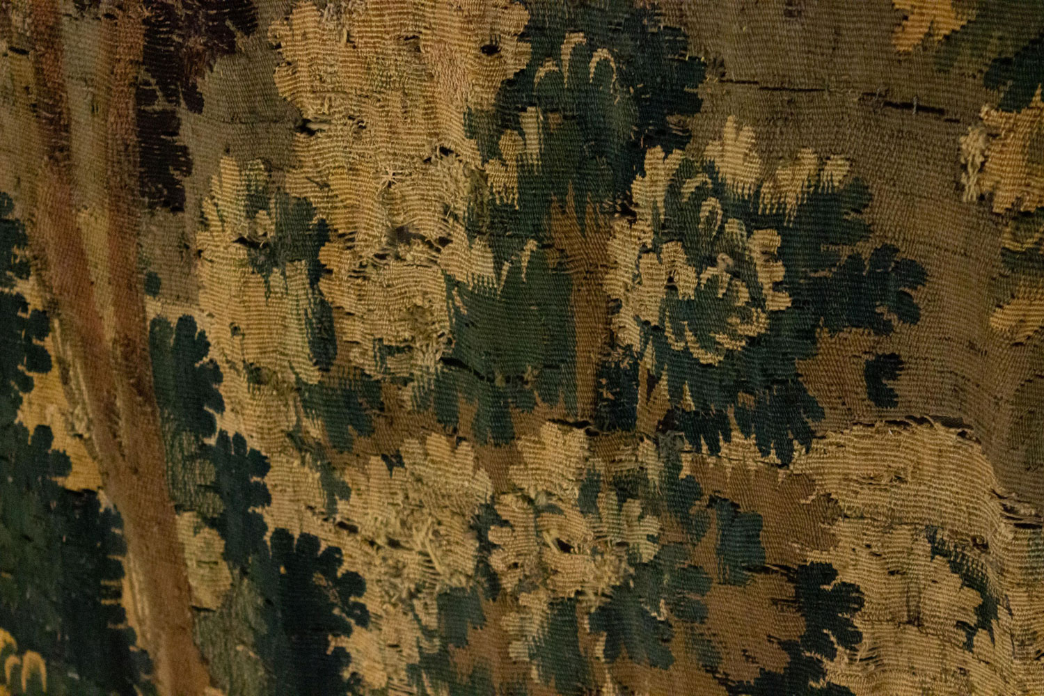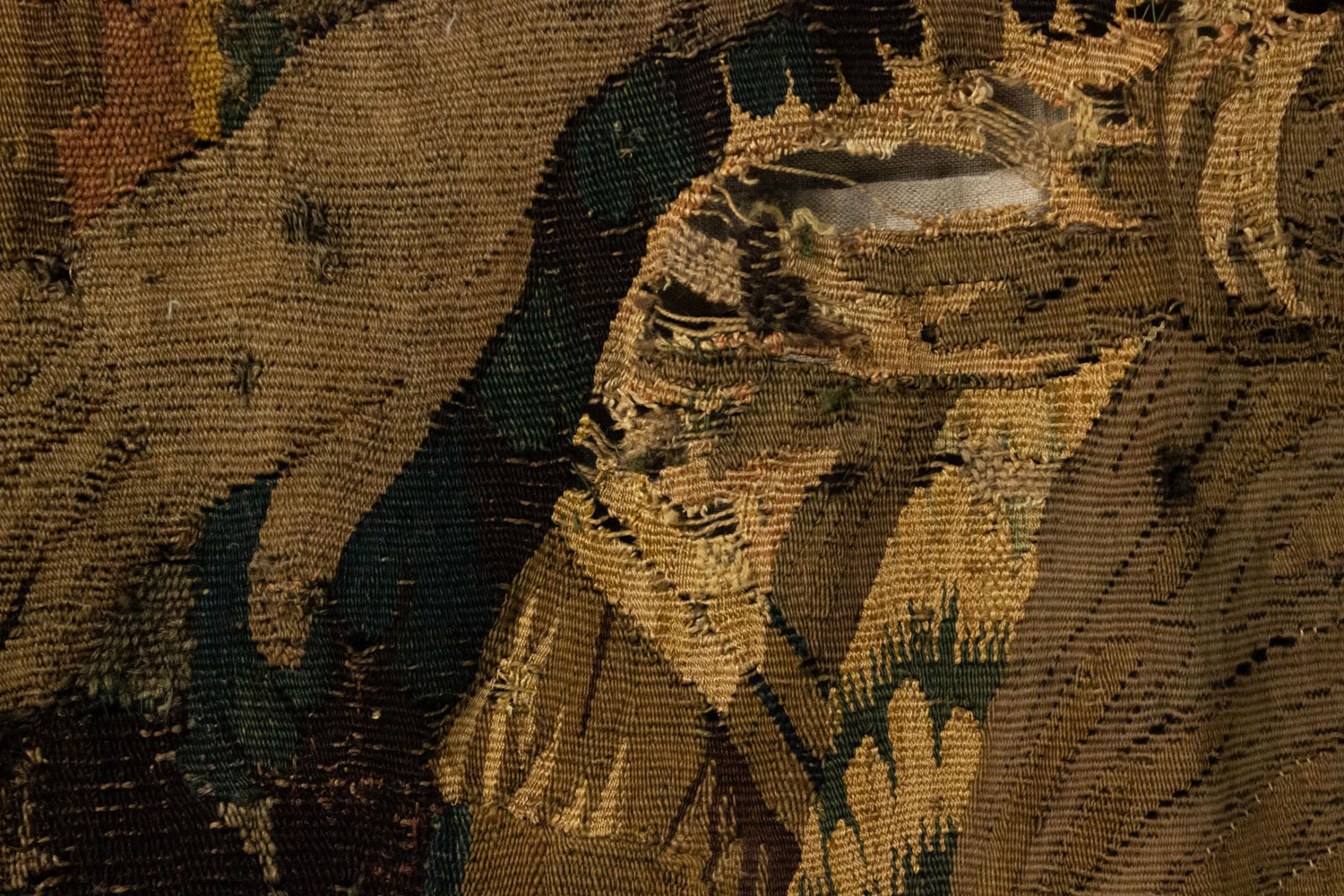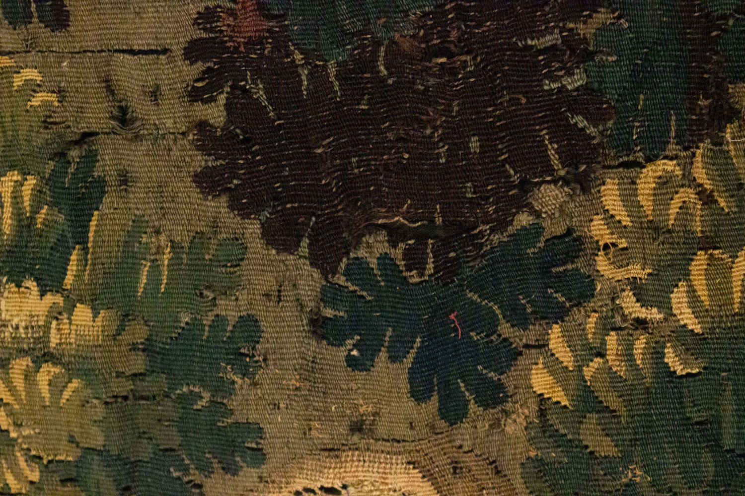 Style: Continental Materials & Techniques: Woven Category: Cleared Art, Rugs/Textile Condition: Antique condition, wear, some separation along border.