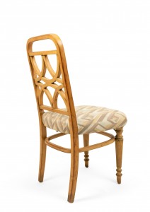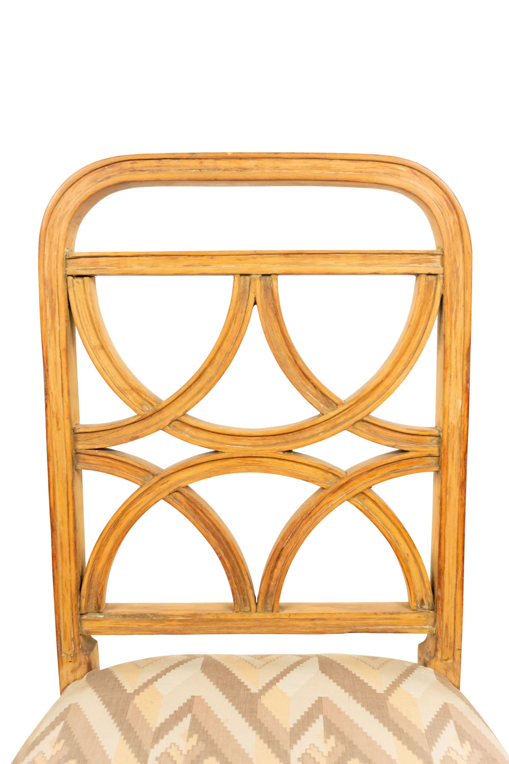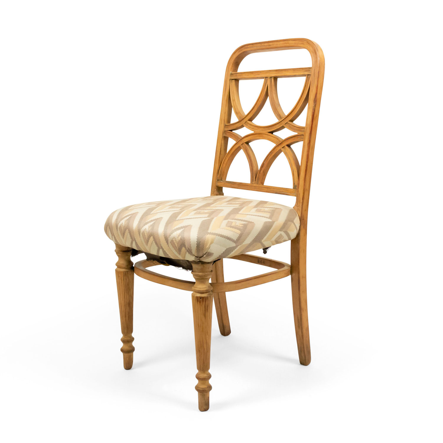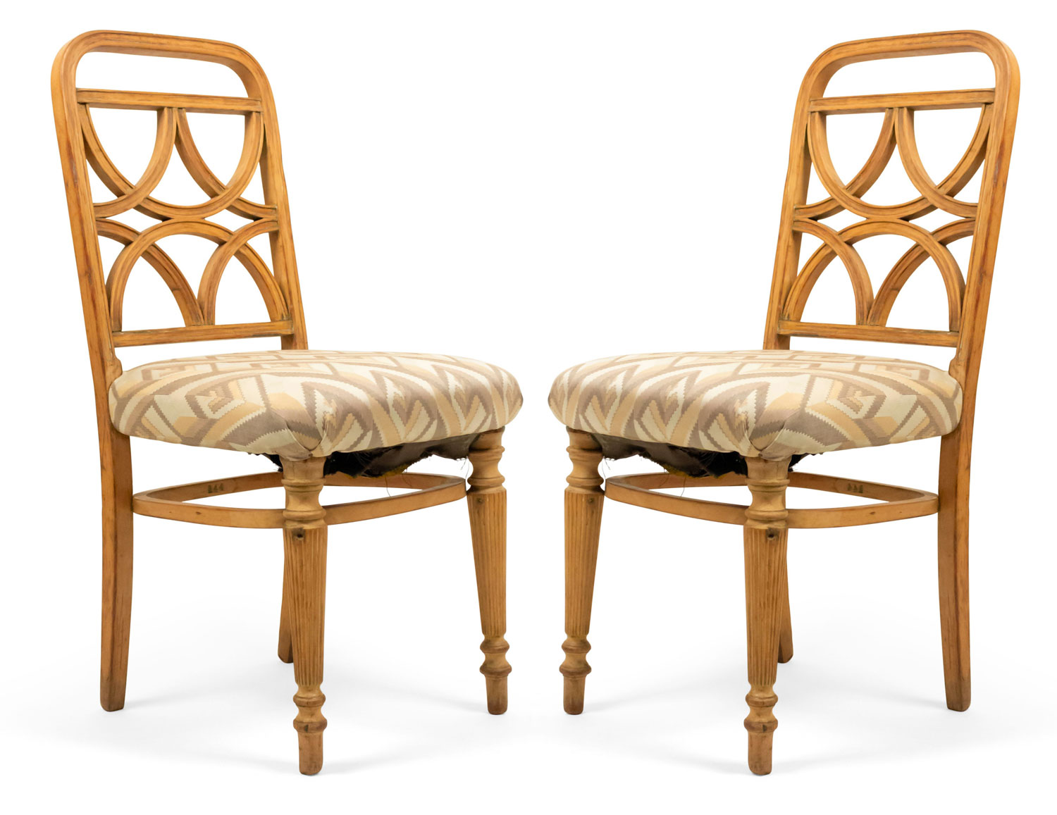 PAIR of Bentwood Art Deco design stripped side chairs with geometric upholstered seat and fluted open geometric design back and front legs (similar to #037485)