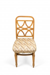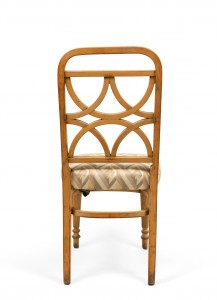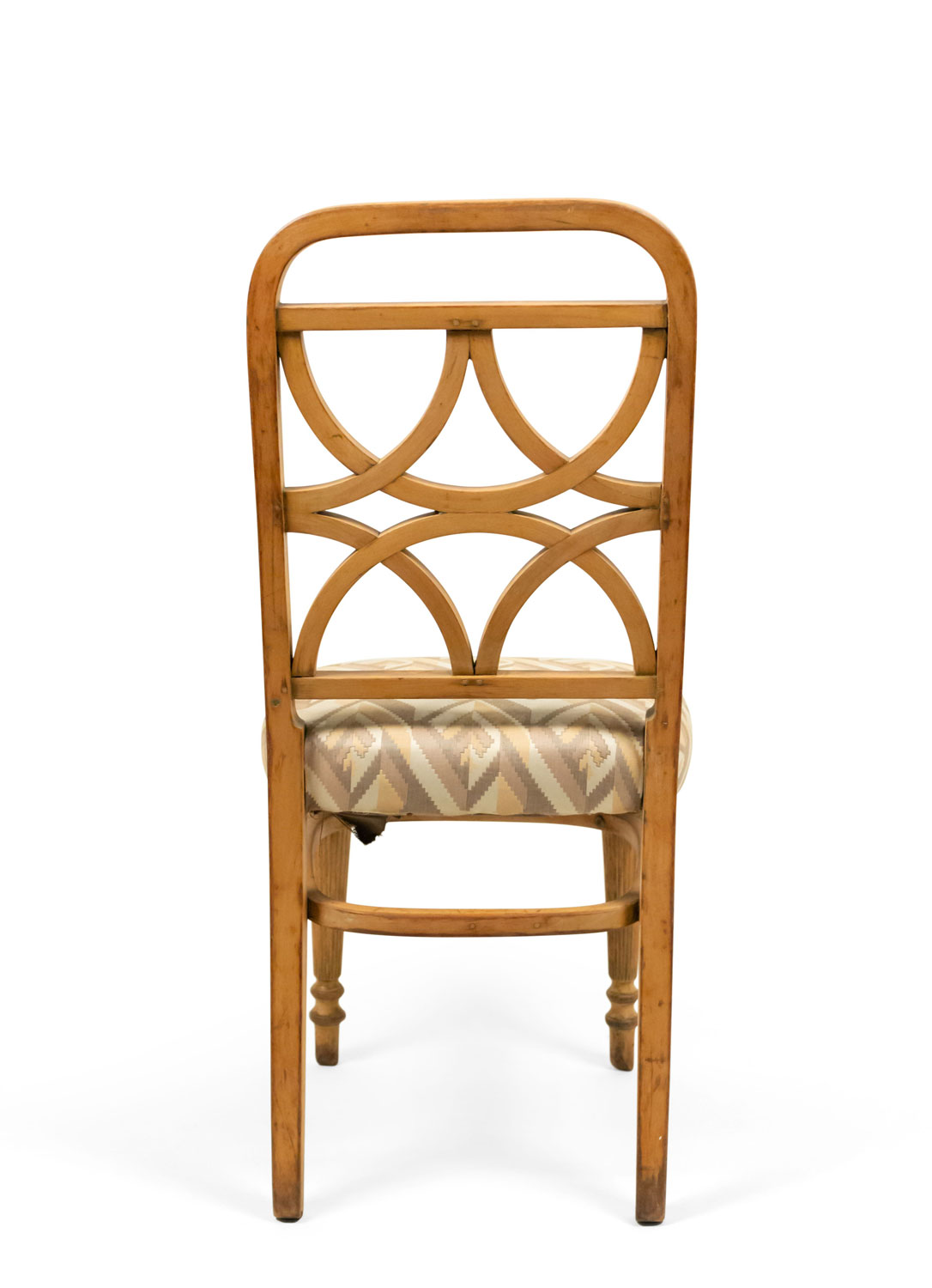 PAIR of Bentwood Art Deco design stripped side chairs with geometric upholstered seat and fluted open geometric design back and front legs (similar to #037485).
