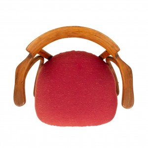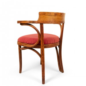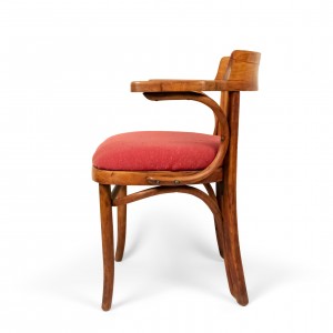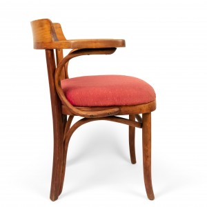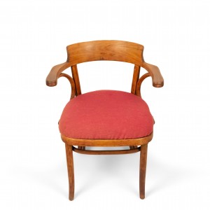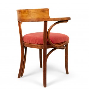 4 Bentwood (1st qtr 20th Cent) stripped pine and poplar wood round back captains chairs with red seat with label "Made in Poland. (PRICED EACH).