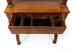 Austrian Biedermeier (Circa 1835) cherrywood cheval mirror on a stand with a drawer, a cross leg base, and column sides.
