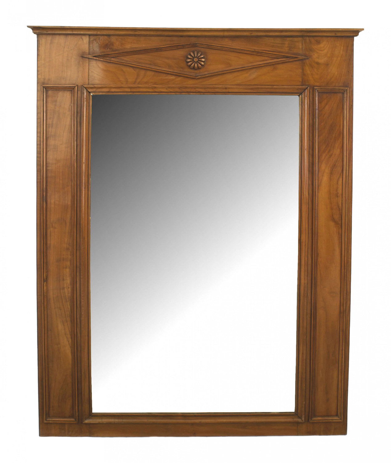 Austrian Biedermeier-style vertical fruitwood wall mirror with paneled sides and a diamond design motif on top..