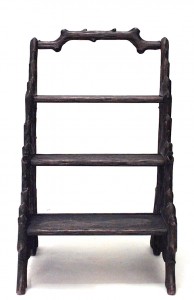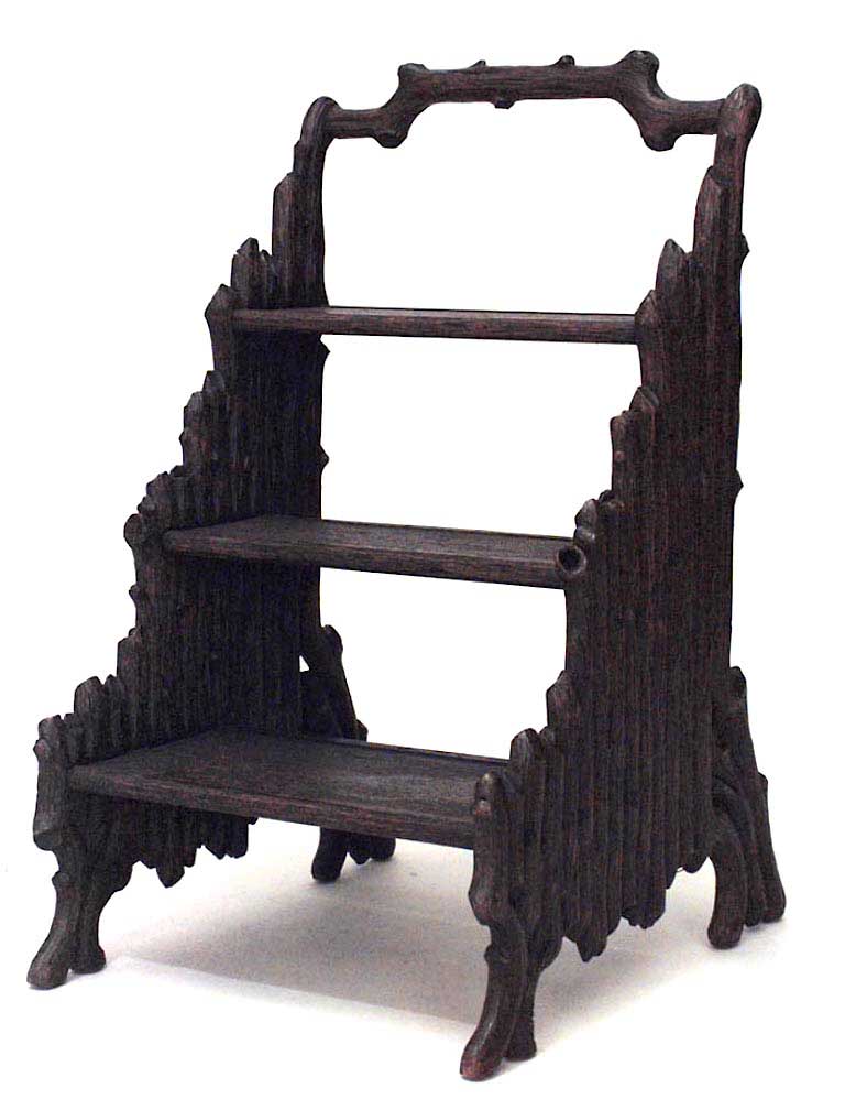 Rustic Black Forest (19th Cent) walnut 3 step library ladder with carved branch design. (late 19th cent.).