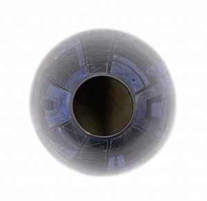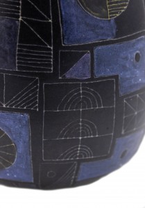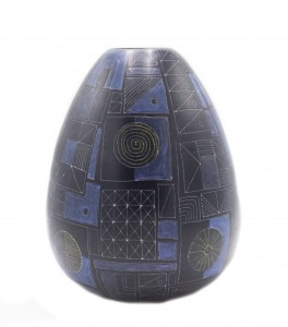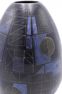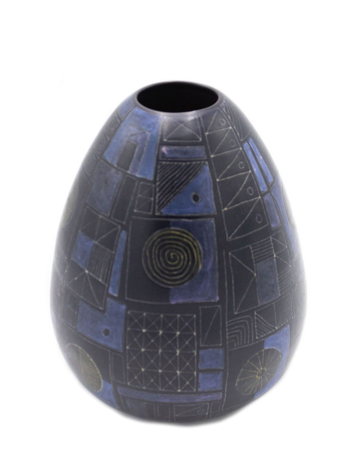 Art Deco (possibly French) tapered cylindrical shaped blue and purple vase with a geometric design