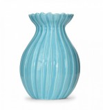 Blue Ribbed Glazed Ceramic Vase