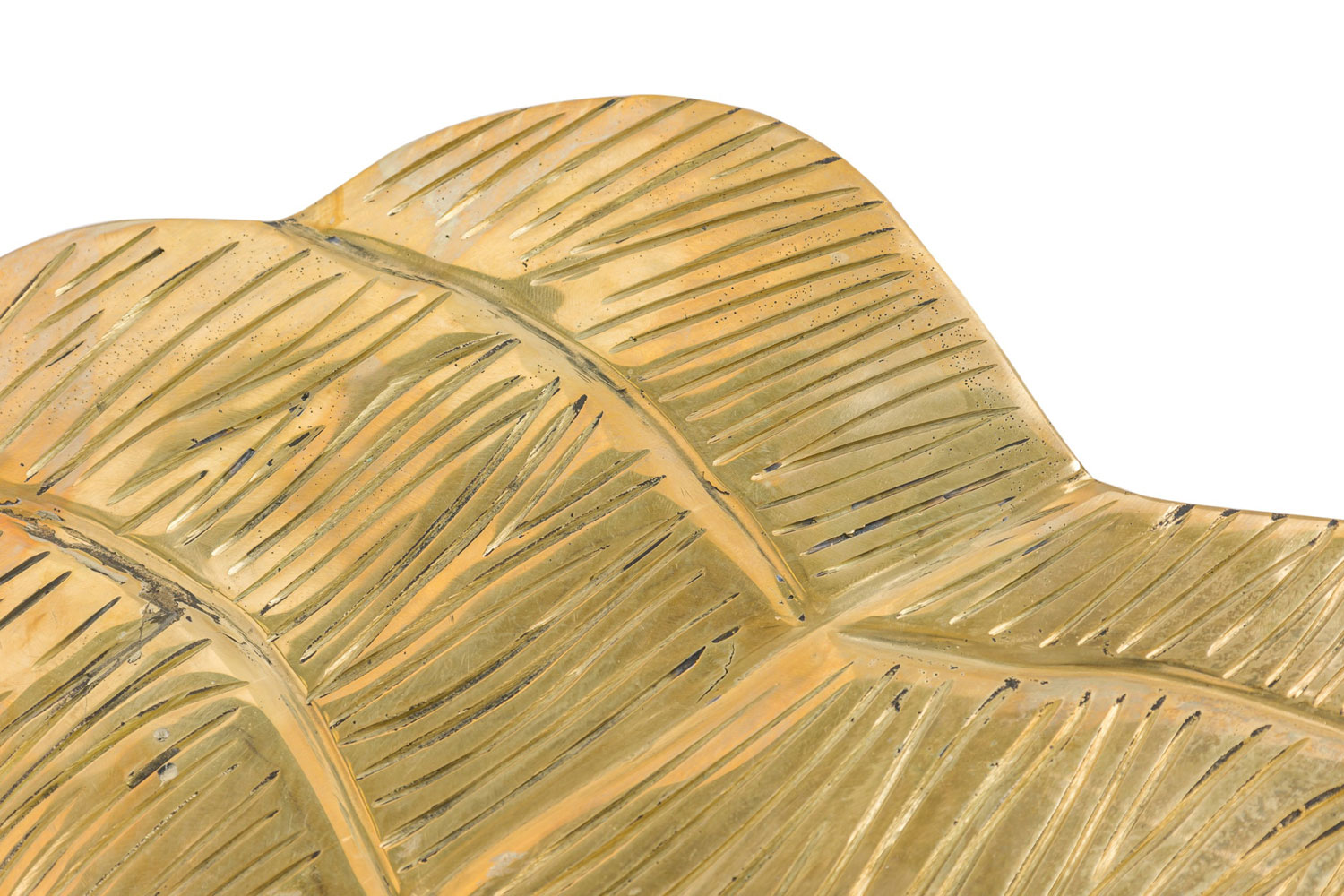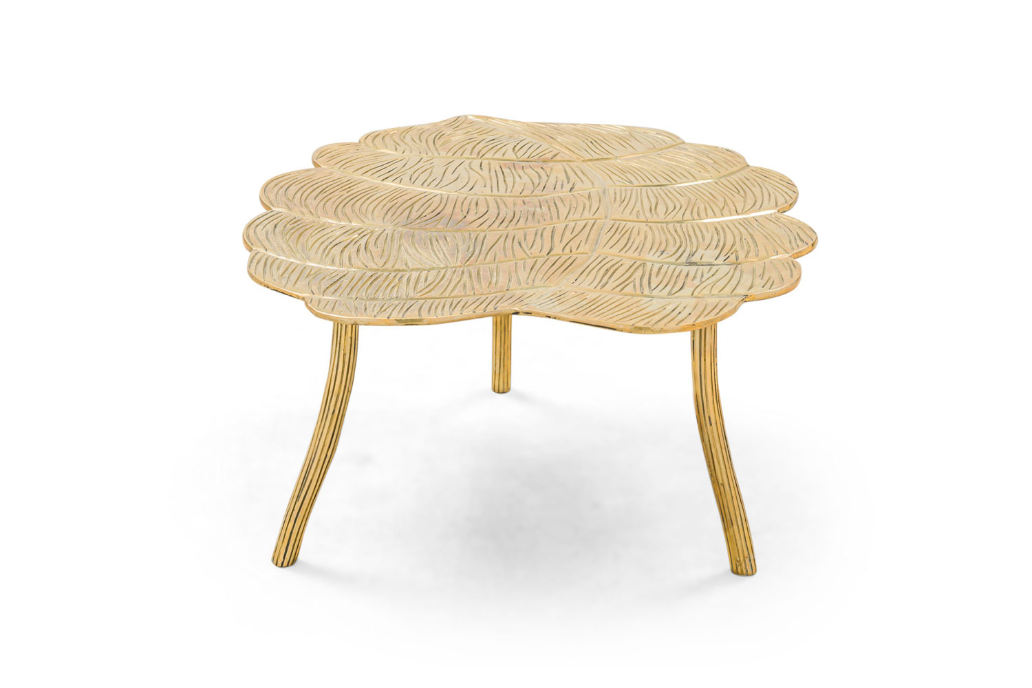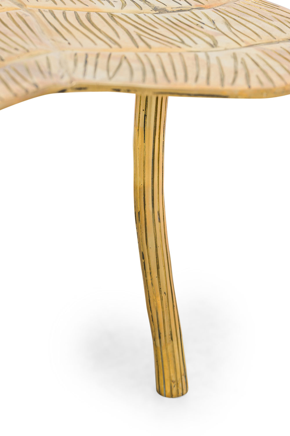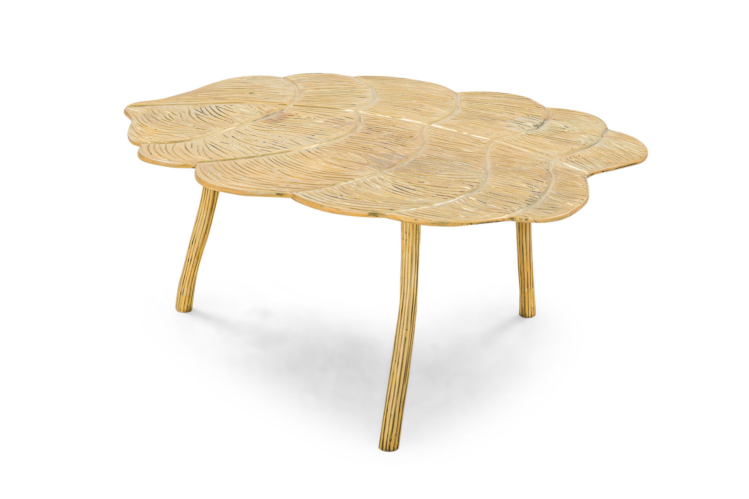"Botanico" Biomorphic coffee table featuring an intricately carved leaf-inspired tabletop and base constructed of polished hand-forged bronze.