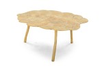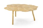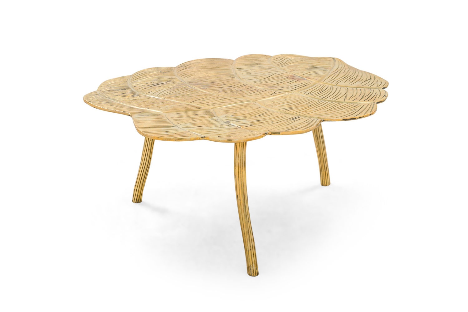 "Botanico" Biomorphic coffee table featuring an intricately carved leaf-inspired tabletop and base constructed of polished hand-forged bronze..