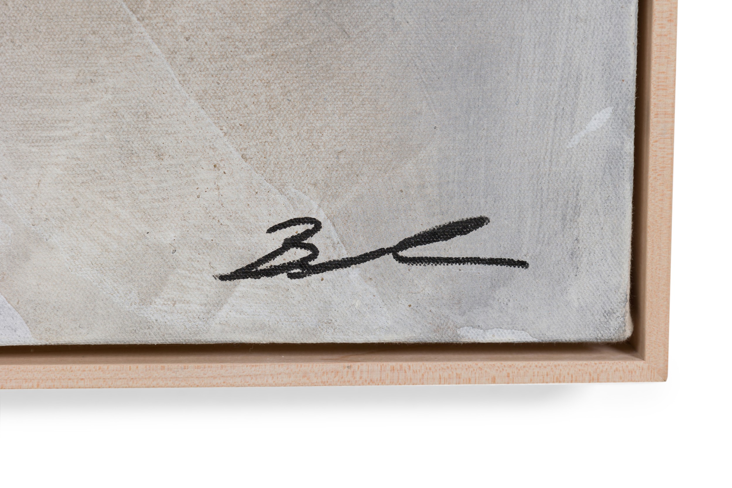 American contemporary abstract expressionist composition of a shades of greys and umber in acrylic on linen in a raw maple gallery frame (signed lower right) ((BRITTNEY CICCONE).