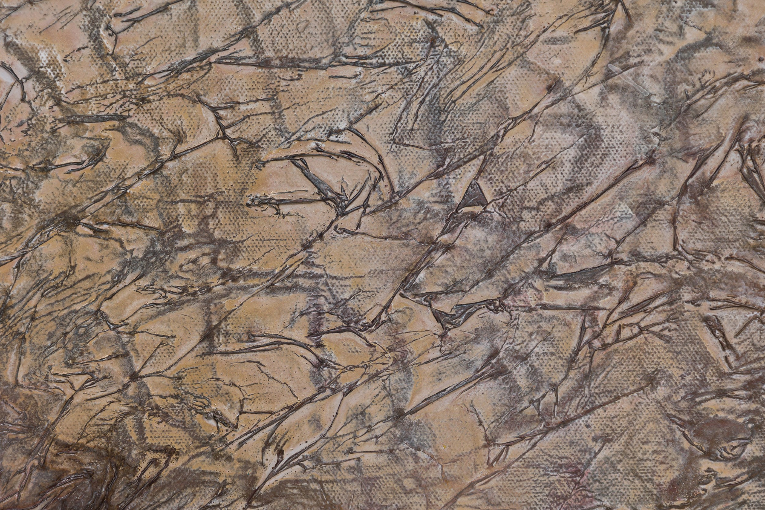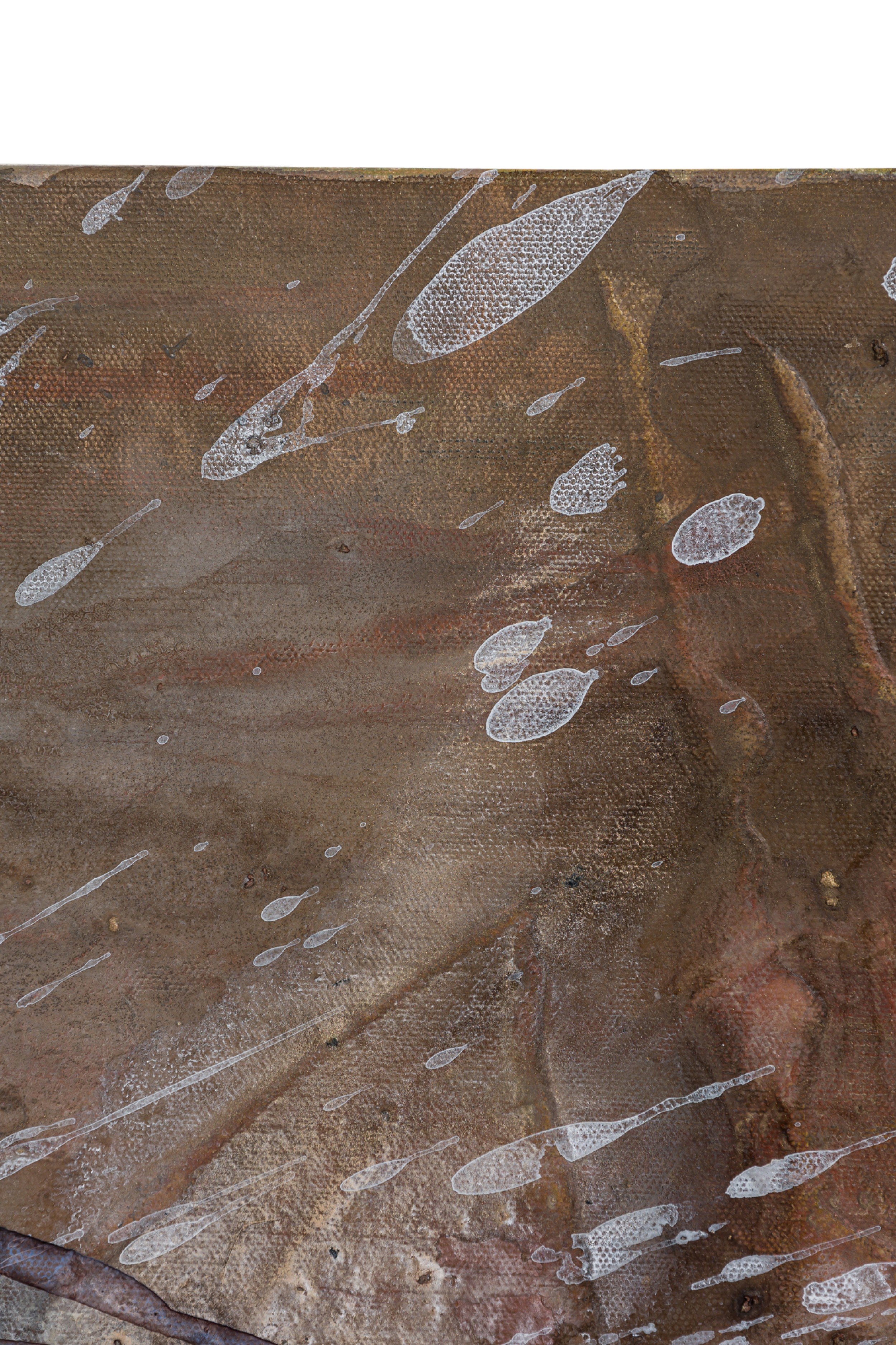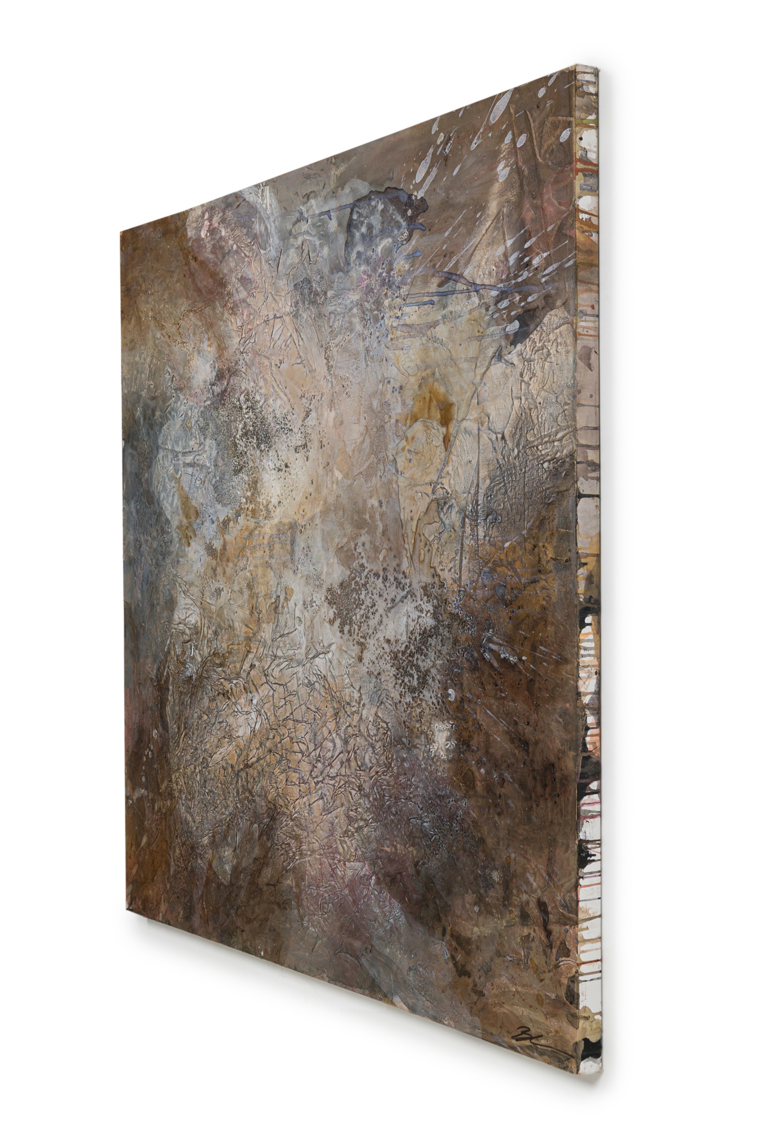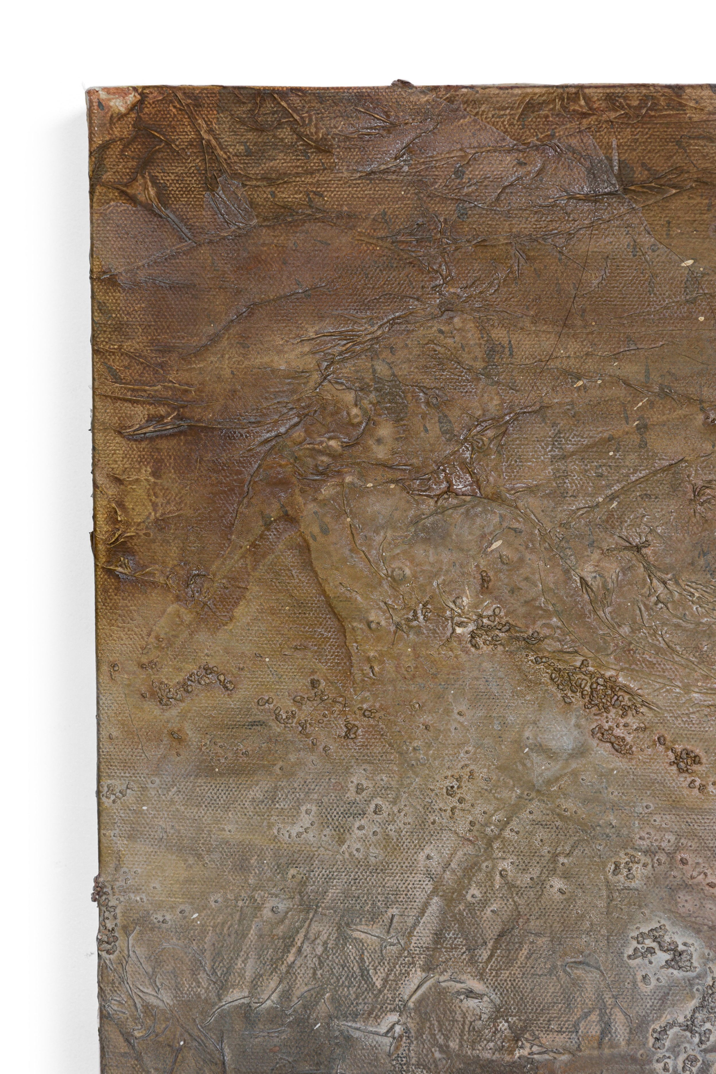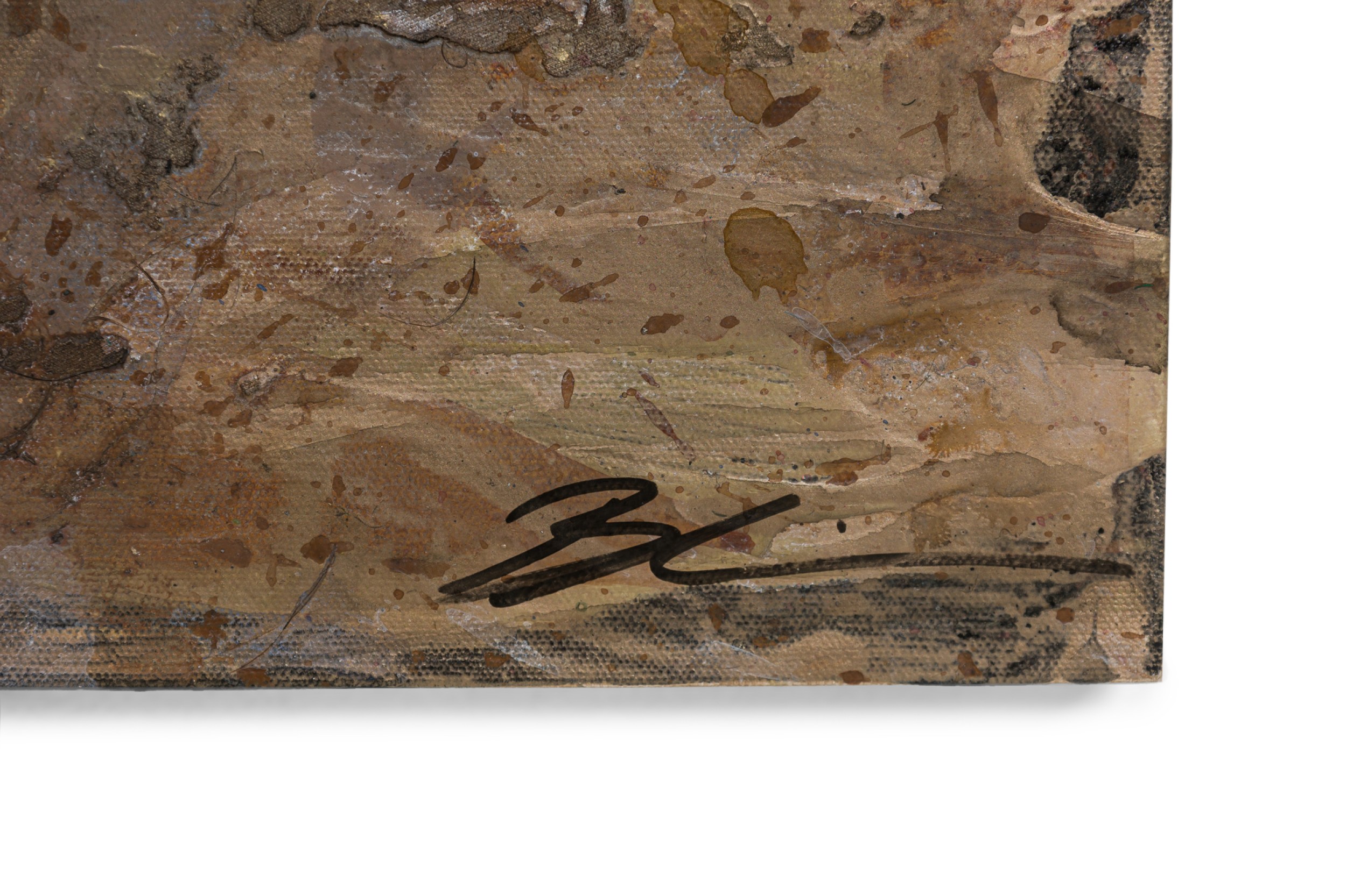 American contemporary abstract expressionist composition in textured metallic mixed media and acrylic bronze and silver paint on a linen canvas (unframed, signed lower right) (BRITTNEY CICCONE)