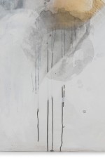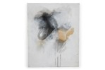 American contemporary abstract expressionist composition of washed greys, black and brown hues on a stretched linen canvas (unframed) (BRITTNEY CICCONE).