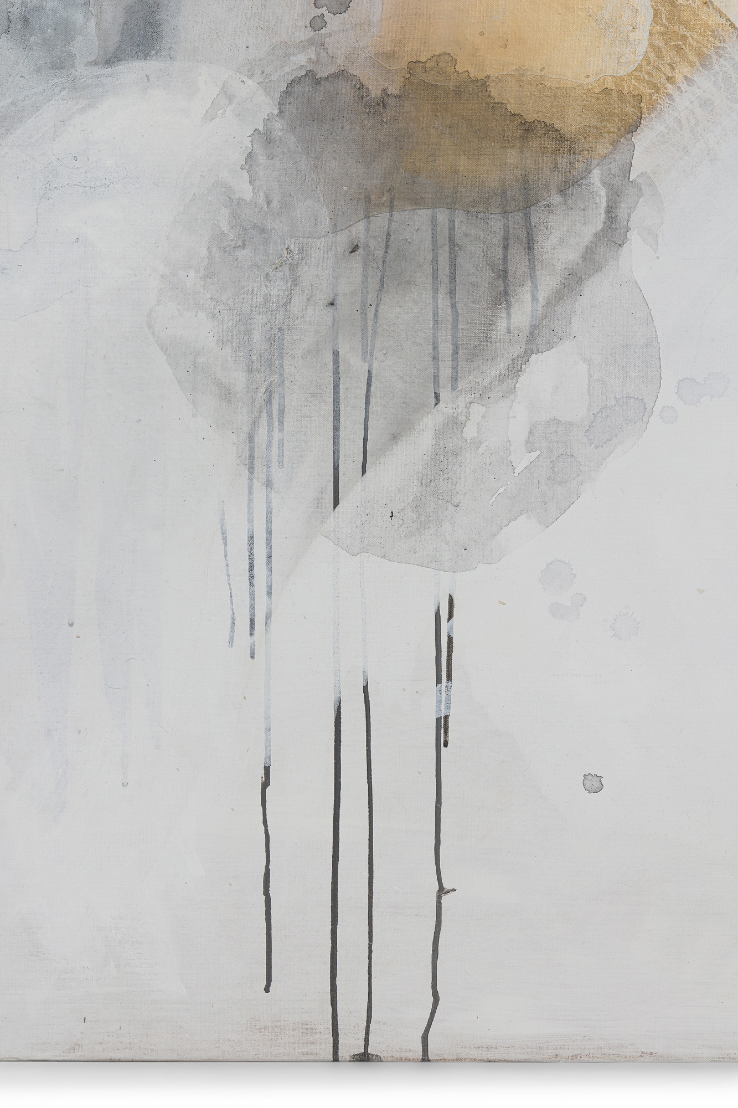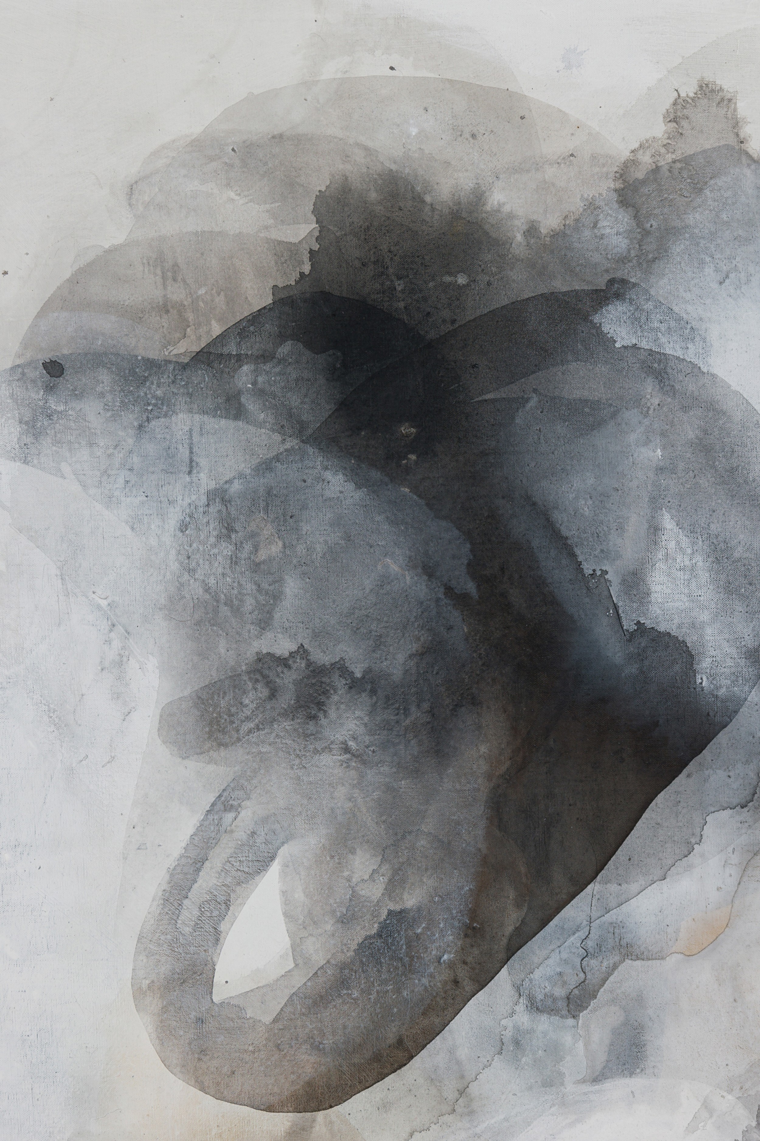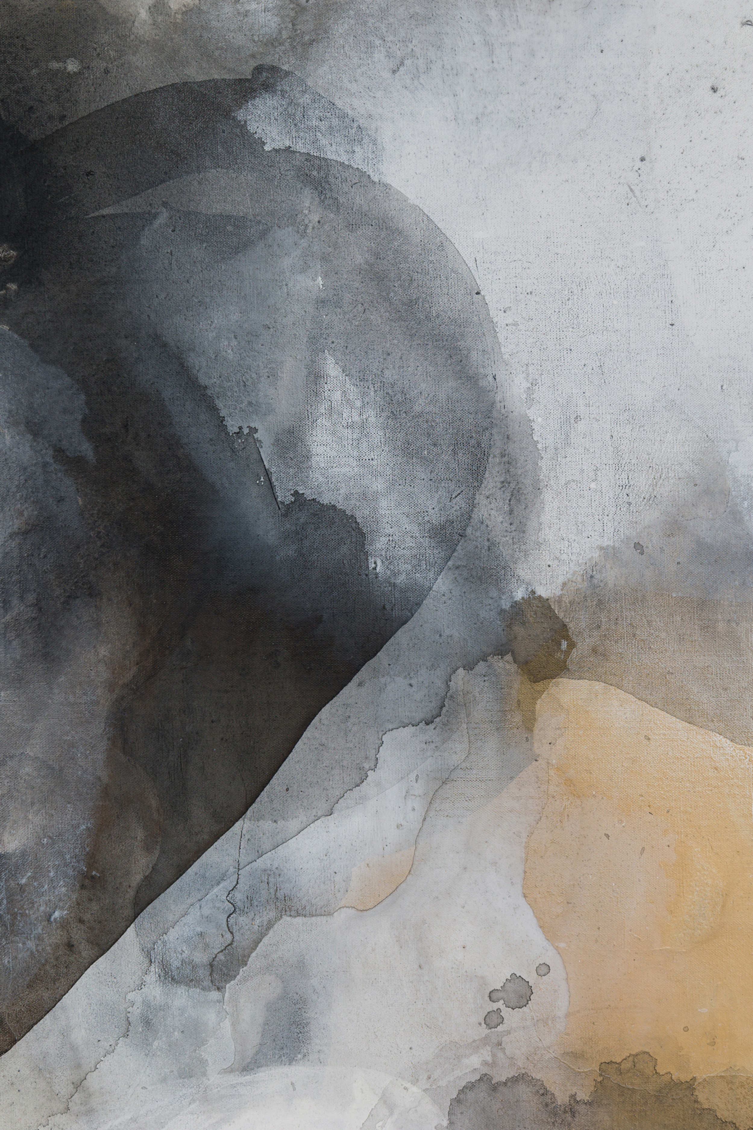 American contemporary abstract expressionist composition of washed greys, black and brown hues on a stretched linen canvas (unframed) (BRITTNEY CICCONE)