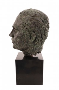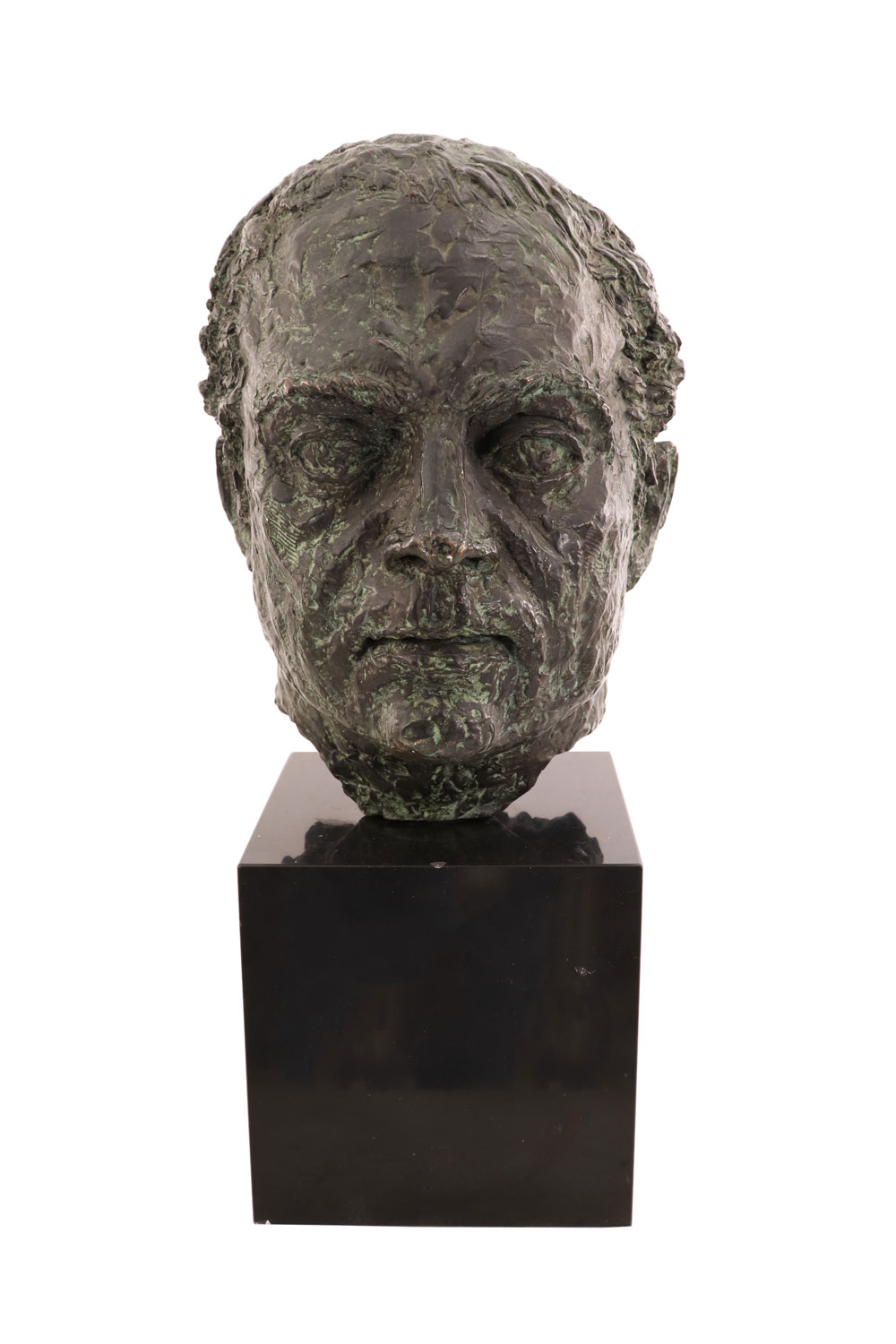 Mid-Century bronze bust of a man's head mounted on a black marble cube base. (Signed "H. Haas '71).