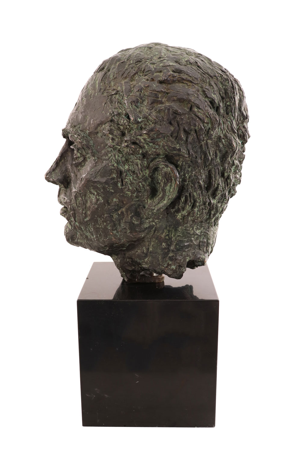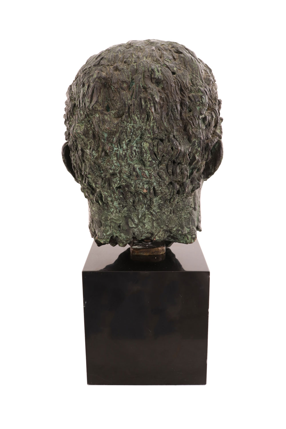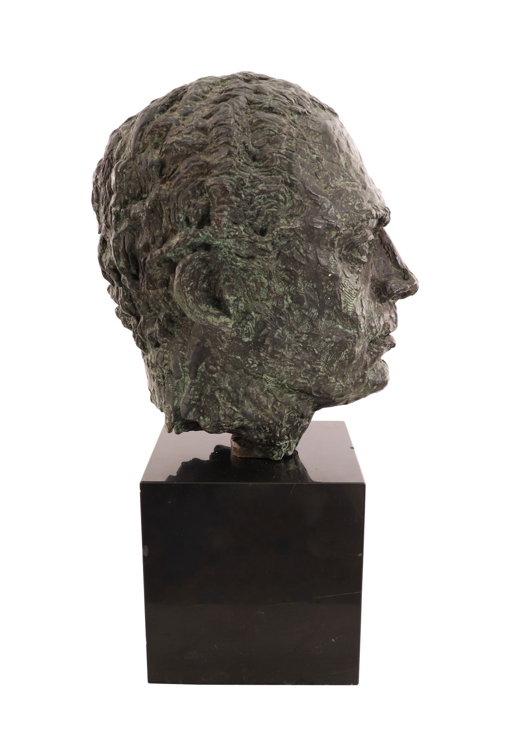 Mid-Century bronze bust of a man's head mounted on a black marble cube base. (Signed "H. Haas '71)