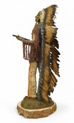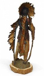 Continental Austrian style bronze multicolored patinaed figure of Native American chief with rifle standing on a travertine base (Kalba style)