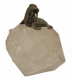 English Victorian small bronze walrus perched on a rock crystal form iceberg