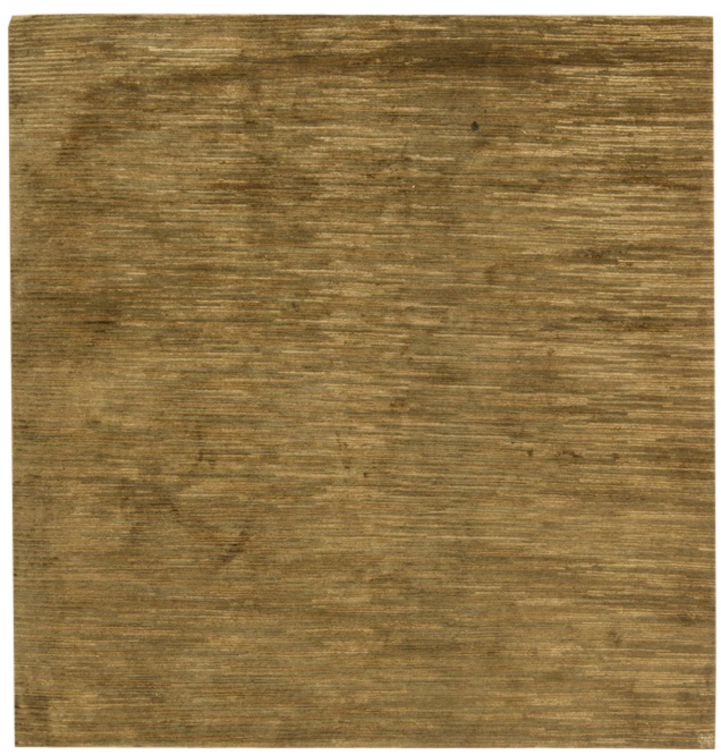 Contemporary hand-knotted area rug with a layered brown, gold, copper, and green pattern (8x8')