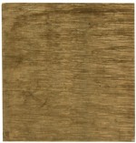Contemporary hand-knotted area rug with a layered brown, gold, copper, and green pattern (8x8').