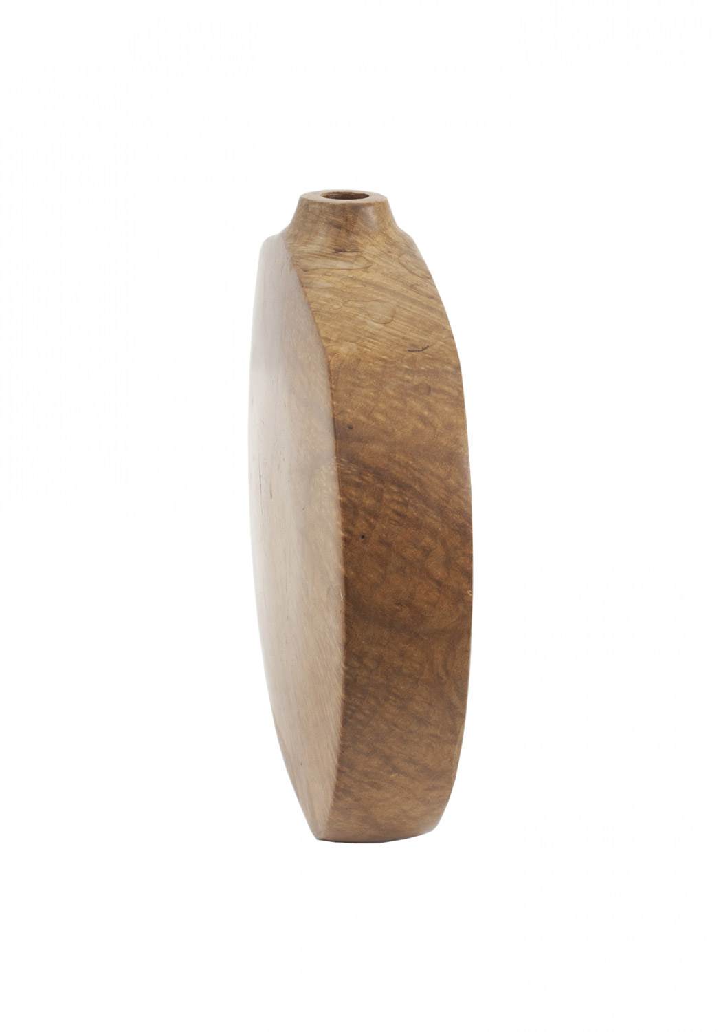 Contemporary American burl wood Pilgrim shaped vase with a round silhouette and narrow profile & opening (Signed: JOHN BERGLUND '97)