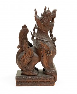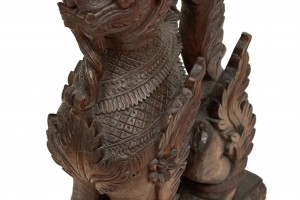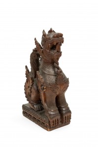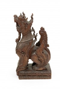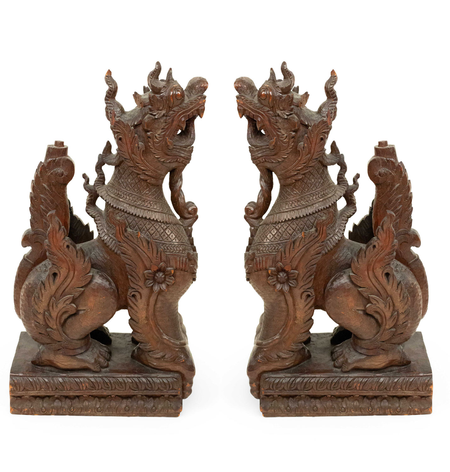 Pair of Burmese Carved Foo Dog Figures