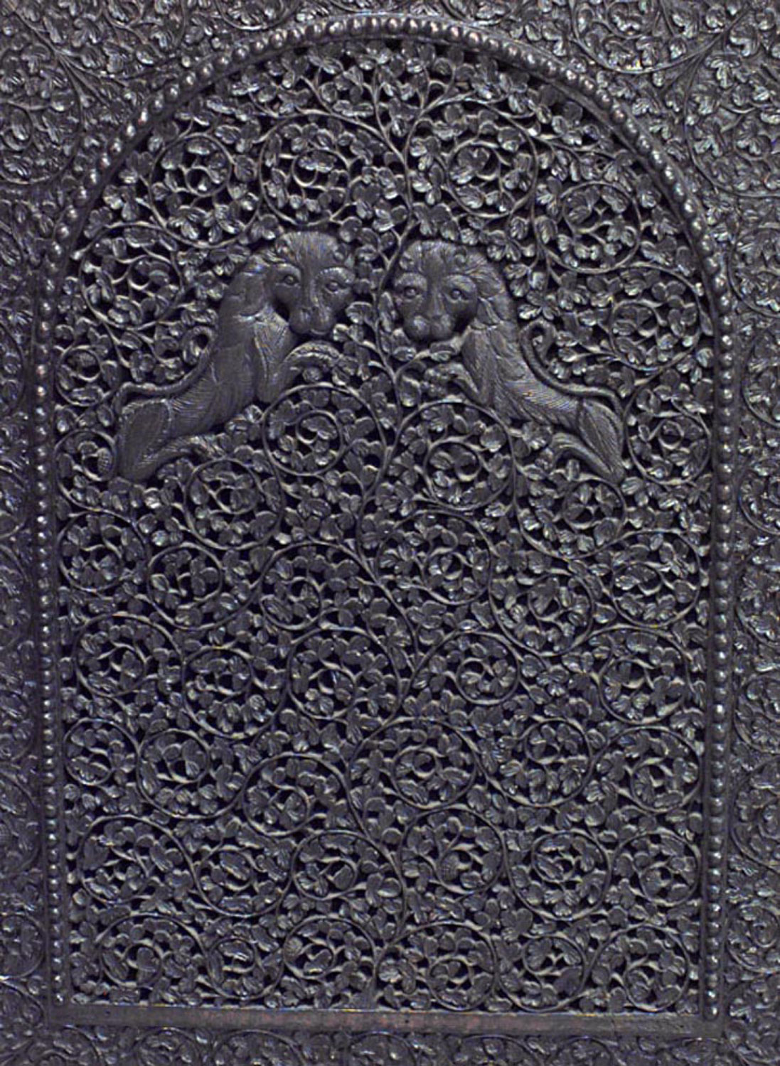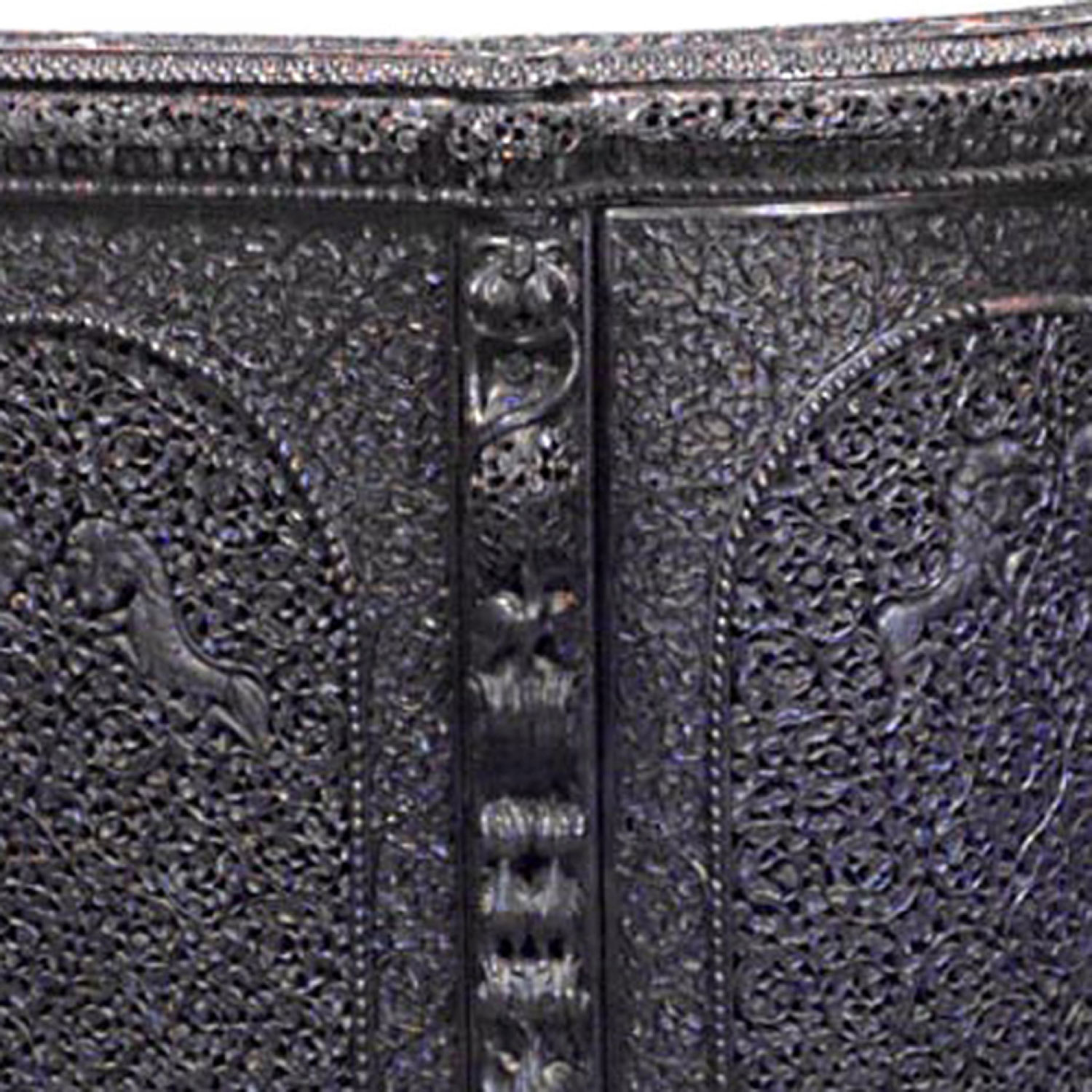Asian Burmese-style (19th Century) carved and filigree rosewood "D" shaped sideboard with 3 doors