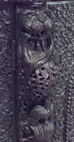 Asian Burmese-style (19th Century) carved and filigree rosewood "D" shaped sideboard with 3 doors.